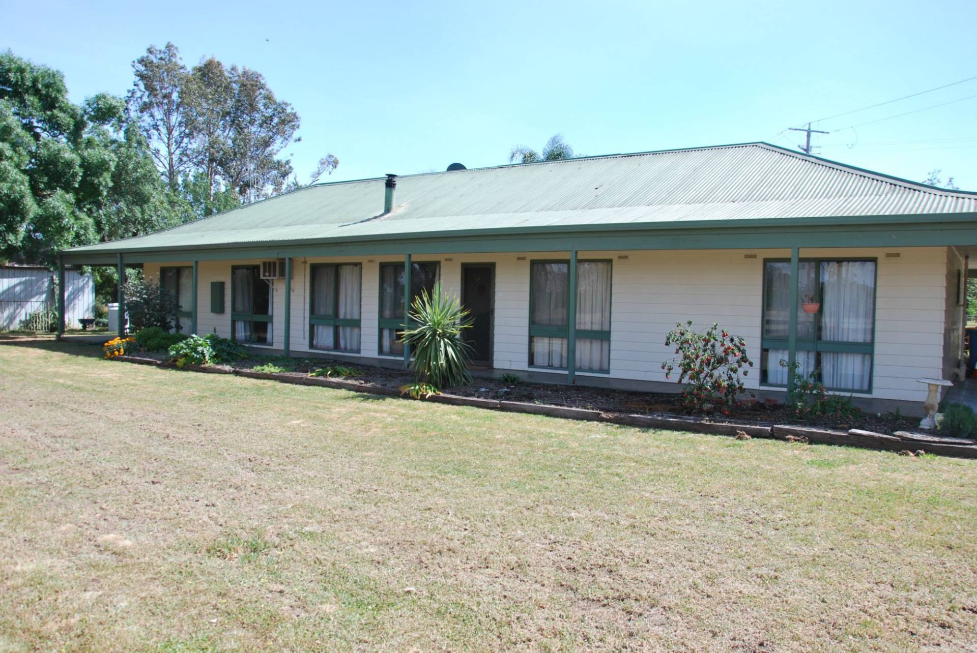 Plenty of space to enjoy on this one acre block at Koonoomoo! Four bedroom hardiboard home featuring kitchen with new electric stove, breakfast bar and plenty of cupboards. Spacious lounge with new carpet, wood heater and cooling air conditioner. Master bedroom has walk in robe and ensuite, and the other three bedrooms have ceiling fans and built in robes. New electric HWS. Paved, undercover entertaining area overlooking large yard with swimming pool, established lawns and shady trees. Double carport and a handy shed with concrete floor and power. Domestic bore and good colorbond fencing.