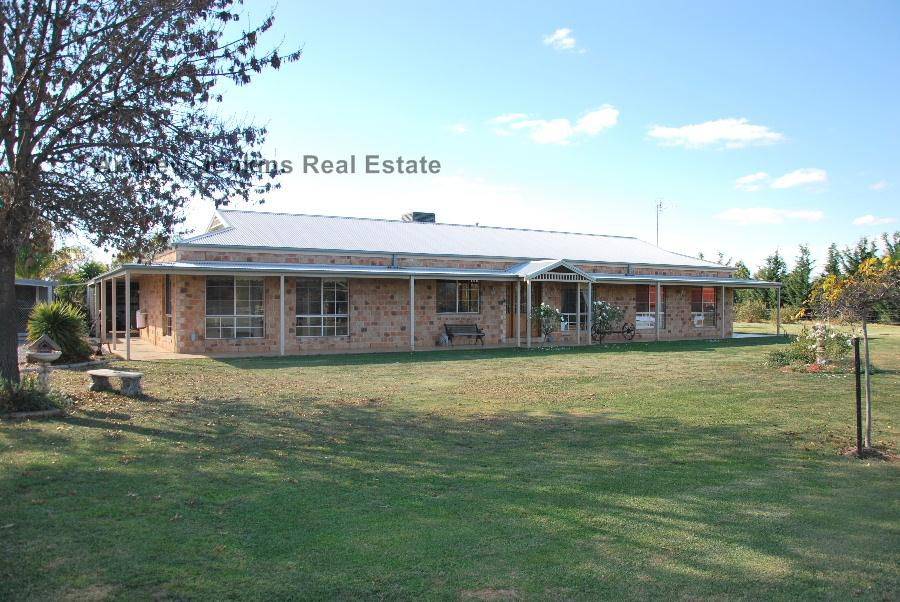"Windy Flats" Quality four bedroom and study home on 5 acres in Barooga. Featuring open plan kitchen/meals/family area with large walk in pantry with preparation facilities, and sliding door access to entertaining area. Separate formal lounge and separate study with built in cupboards. Four spacious bedrooms, all with BIRs and ceiling fans and main with WIR and ensuite. Ducted evaporative cooling, natural gas ducted heating and ducted vacuum system. Includes town water and a bore for the 3 paddocks and gardens. This property has one of the best entertaining areas you will find - 9m x 9m deck with ceiling fans, built in bar, gas heaters and bistro blinds all around - great in all sorts of weather! Salt-chlorinated , solar heated inground pool - securely fenced and including a Balinese thatched shade hut. Within the landscaped and well-fenced surrounds there are many established trees, a fernery, cubby house, a double garage with auto doors and lean-to gym area and a 50' x 30' shed with concrete floor, power, toilet & shower. Plenty of room for trucks or a home-based business.