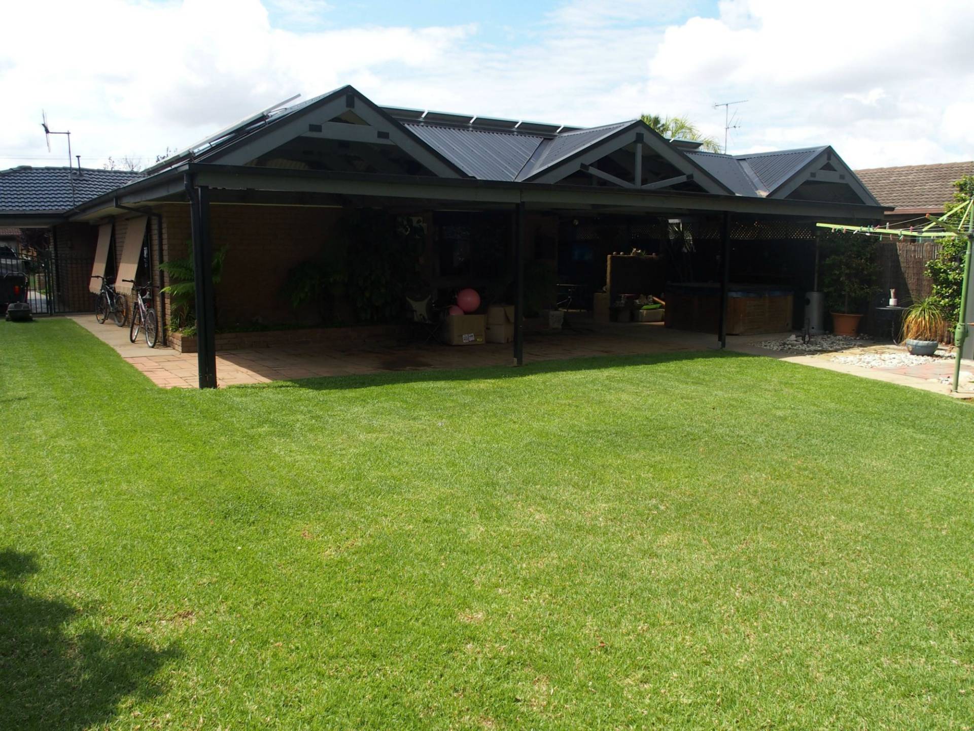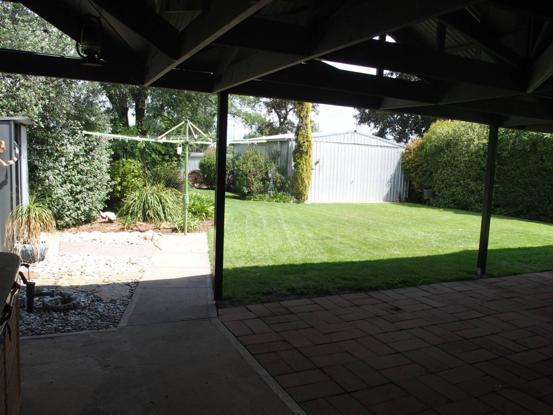 Three bedroom family home features kitchen with electric cooking, dishwasher and double sink. Timber floating floors to kitchen and meals area. Lounge with natural gas heater and evap cooling to living and meals area as well as hallway. All bedrooms have mirrored built in robes and carpet. Bathroom with separate bath and shower. Separate toilet and laundry. Beautiful spacious outdoor entertaining area perfect for entertaining guests. Great sized 8 x 8m shed with concrete floor, power, water, telephone line and T.V antenna. Auto sprinkler system and veggie patch.