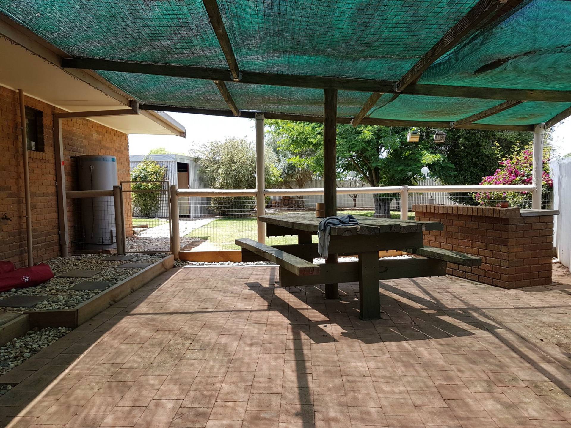 Electric hot water service, clothesline on side, single carport to front of house then down the side is a fenced area that would fit another three cars.