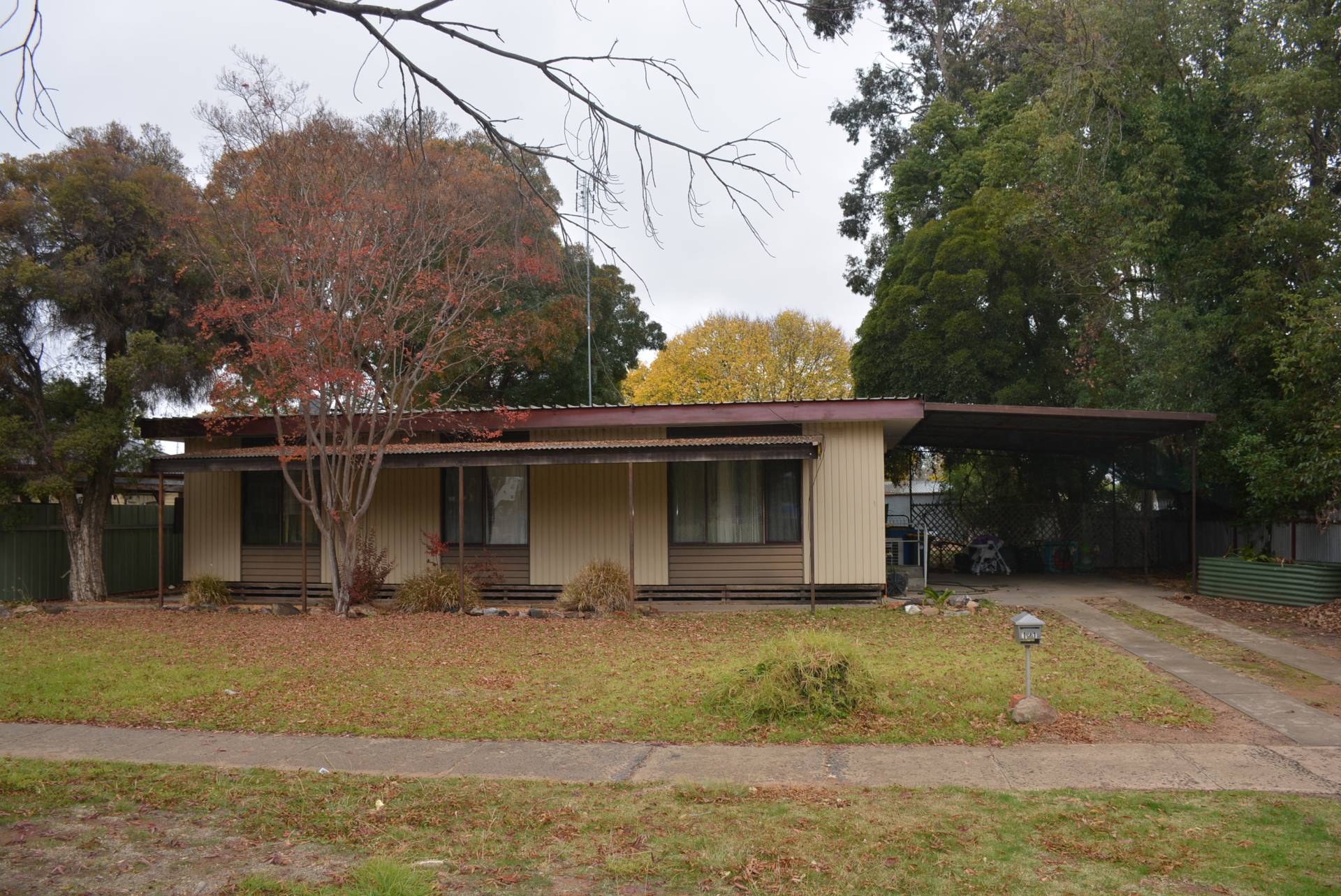 Situated close to town centre, across from skate park and swimming pool is this tidy three bedroom house, features kitchen meals area with electric cook top and oven, lounge with split system, bathroom, separate toilet. Undercover double carport, good size backyard with large shed.