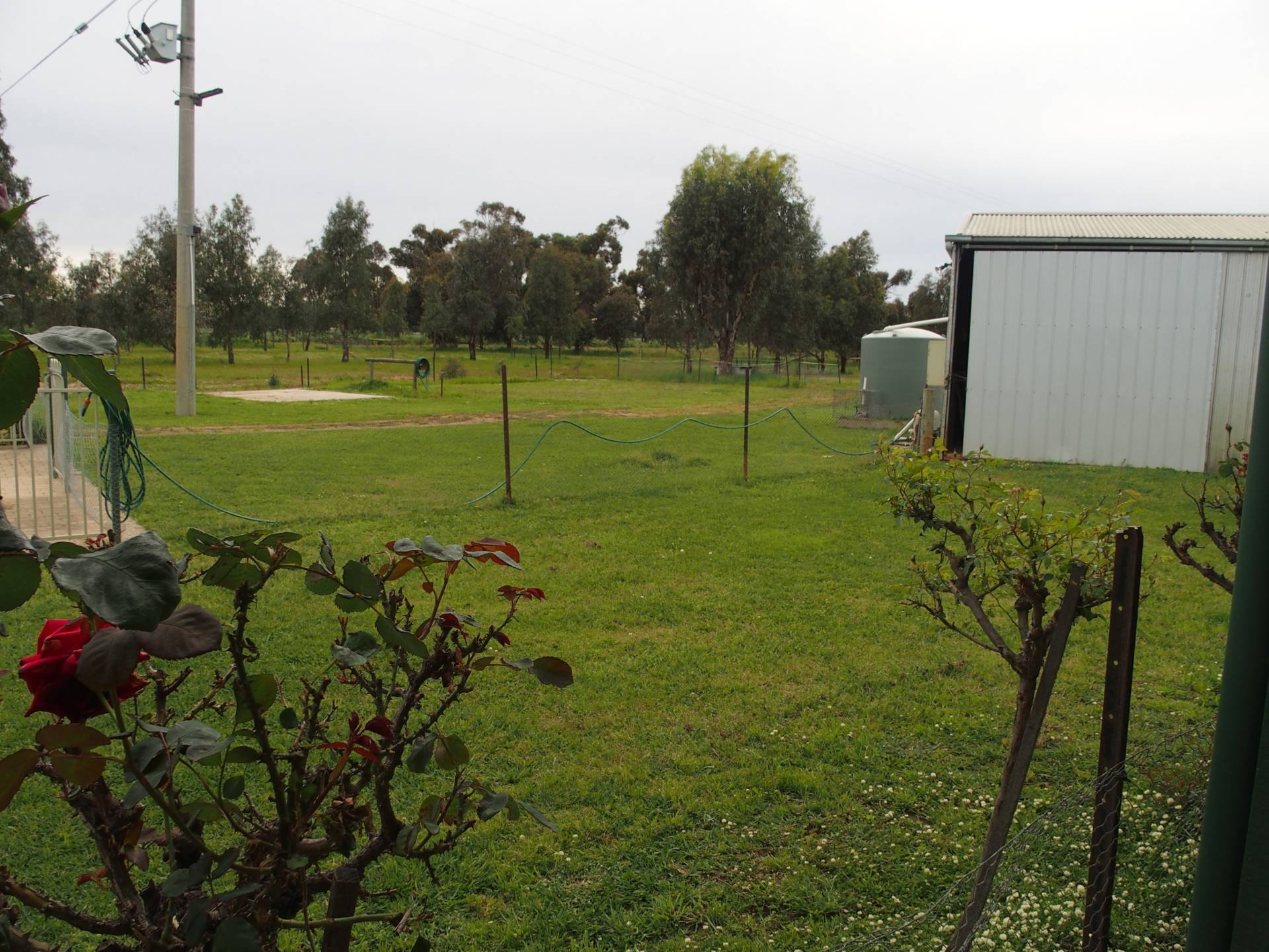 Double undercover carport, Good size fully lockable shed approx. 4x9m, concrete floor and power. 3 good size paddocks with excellent fencing currently used to hold horses. beautiful gardens to be maintained and watered using channel pump with sprinkler system. Bore water used for drinking.