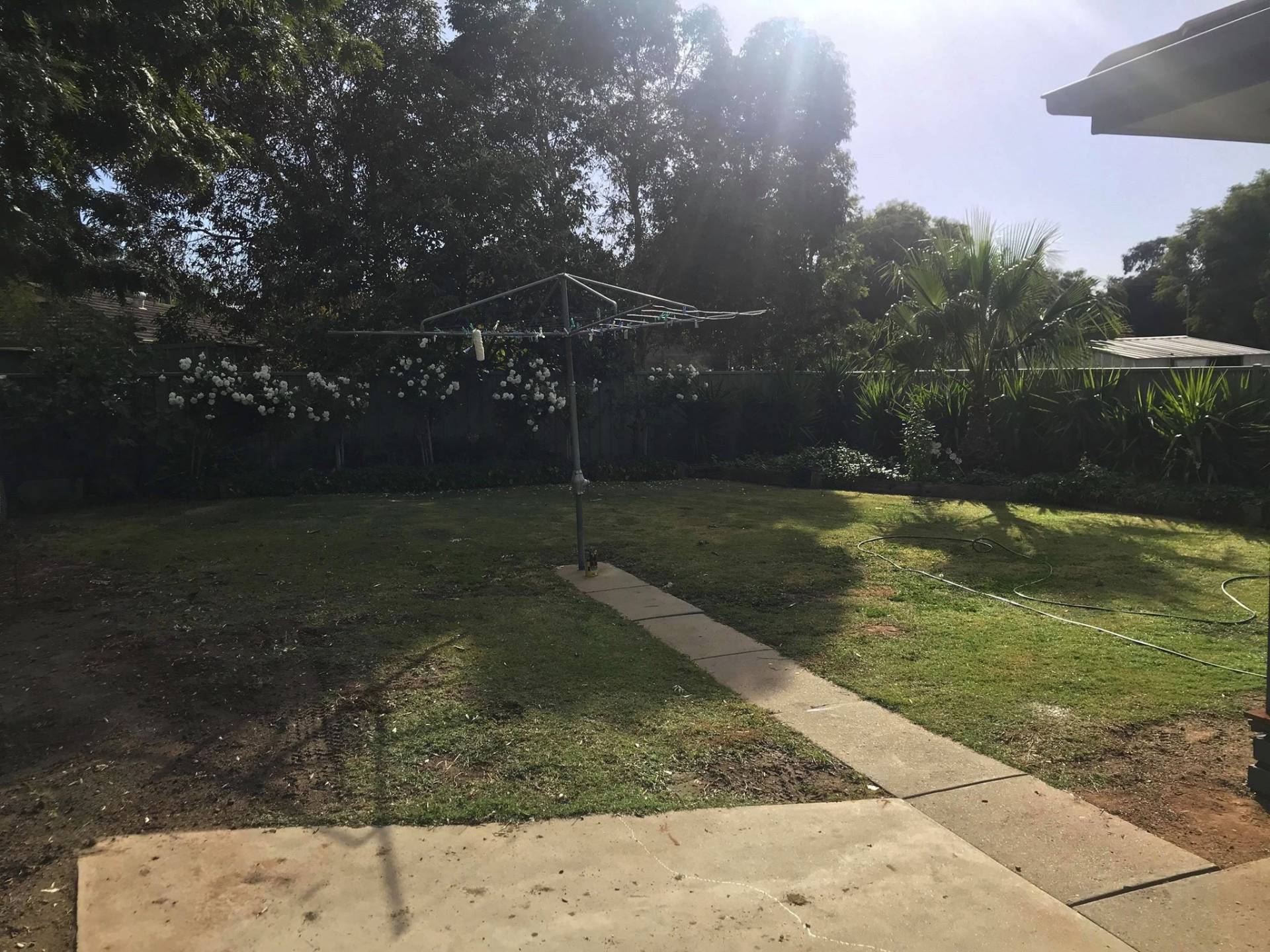 Good size backyard with garden shed, low maintenance surrounds and carport