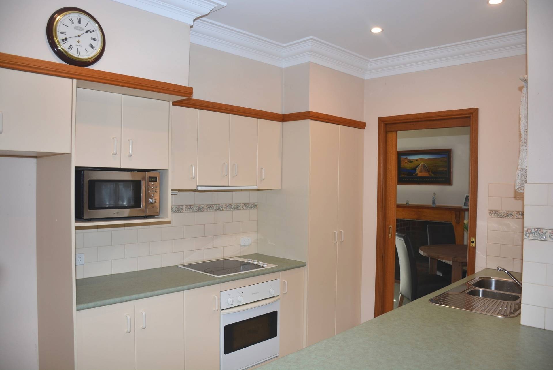 Features nine foot ceilings, three living areas, a feature open fire place and bay windows. Ducted gas heating and ducted evaporative cooling. Excellent outdoor entertaining area with a built-in barbecue and rangehood, and with access from all living areas. Easy vehicle access to the rear yard and large 12m x 7m brick shed ideal for the tradie or someone with a lot of toys.