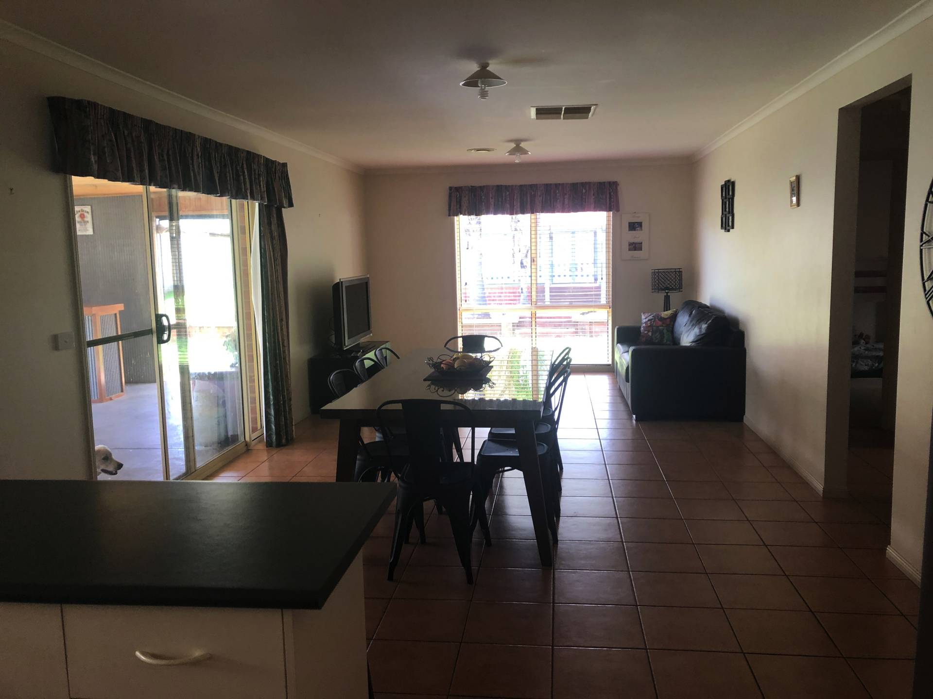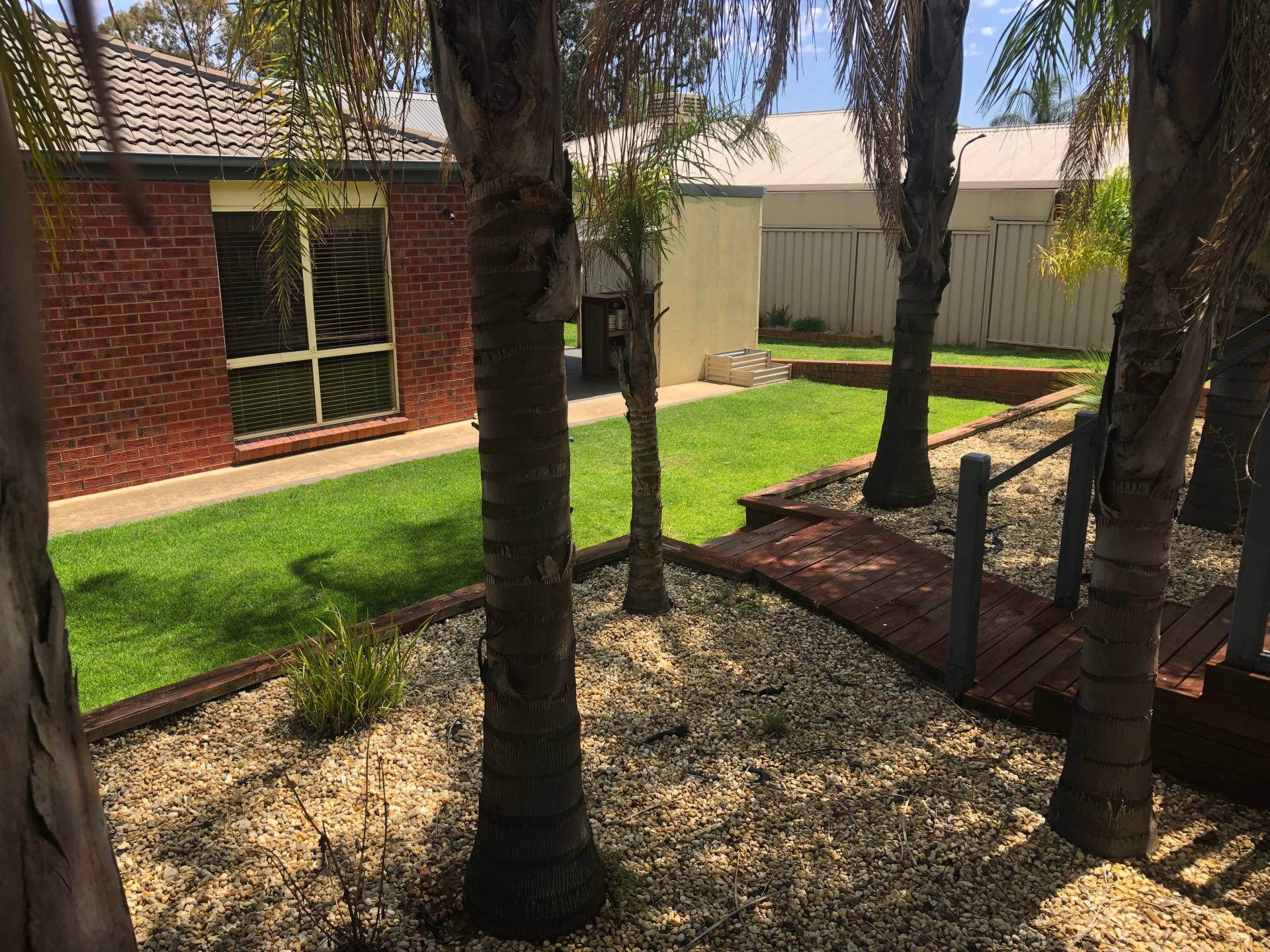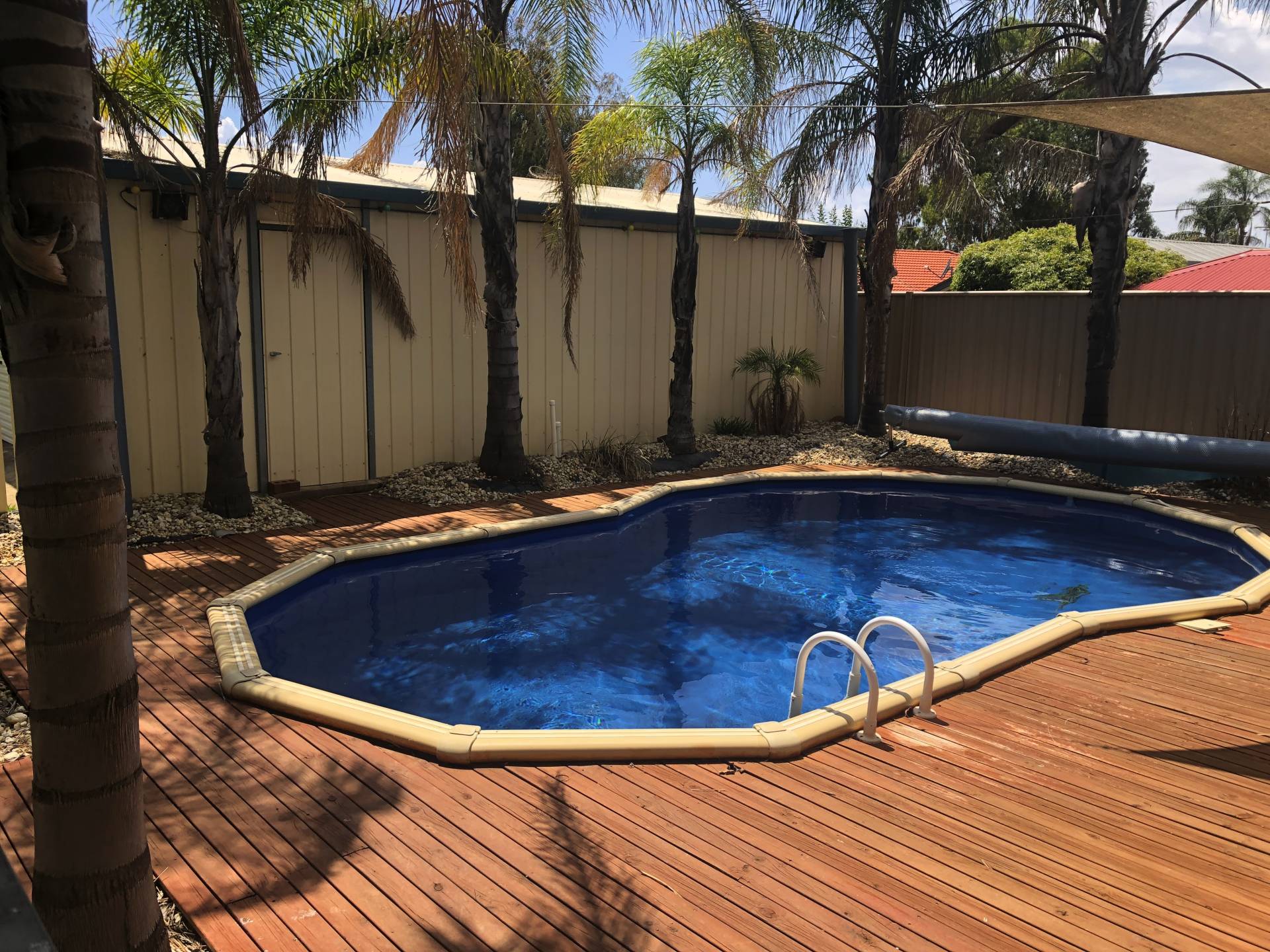 Immaculate three bedroom Barooga residence in a great location, close to creek, parkland and school. Features well appointed kitchen with electric oven, gas cooktop & dishwasher. Spacious tiled family area and separate lounge. Generous bedrooms, main with bay window, walk in robe and ensuite. Ducted gas heating, ducted evaporate cooling and quality appointments throughout. Double lockup garage, easy vehicle access to yard and 6 metre by 9 metre colorbond shed, ideal for the handyman. Excellent enclosed outdoor entertaining area, lovely in-ground pool and fully landscaped easy care surrounds.