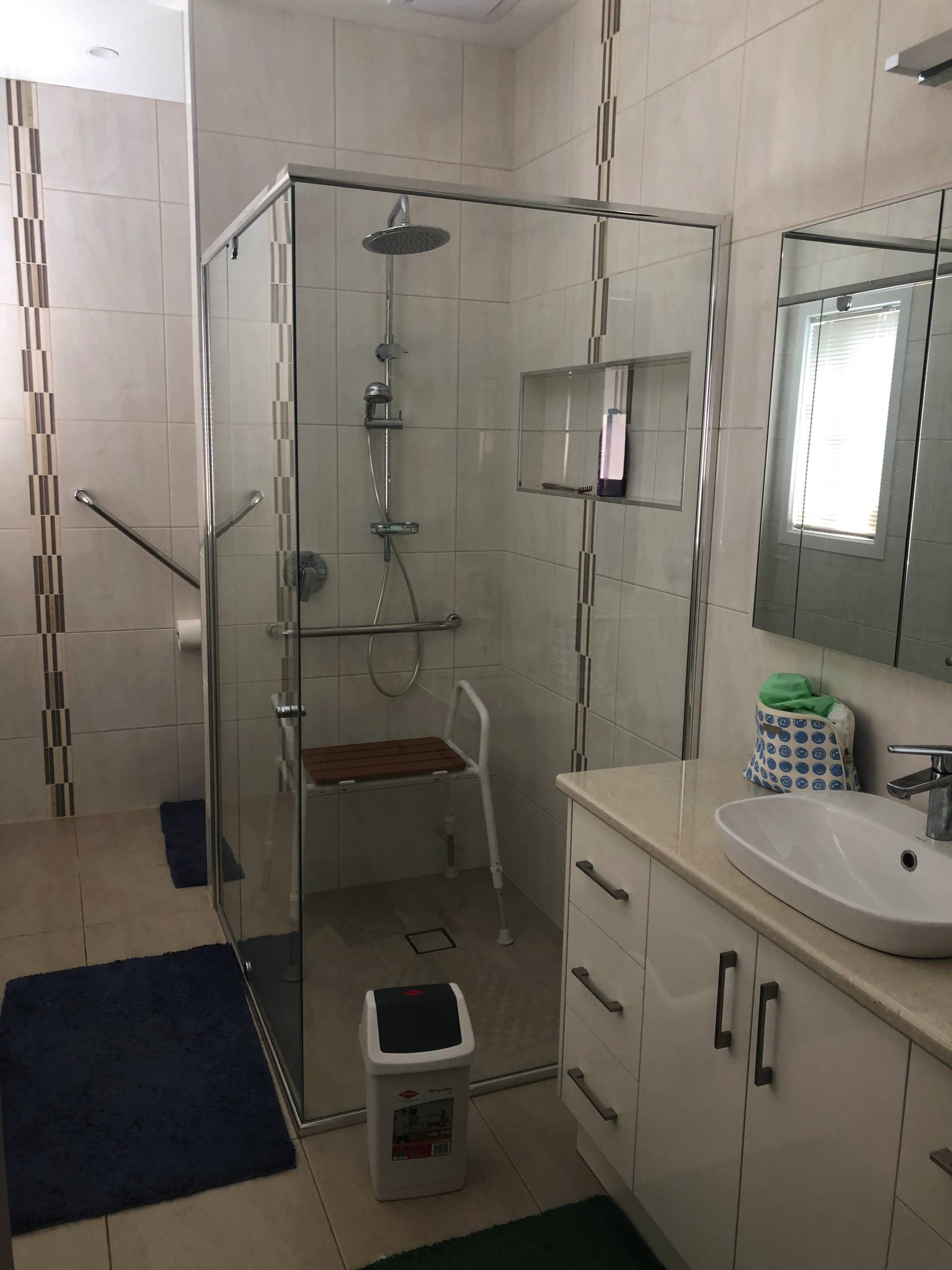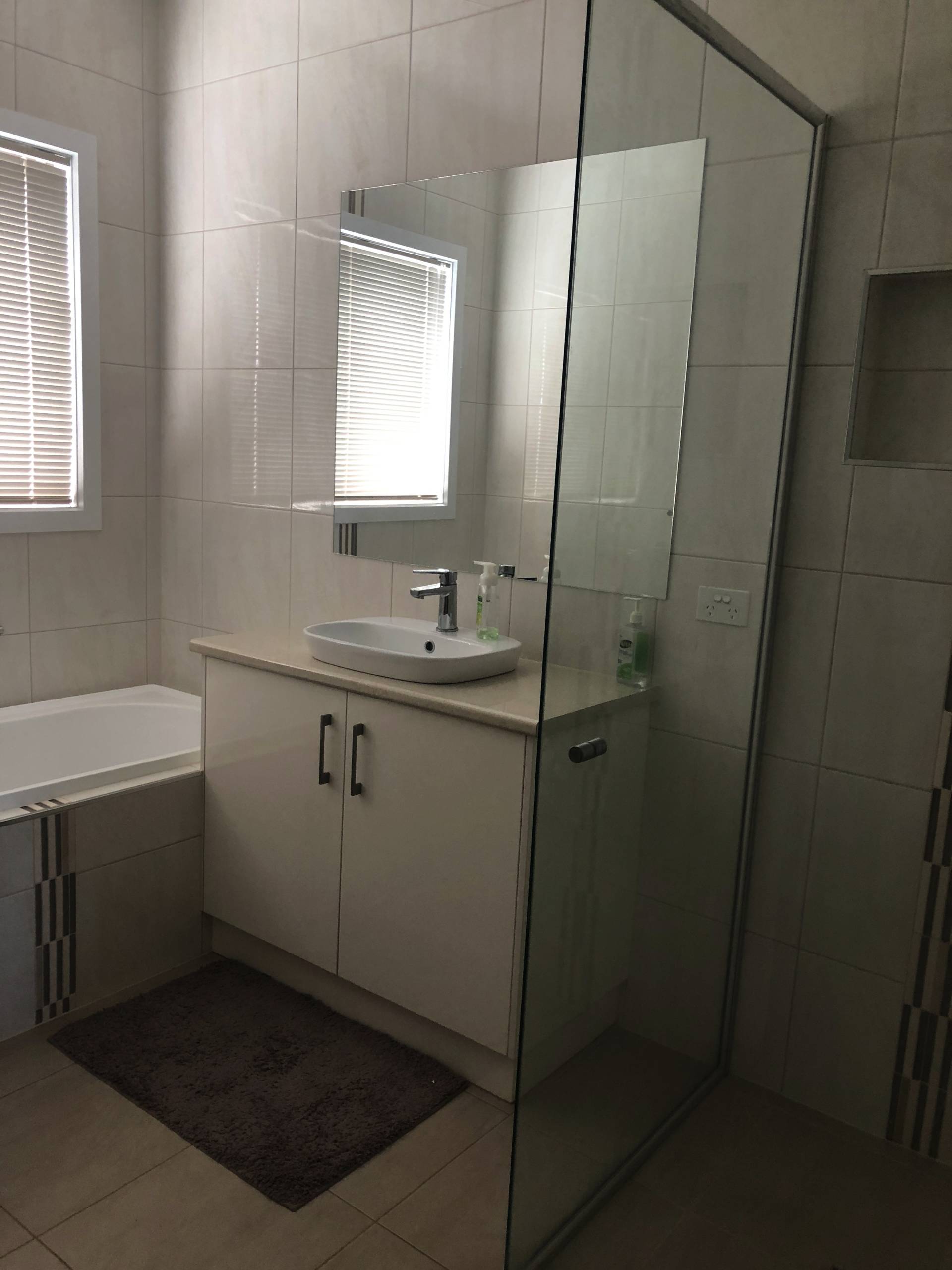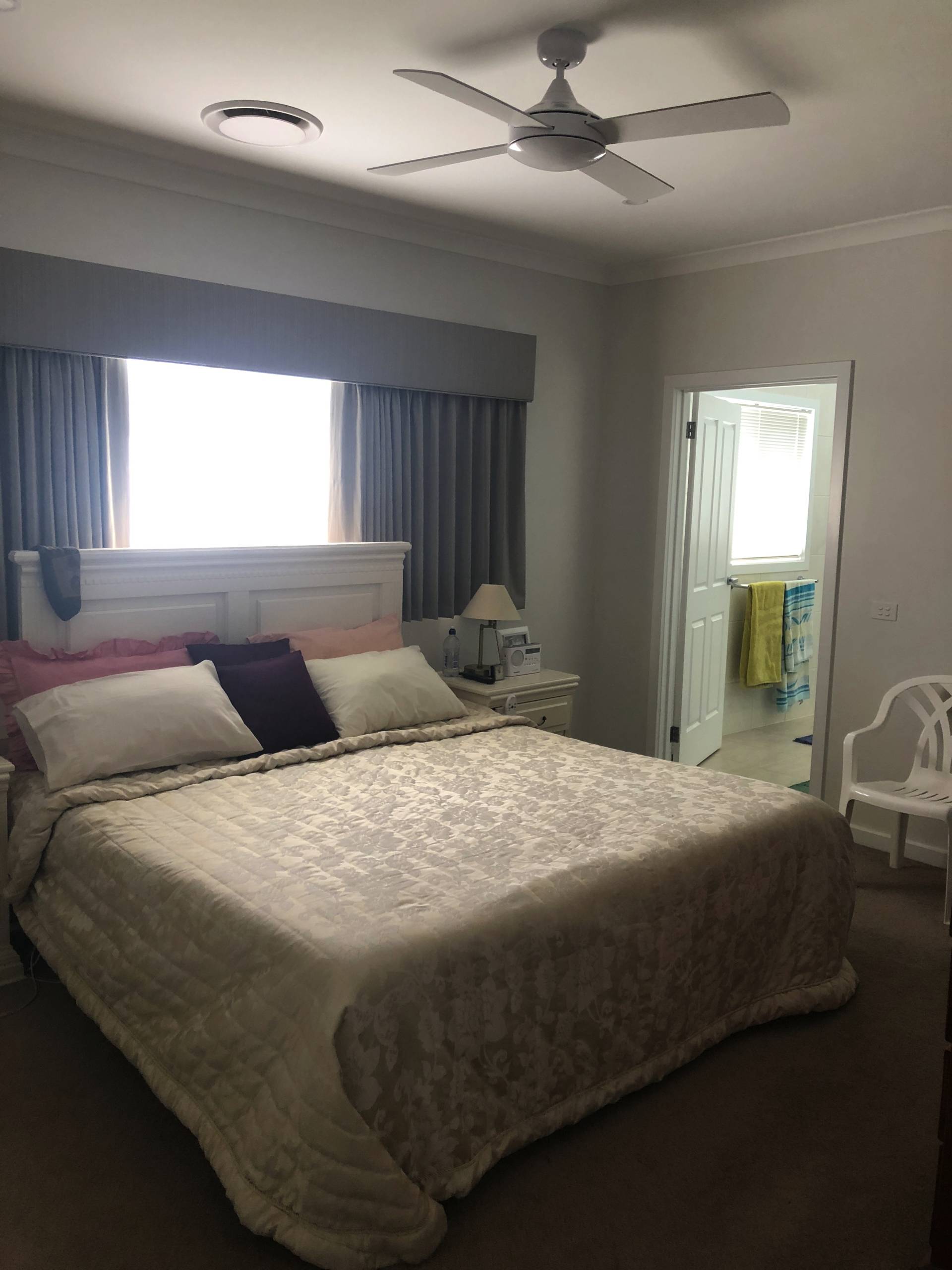 -Spacious main bedroom with ceiling fan, carpet, built in robe, ensuite with vanity, shower and  toilet. Large walk in robe