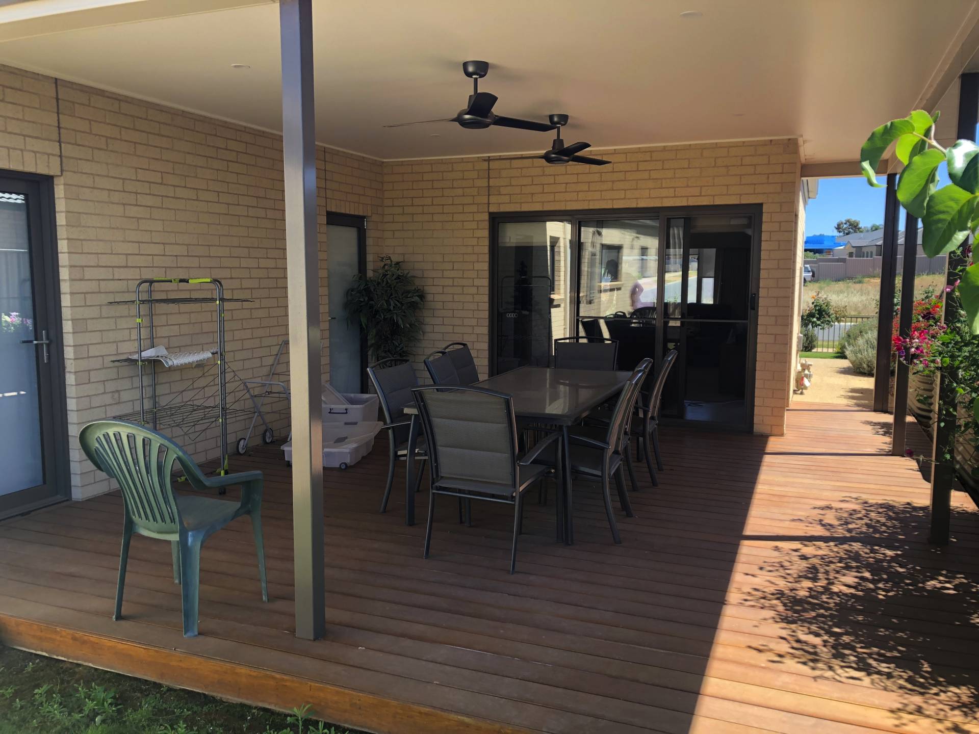 -Impressive outdoor alfresco area, wooden timber flooring, x2 ceiling fans