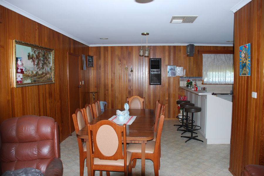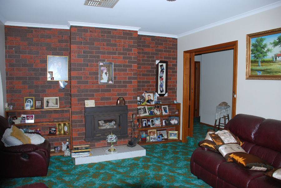Three bedroom home is sited on large corner allotment. Features well appointed kitchen with wall oven, tiled meals area and spacious sunken lounge with solid fuel heater. Good size bedrooms all with built in robes, ducted gas heating and ducted evaporative cooling. Excellent 6m x 9m brick garage with concrete floor and toilet. And a great yard for the kids to kick the footy or play cricket.