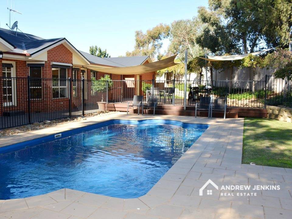 Within the house features a large main bedroom with a walk-in-robe, ensuite with two vanities and a separate toilet. Ducted gas heating, evaporative cooling, polished jarrah timber floors, and direct house access from the double garage.