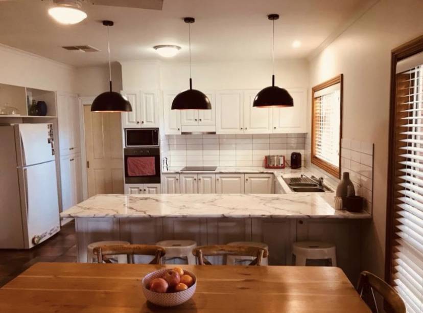 ~ Kitchen meals area with electric cooktop, oven and dishwasher