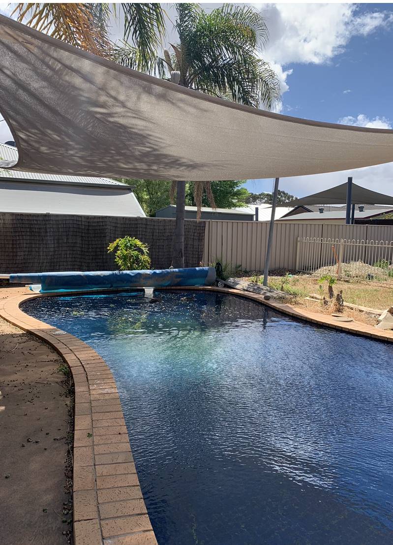 ~ double garden shed with concrete floor, single lockup garage and single carport.