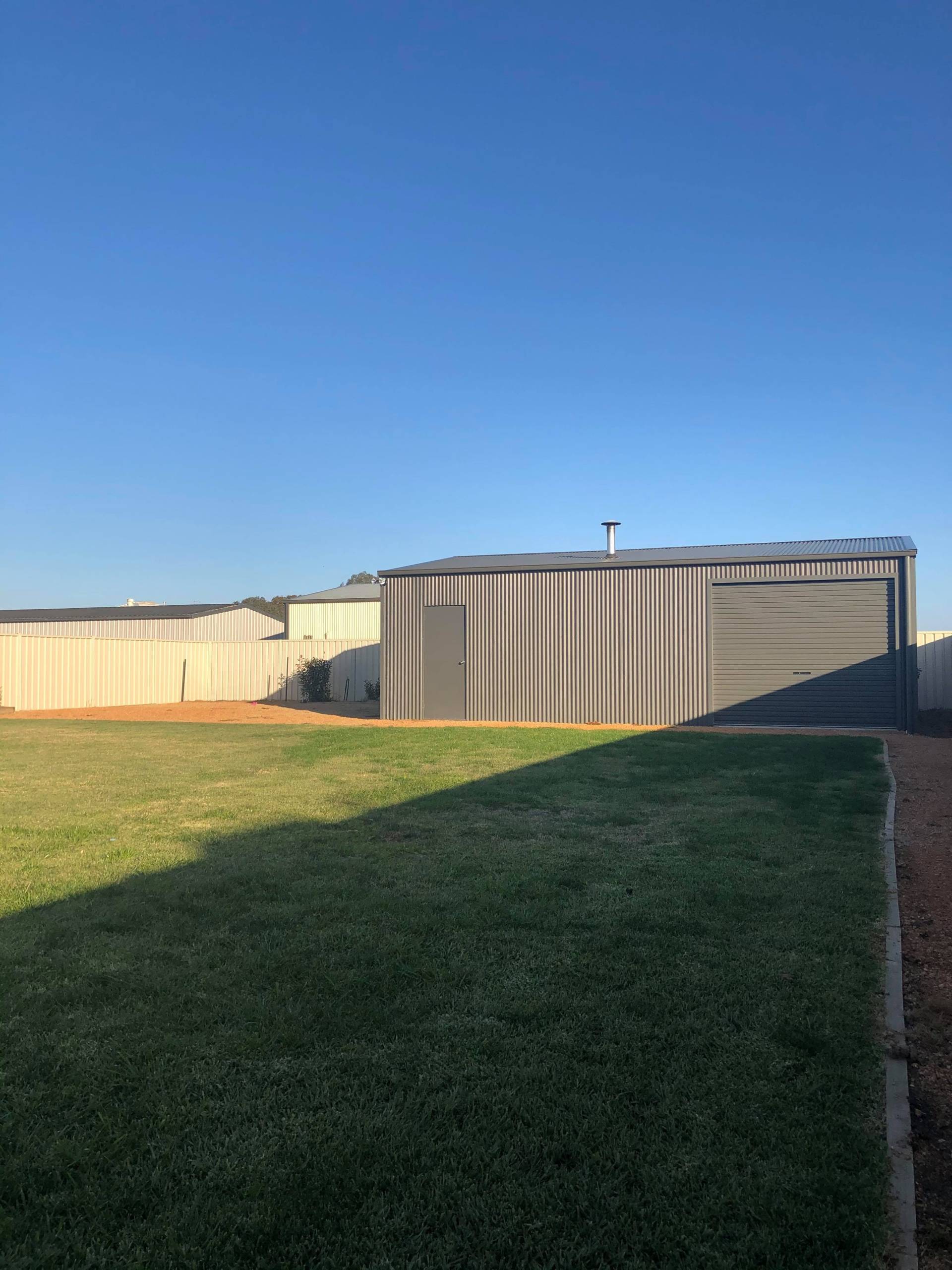 ~7x9m shed with concrete floor, lighting, pot belly and power