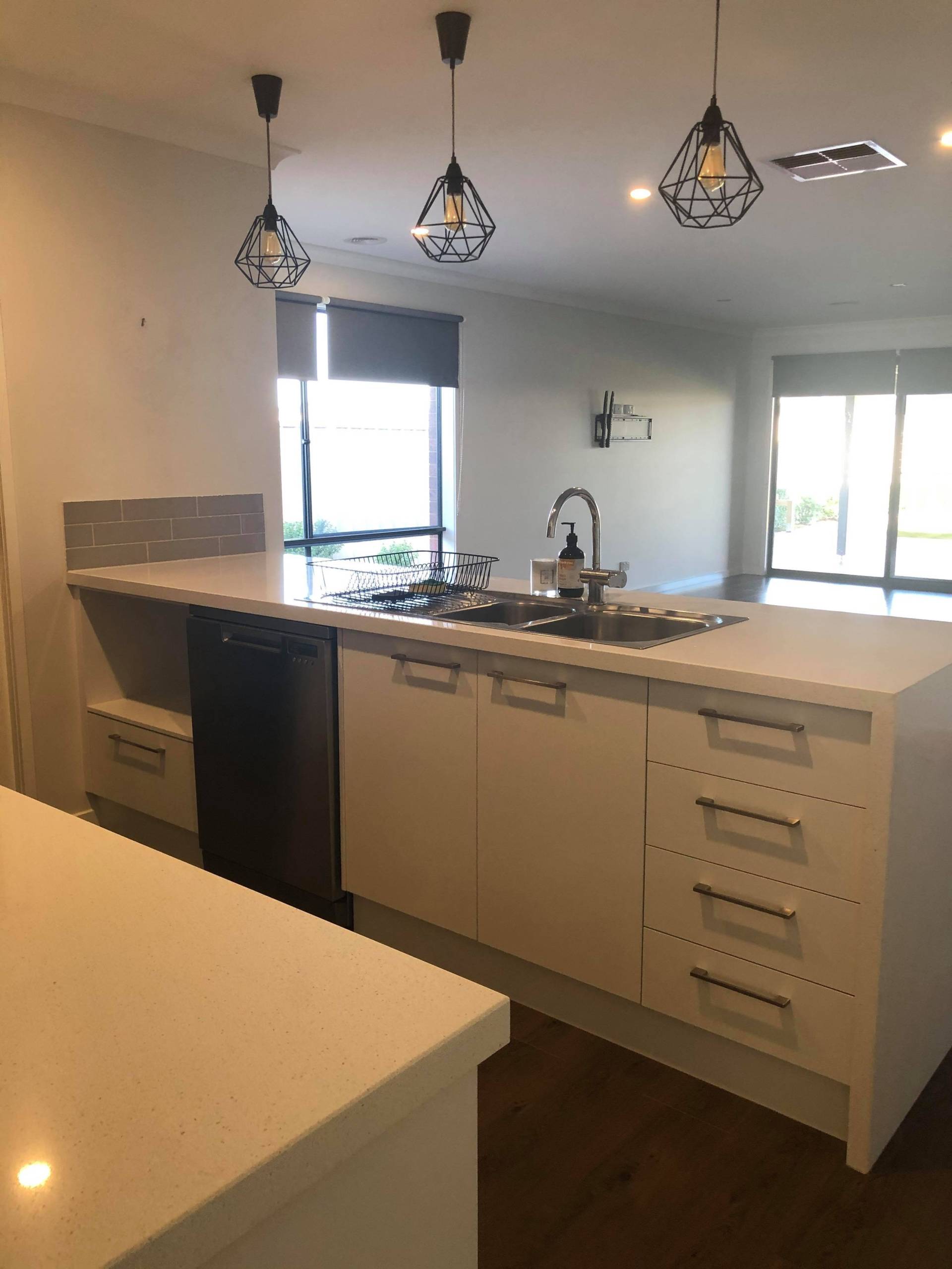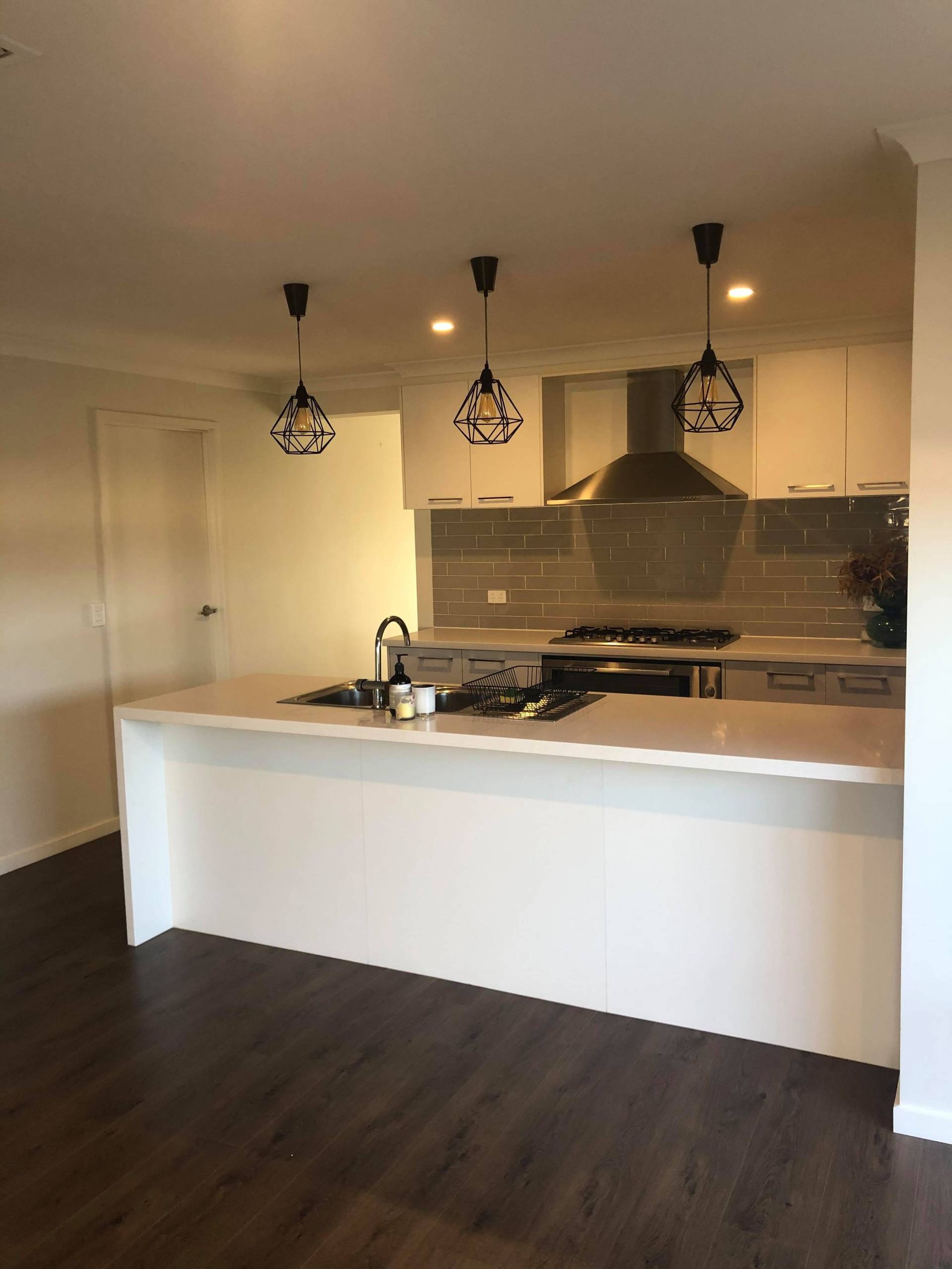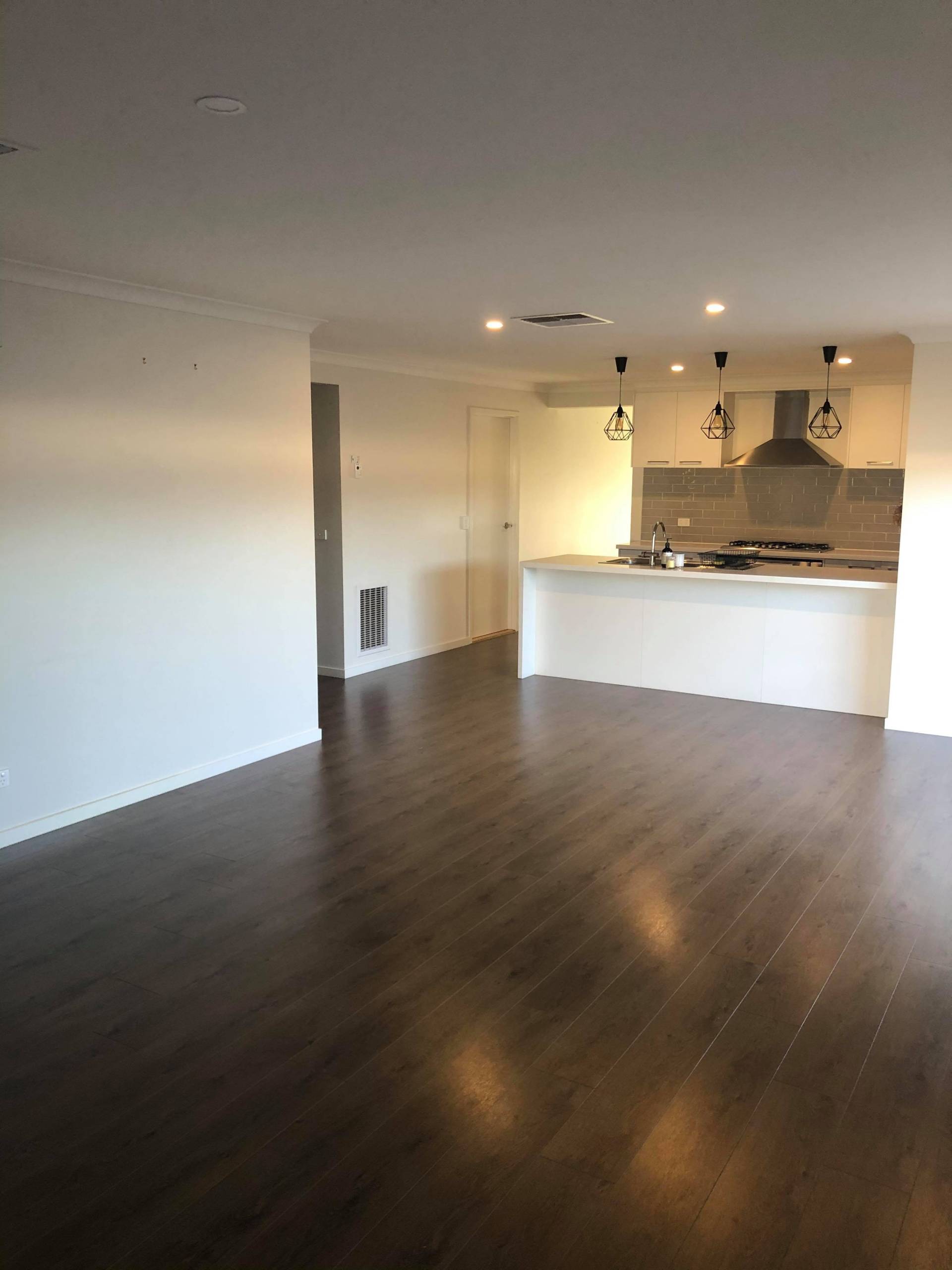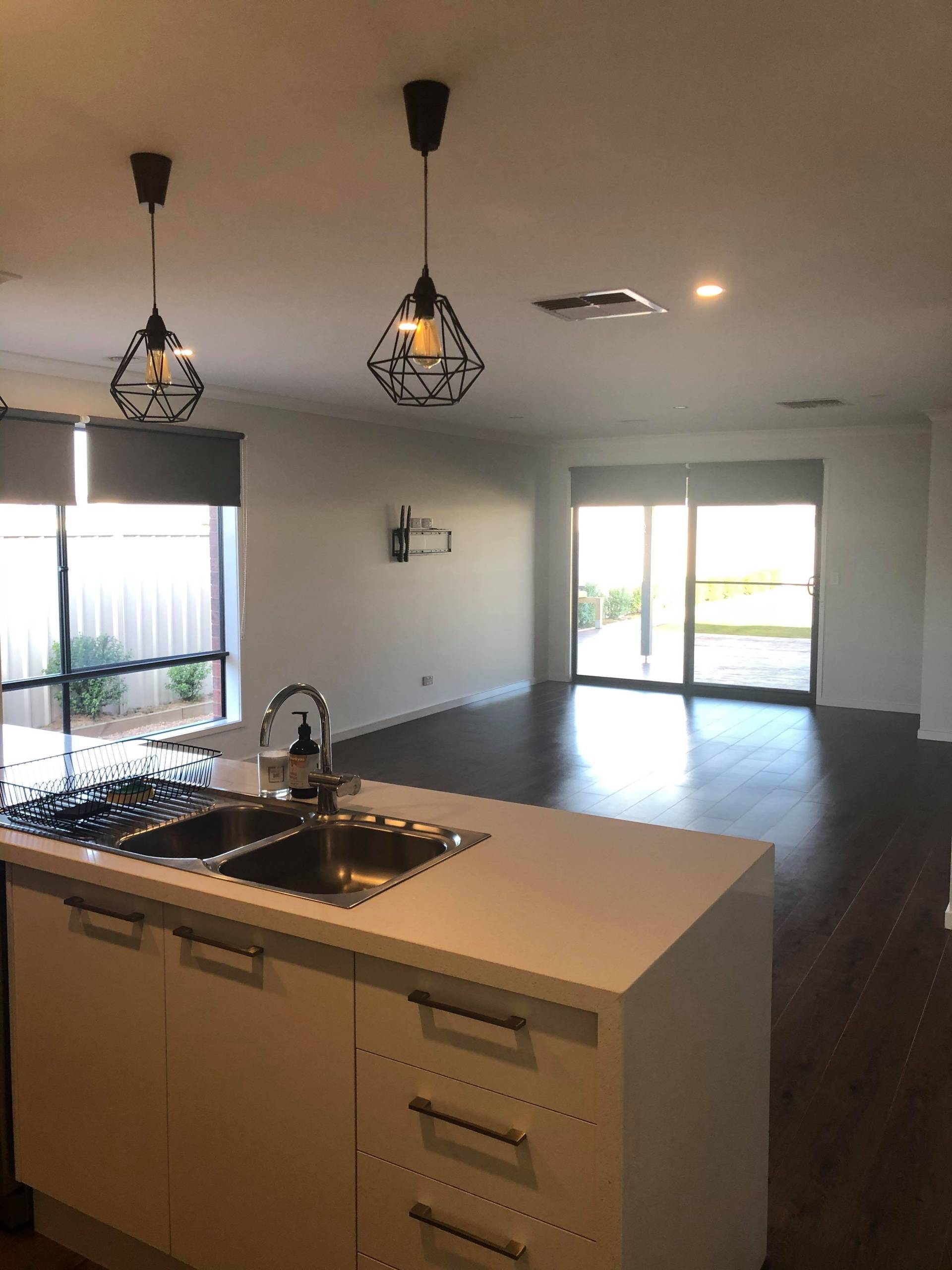 ~ Open plan kitchen, meals & lounge area with laminate flooring throughout, large 900 electric oven, gas cooktop and dishwasher. Spacious pantry.