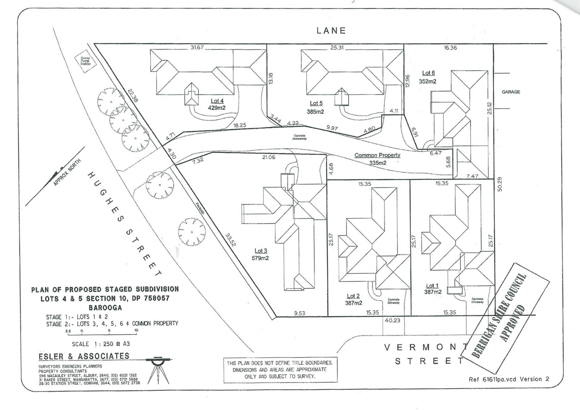 This choice development site is ideally positioned in Barooga, adjacent to the Botanical Gardens and close proximity to town centre, golf course, Bullanginya Lagoon and Murray River walking trails. Located at the corner of Vermont & Hughes Street and measures a generous 2080m².  Previously approved development consent for a 4 lot subdivision and detached 4 brick villa units. Represents a unique opportunity for the developer or purchaser wanting a large home site.