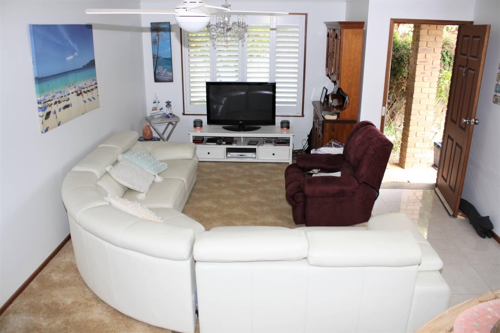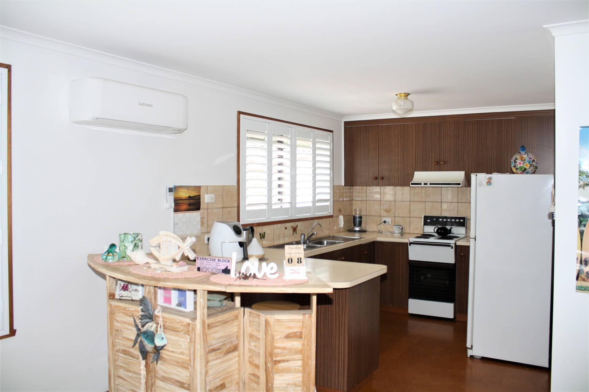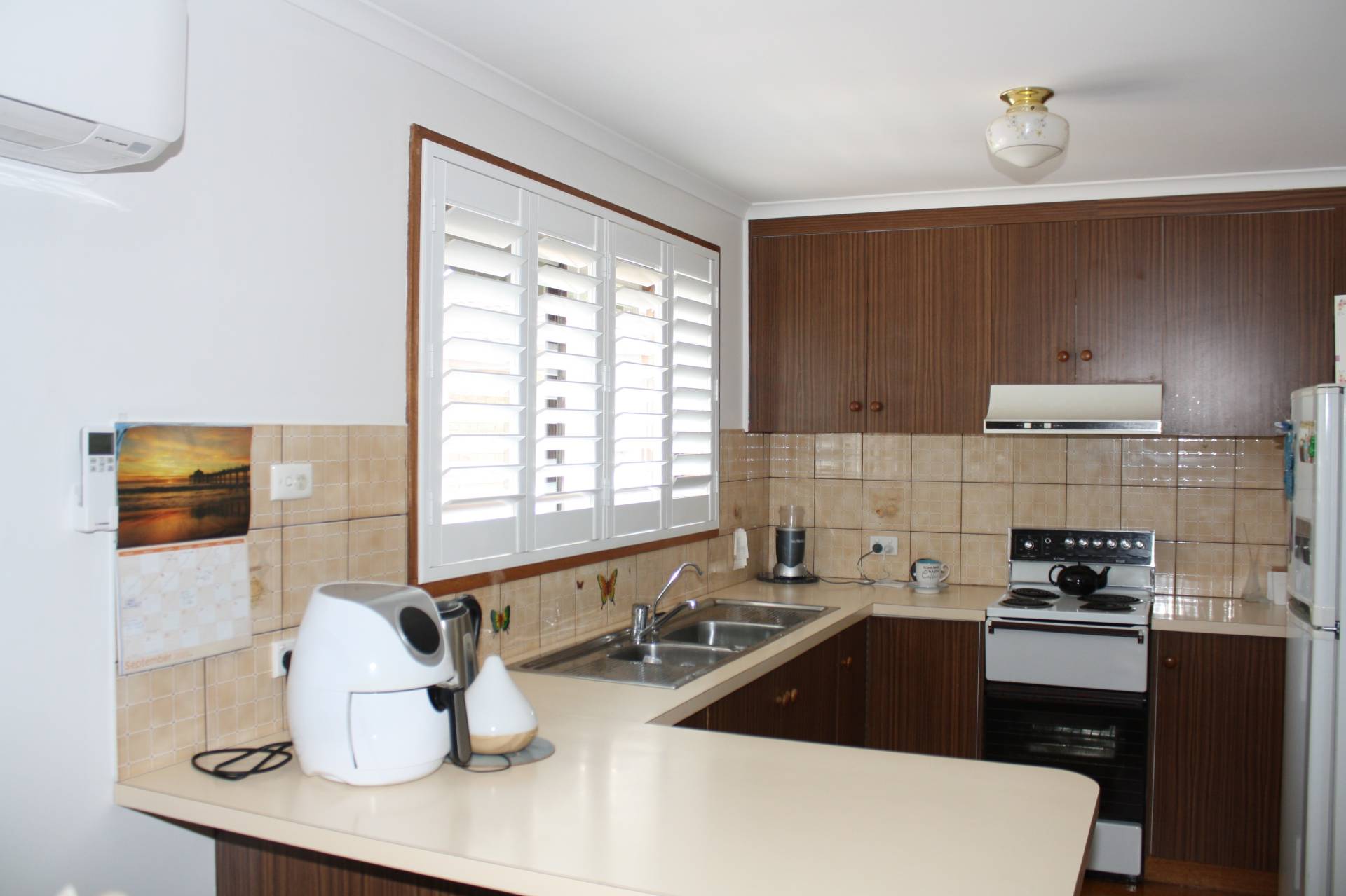 This unit offers a good sized main living area and kitchen; complete with window shutters, ceiling fan, breakfast bar, ample cupboard and bench space. Comprising built-in-robes and timber flooring in both bedrooms; main with split system air conditioning and 2nd room with ceiling fan. Well equipped bathroom with vanity,  joint bath and shower and separate toilet.