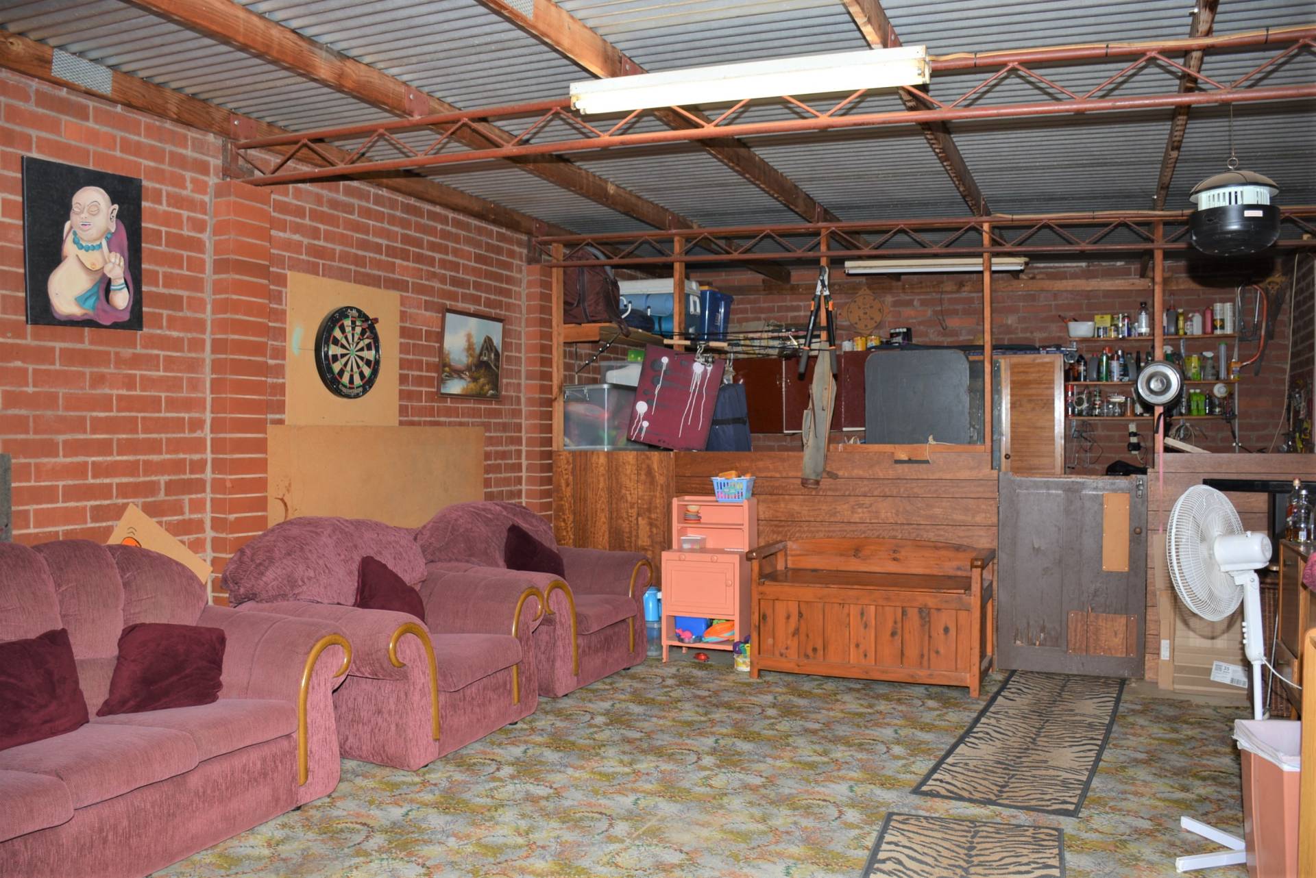A 7x5m brick veneer lock up shed which makes for the perfect man cave. The secure rear yard has a covered outdoor entertaining area, garden shed and caravan port.