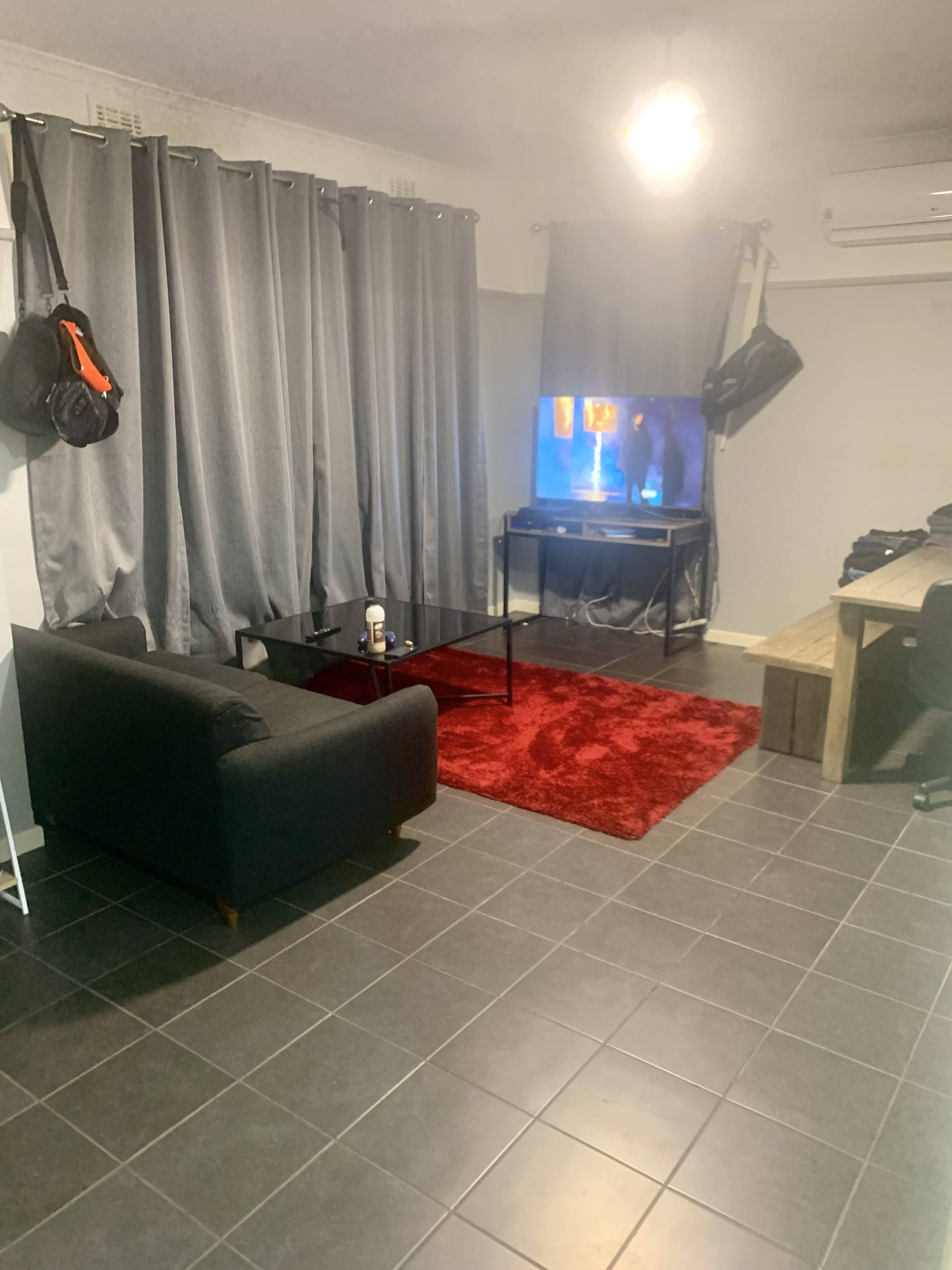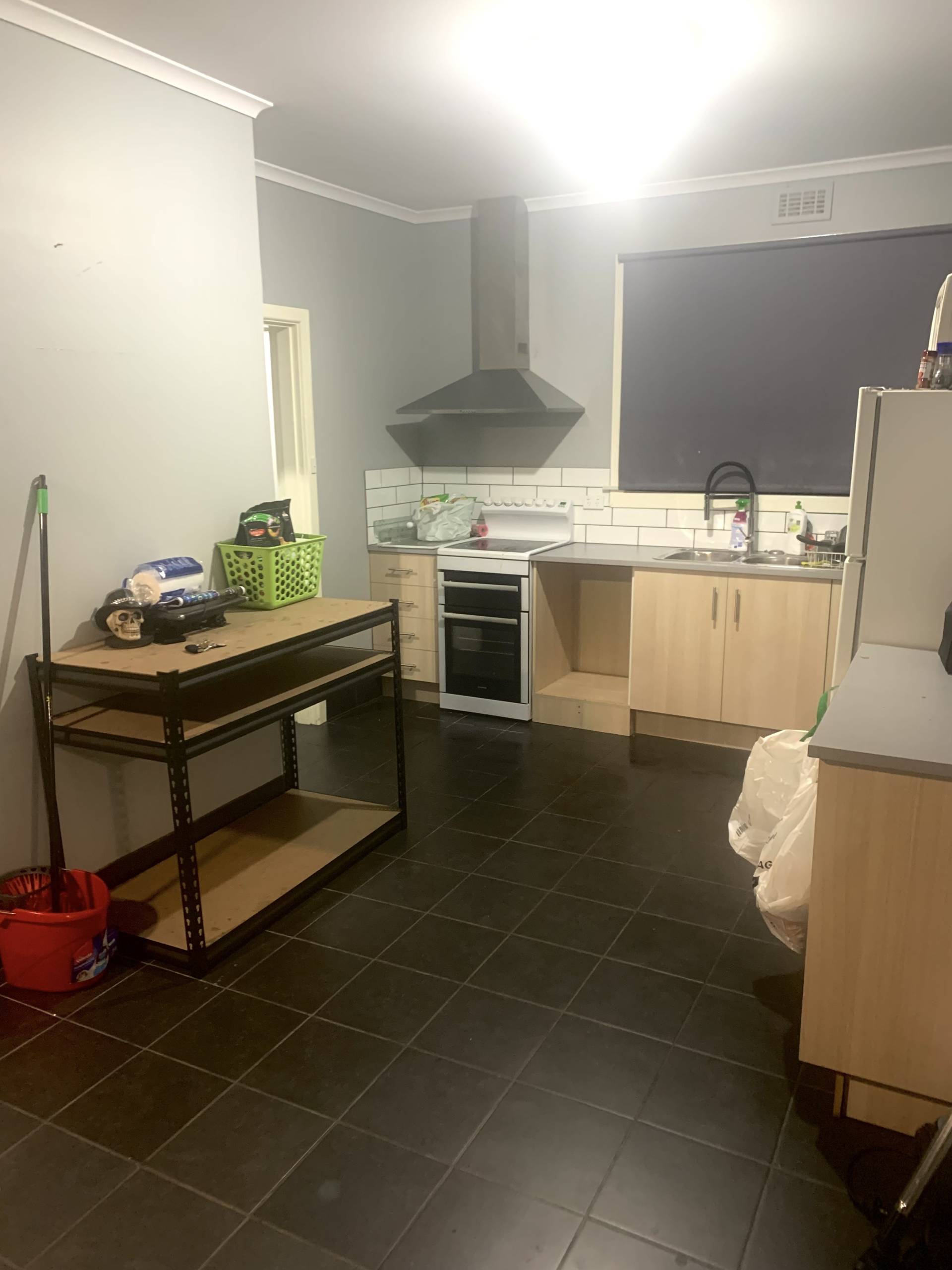 Home features open plan kitchen/lounge area with tiled floor, reverse cycle split system, ceiling fan, electric cooktop and oven.