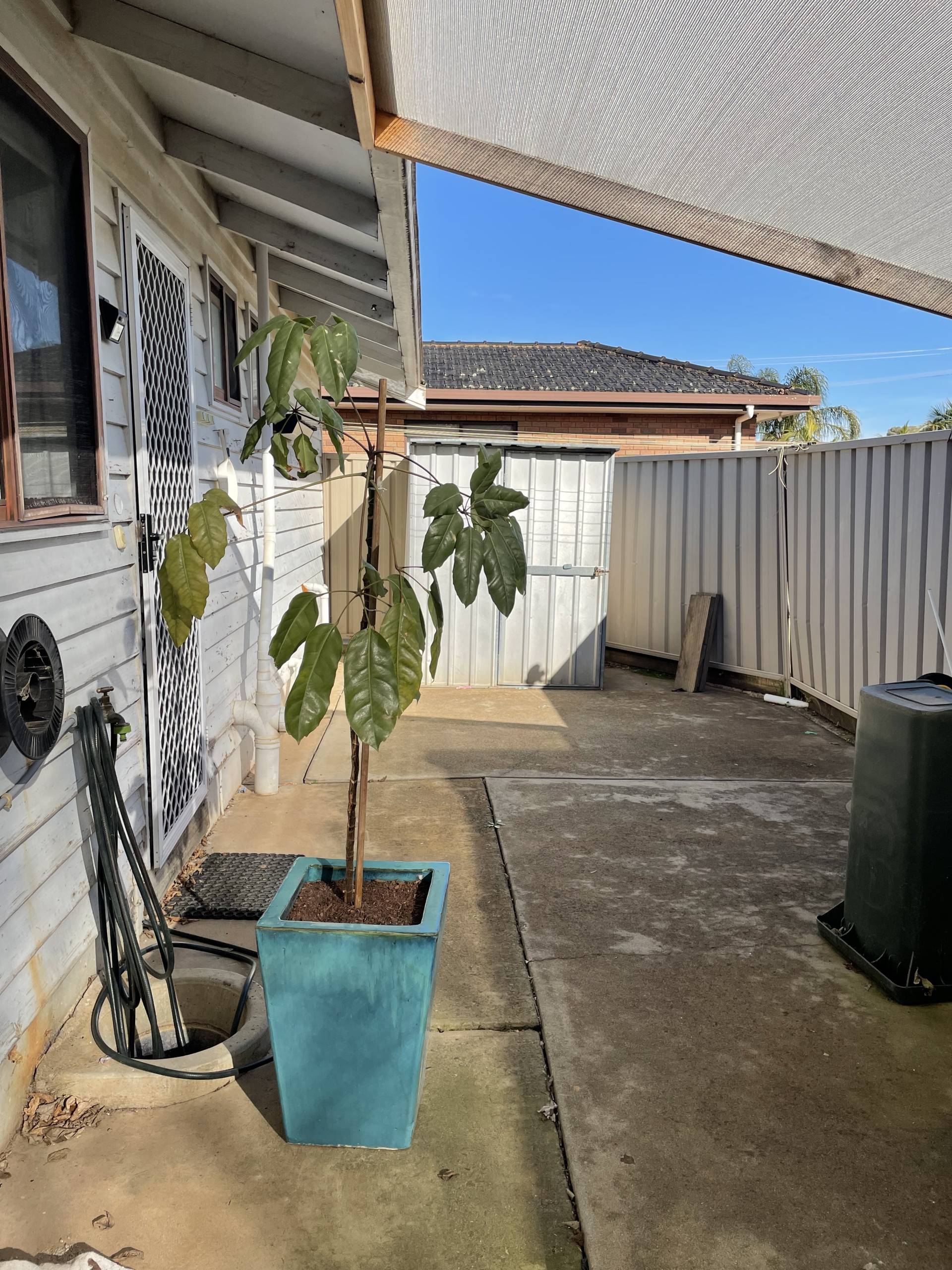 Small concrete backyard with covered entertaining area with shade sail, rear access that could park two vehicles behind closed gates. Garden shed and gas HWS.