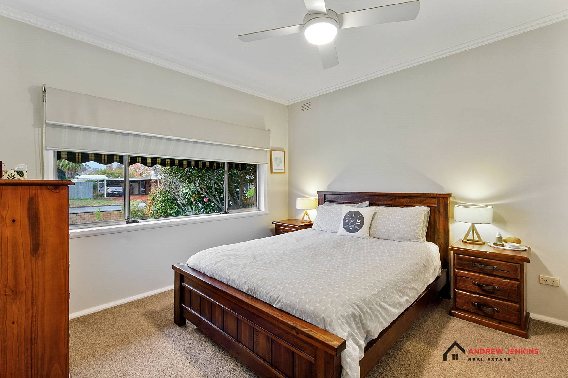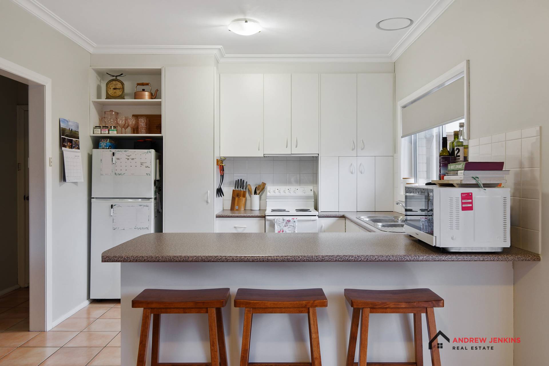 The well appointed kitchen and meals area features an electric cooktop, good cupboard space, breakfast bar and feature fire surround with gas log fire and reverse cycle split system air conditioning. The heart of the home flows into the good sized main living space with timber floating flooring and sliding doors opening to the front porch.