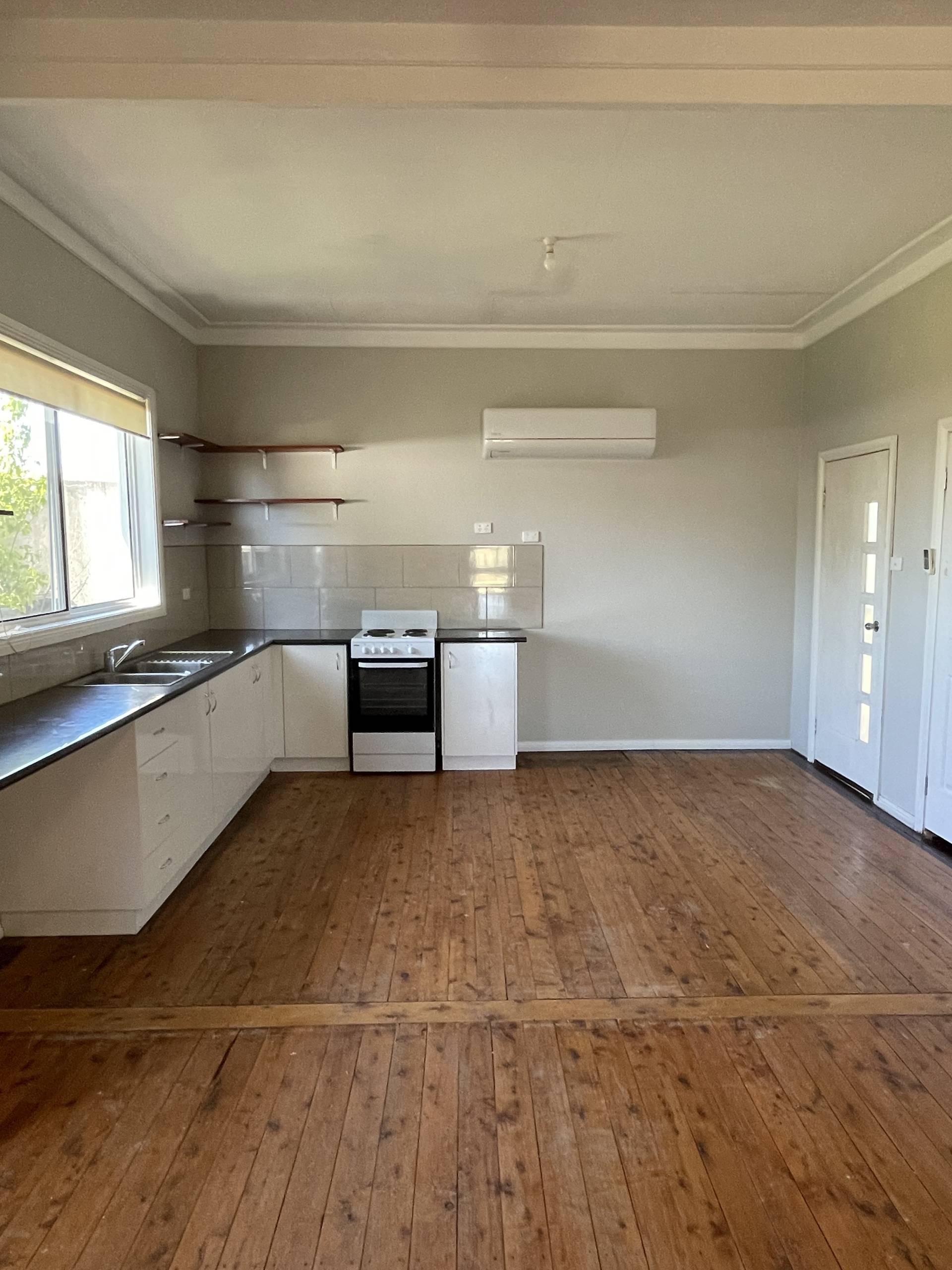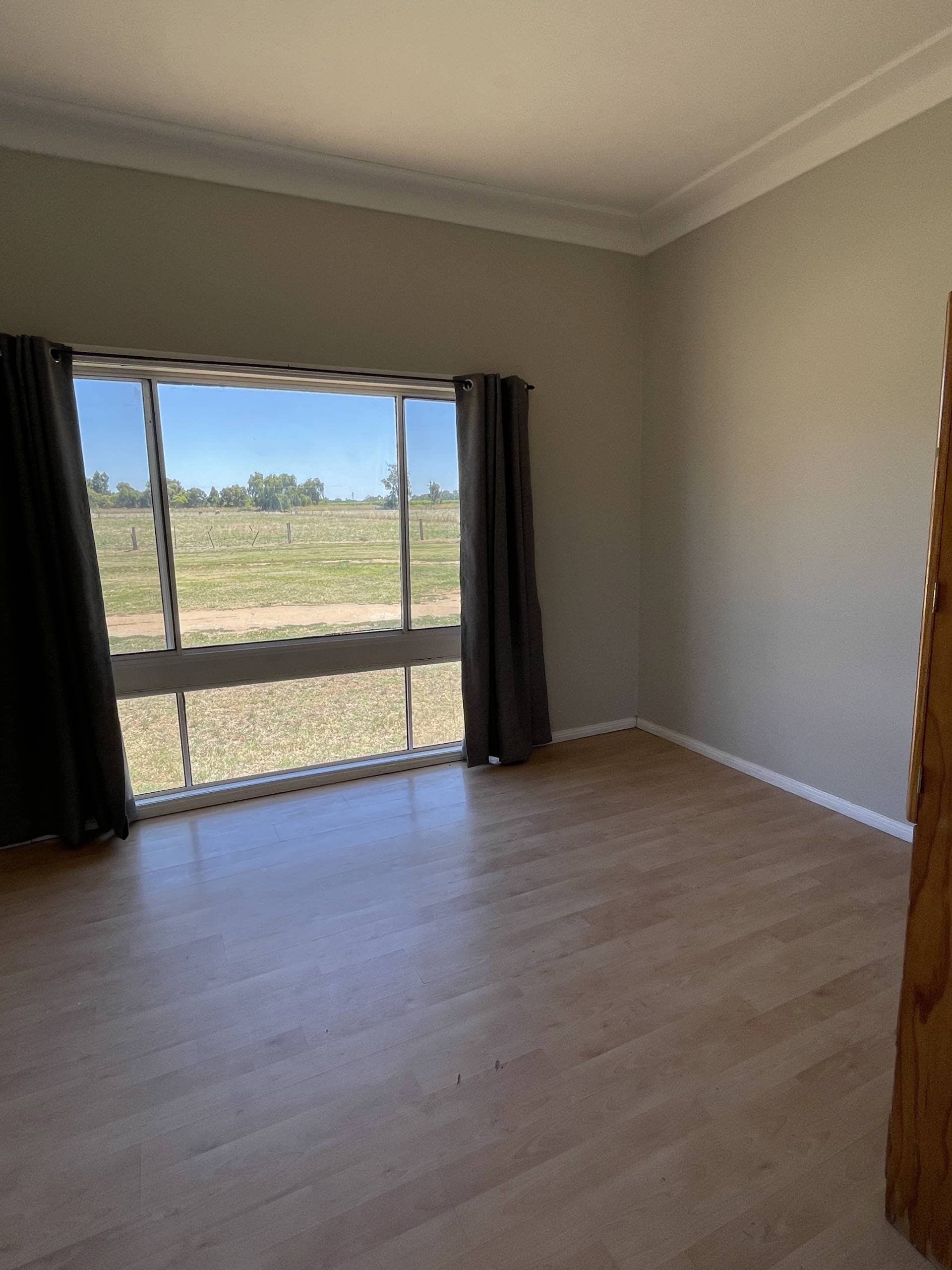 This three bedroom residence has been freshly painted throughout, features open plan kitchen meals area with electric cook top and oven, reverse cycle split system. Wooden floorboards throughout, bathroom with shower, vanity and toilet. Separate laundry, double carport and sundry shedding. Please note this house dose run the bore for the two houses.