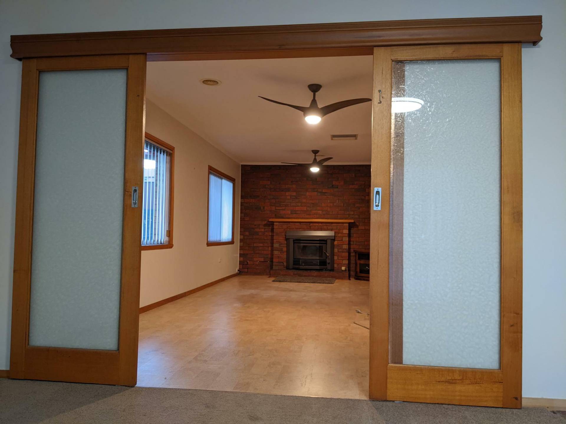 ~Good size loungeroom with dual entry, carpet and ceiling fans.