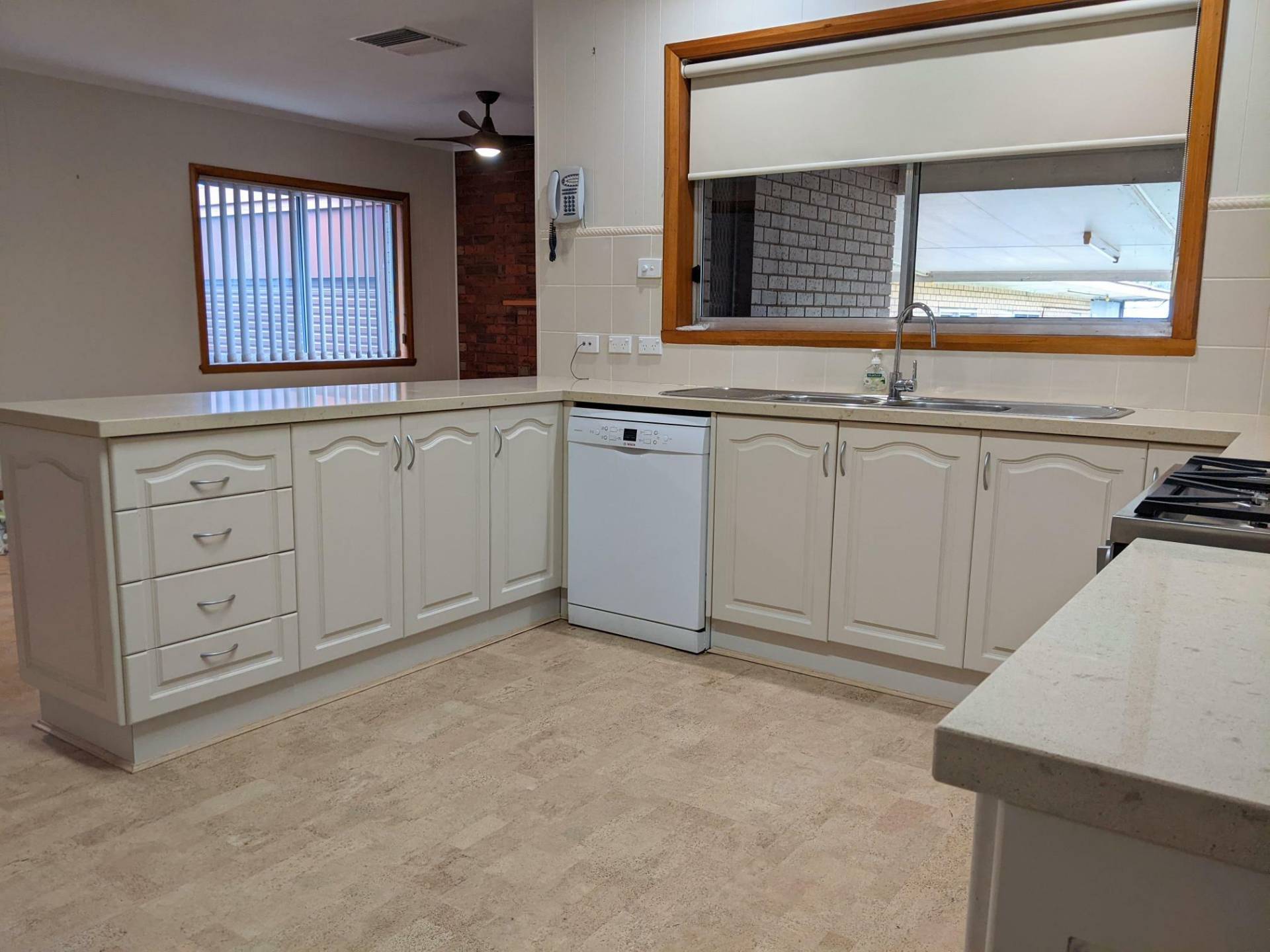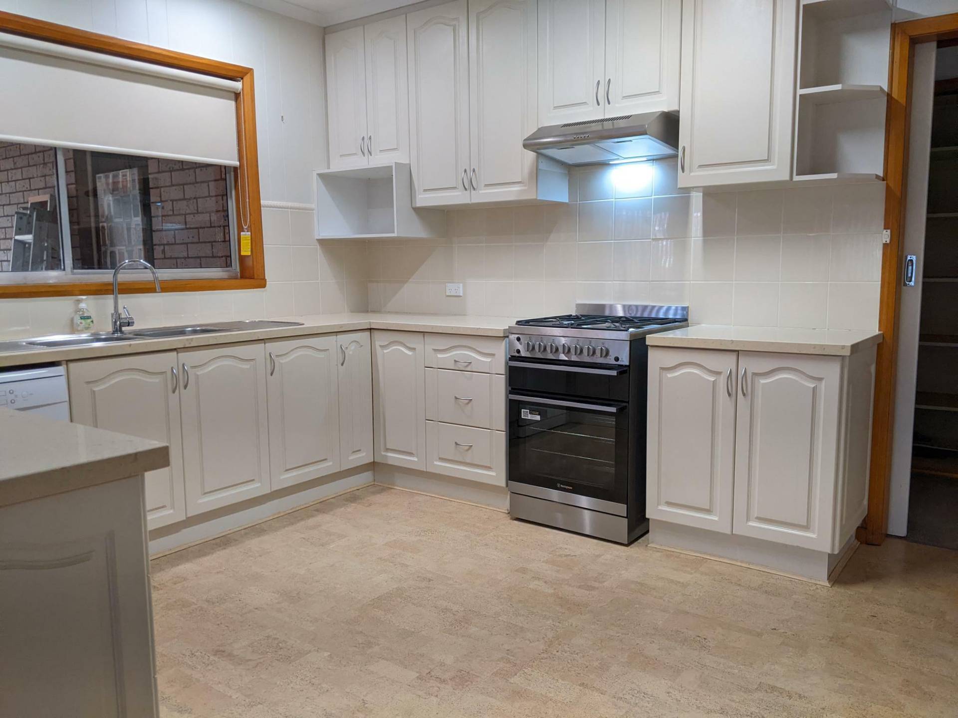 ~Kitchen/meals/living area with brand new gas cooktop/oven, dishwasher, plenty of cupboard and bench space. Beautiful cork flooring, ceiling fans, in/wall reverse cycle air conditioner and cosy wood fire heater.