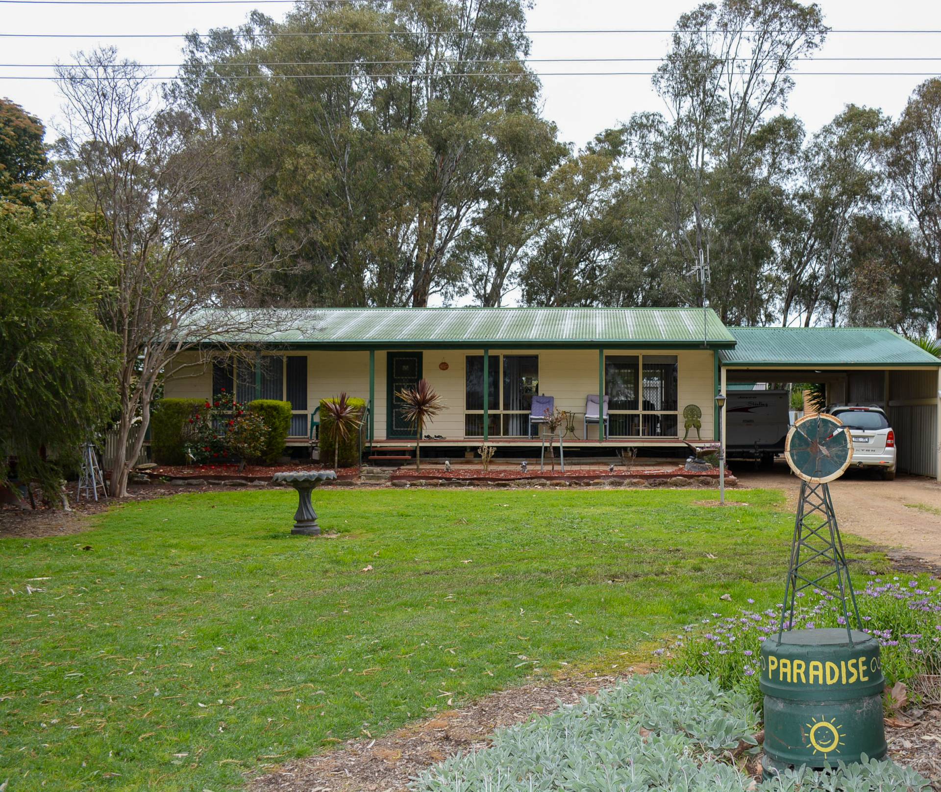 Large four vehicle carport, 7x6m colorbond shed ideal for the handyman. Appealing established surrounds, fruit trees, well fenced & secure yard.