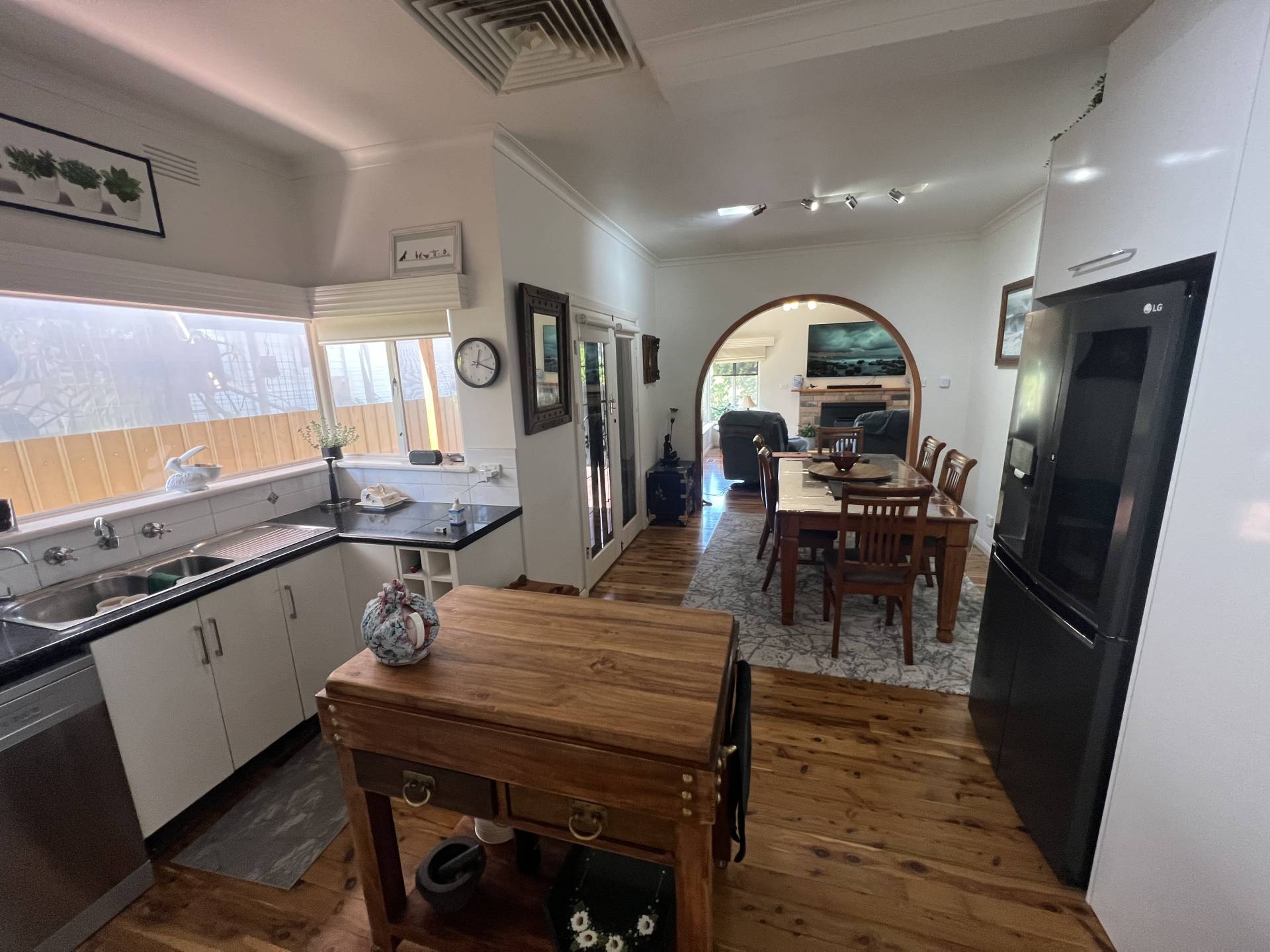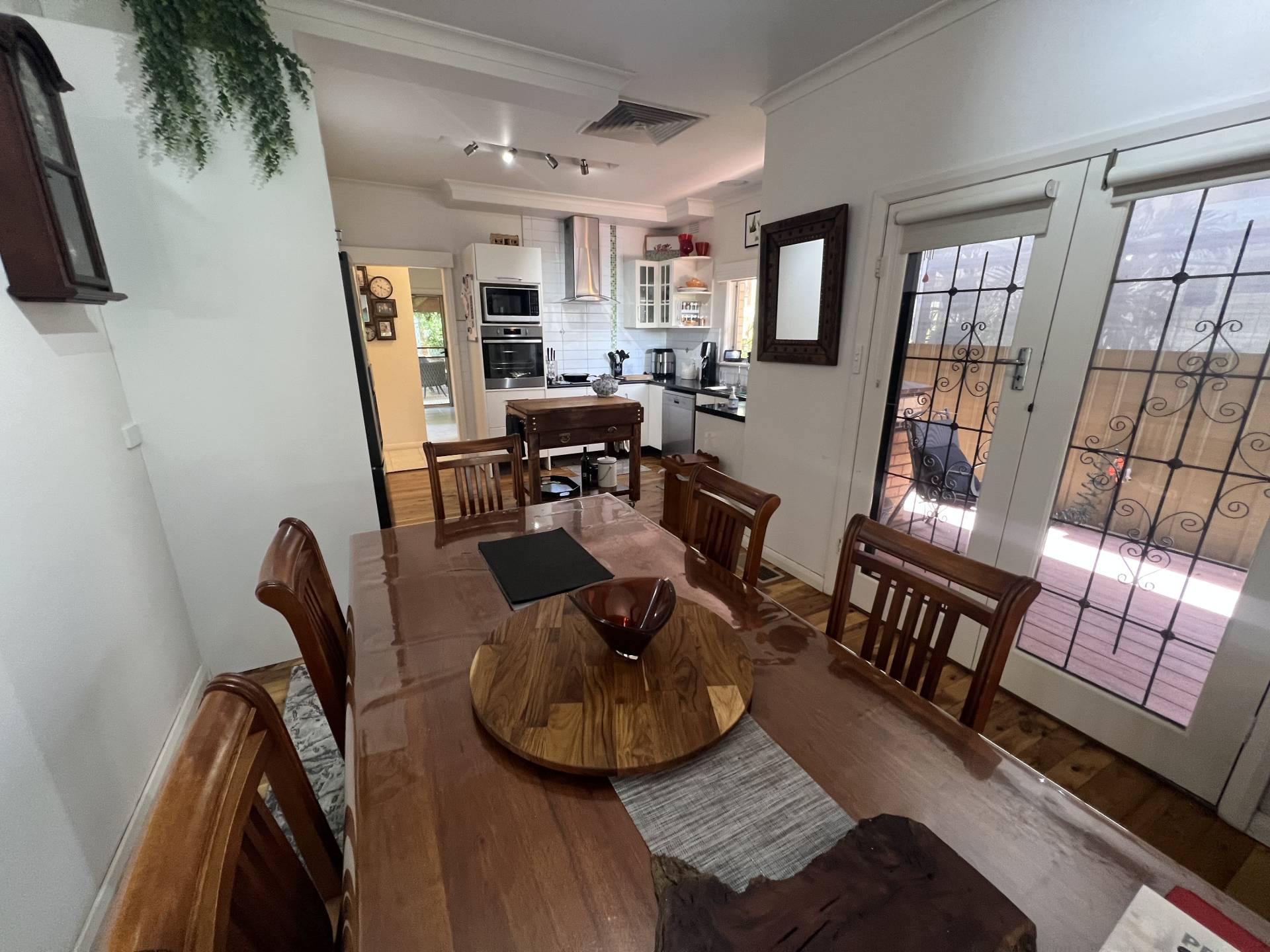 Kitchen with electric cooktop, oven and dishwasher. Meal's area with sliding door to paved patio, and separate lounge with polished Murray Pine timber floors and a feature fire surround. Large renovated bathroom with shower, bath, toilet and vanity. Second toilet, walk-in linen cupboard and generous bedrooms, all with built-in robes. Nine foot ceilings, ducted evaporative cooling and ducted gas heating throughout.