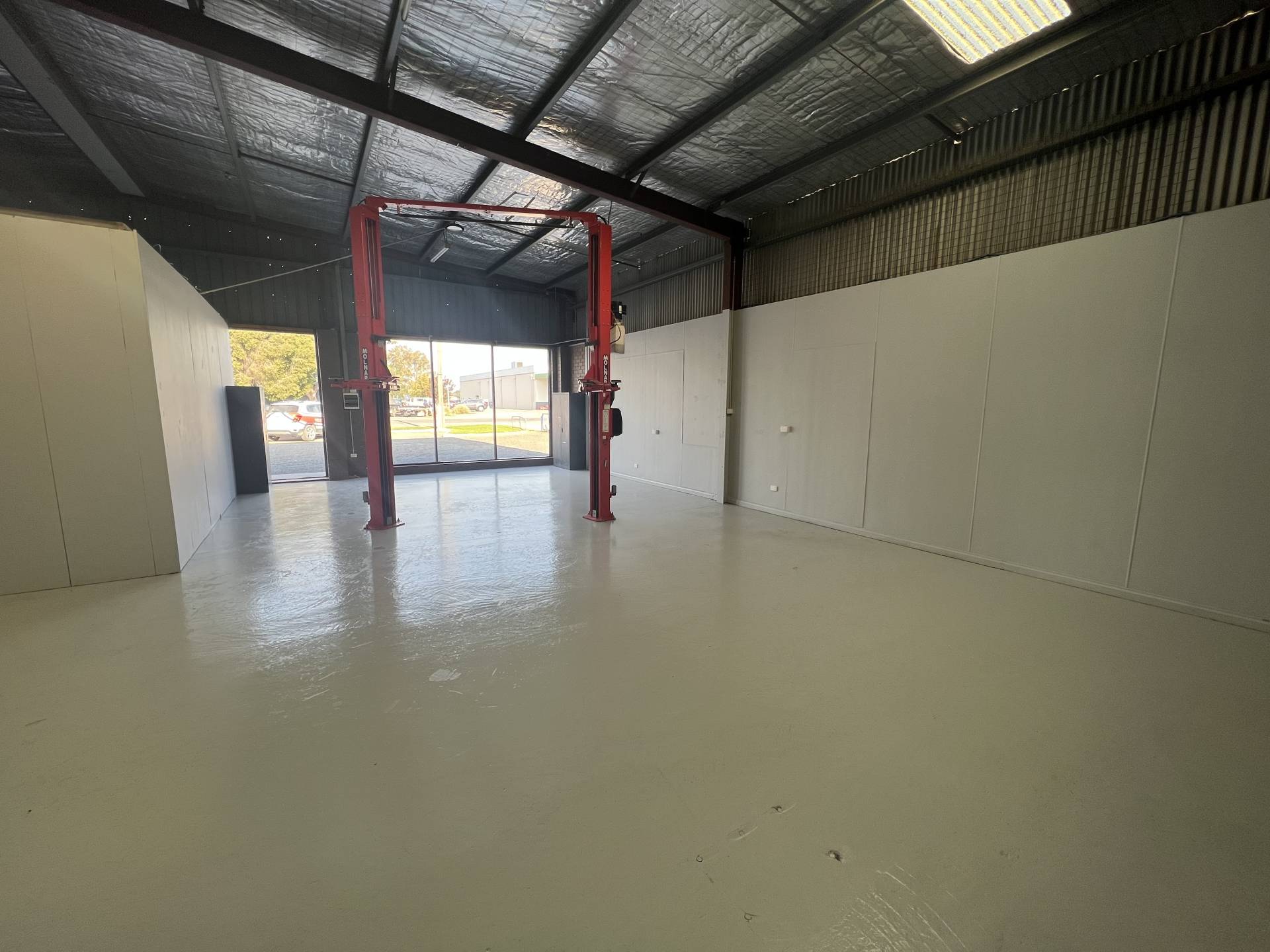 Approx 16m x 15m (240sqm) brick building with shop front layout, office, toilets and tearoom. 3 phase power available, high roller door access and concrete floor.