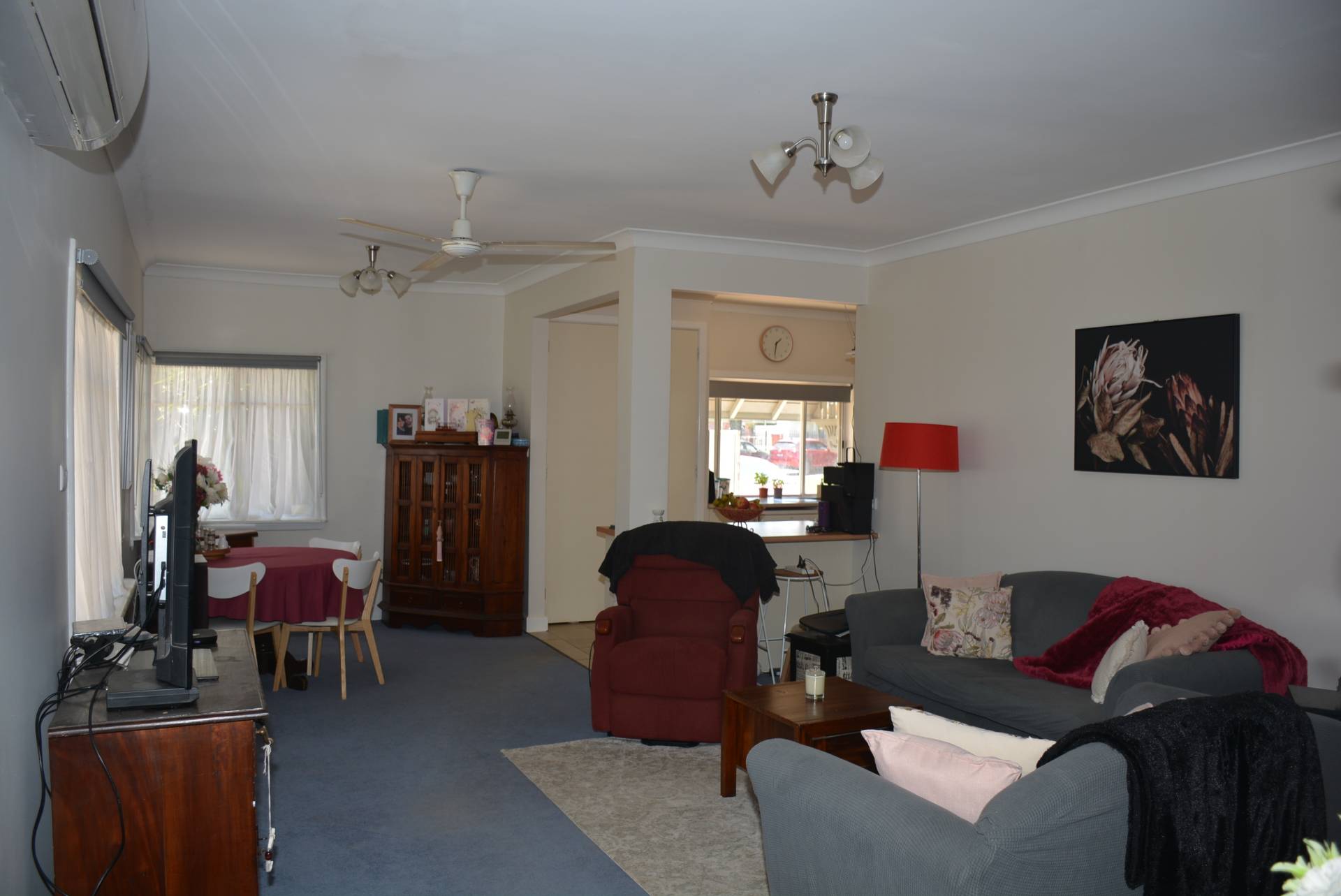 Has a front porch, covered outdoor entertaining area, 2 garden sheds & rain-water tank. Well fenced yard with off street parking for 2 vehicles.