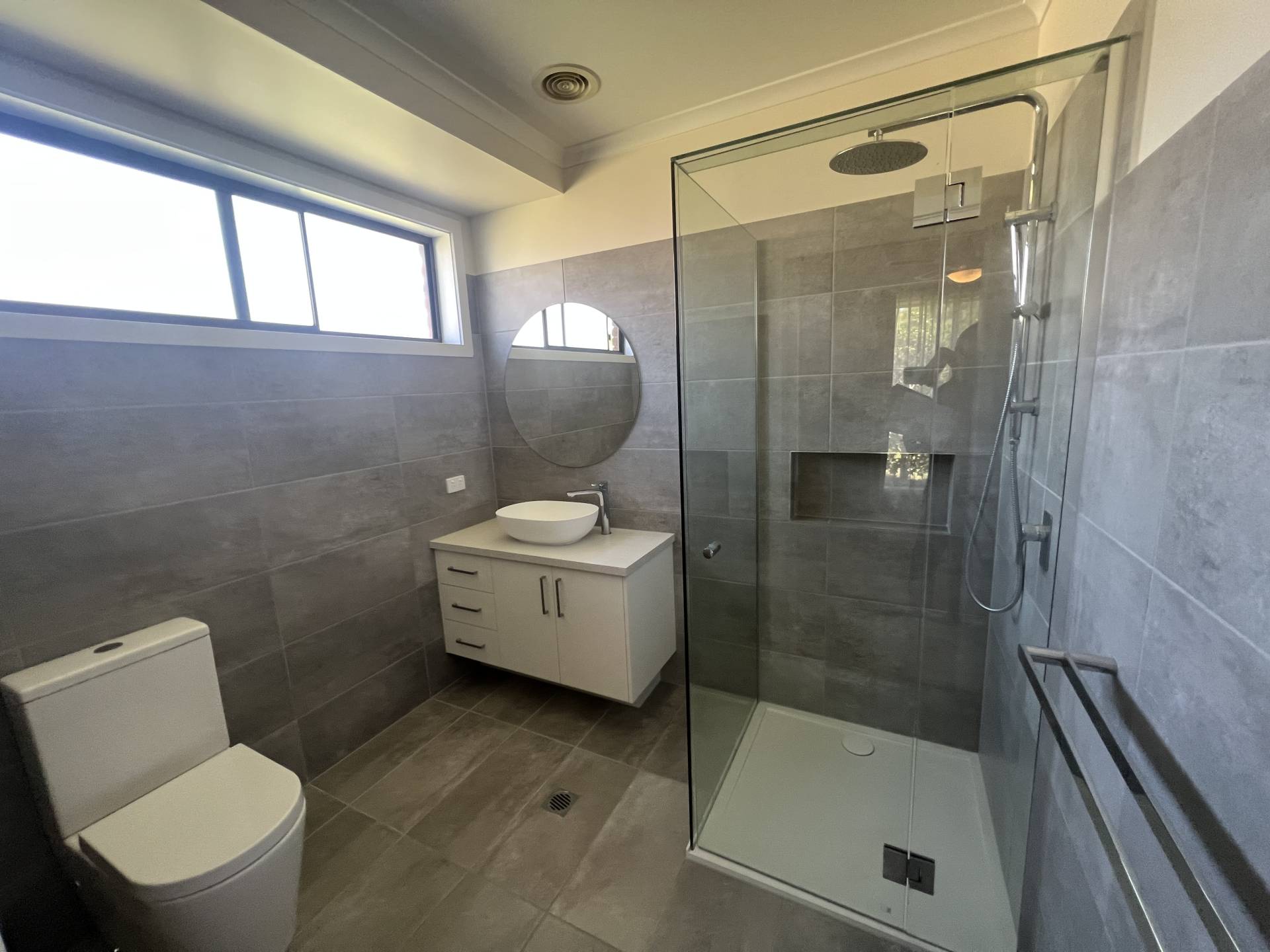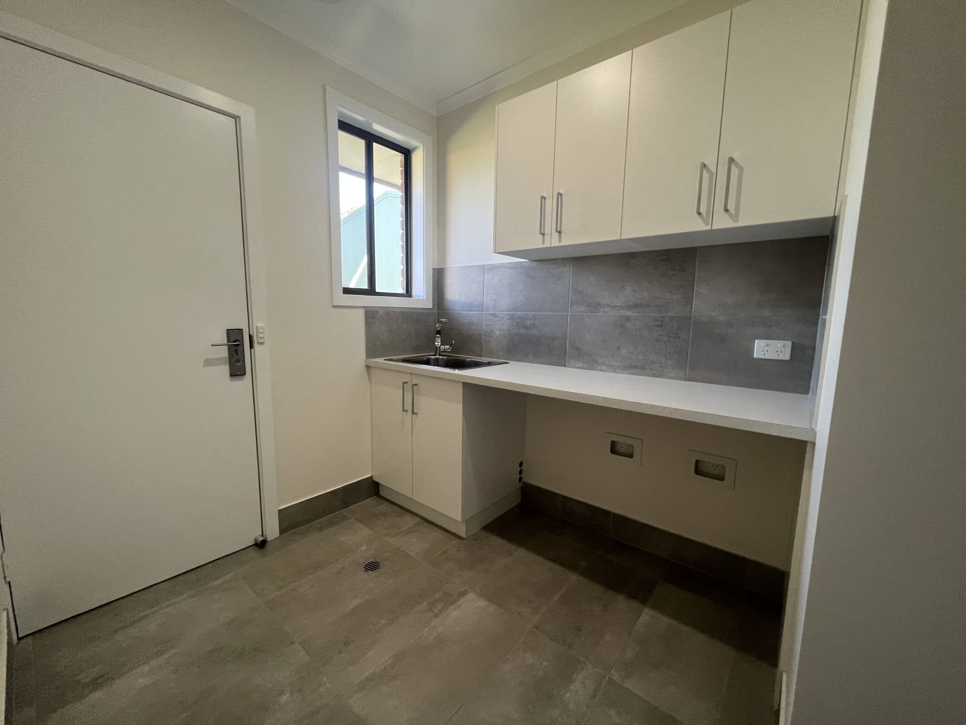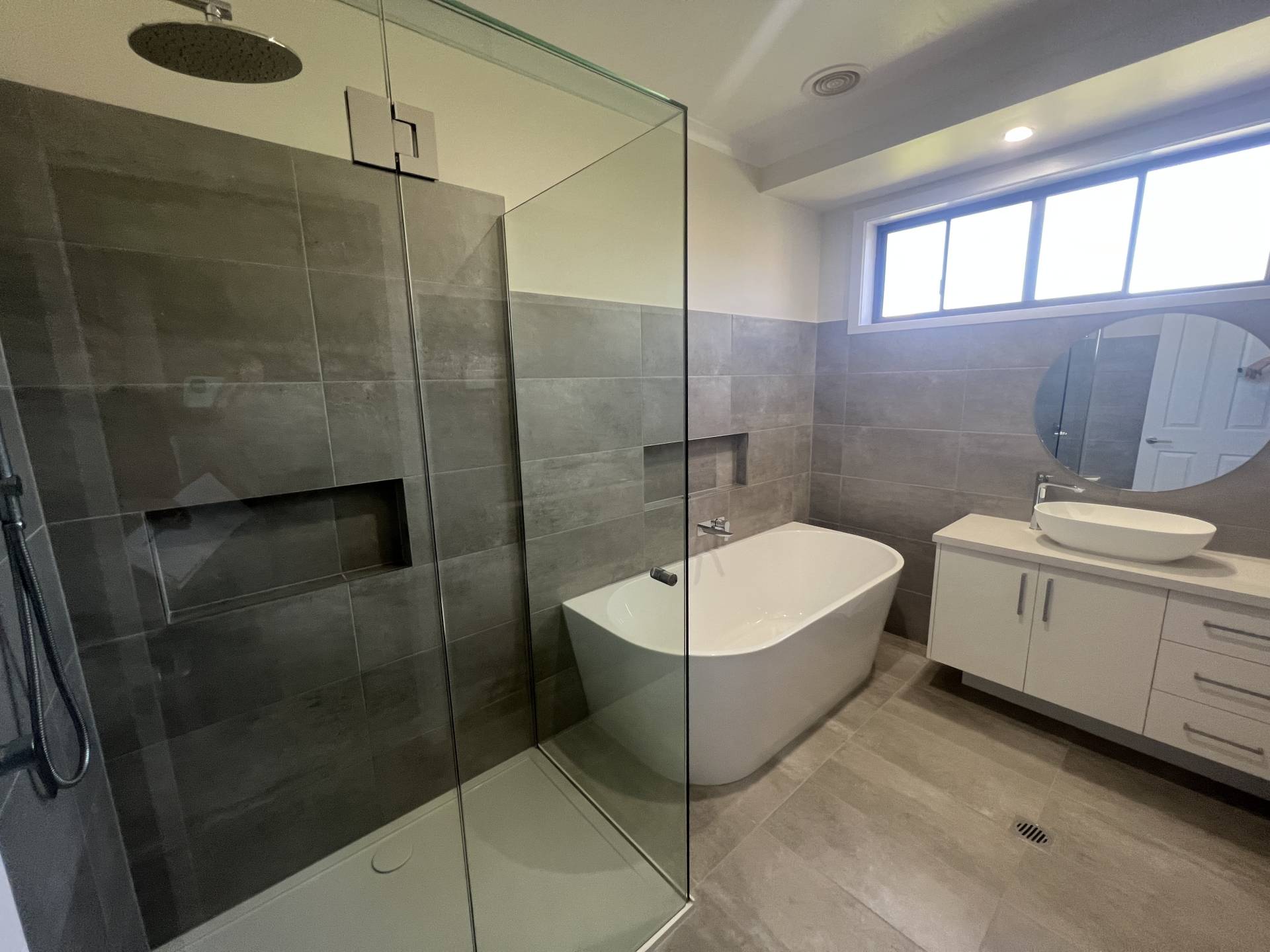 Main bedroom with walk in robe with dual entry into bedroom 2. Ensuite with shower, vanity and toilet. Bedroom 3 and 4 both have built in robes with hanging and shelving providing ample storage. All bedrooms are generously sized, with carpet, blinds, ceiling fans, heating and cooling. Great size laundry with ample of storage and rear access door. Stunning main bathroom with separate modern bath, shower and vanity with stylish tiles. Separate toilet.