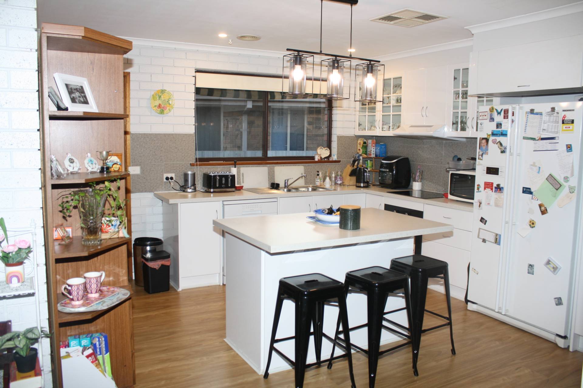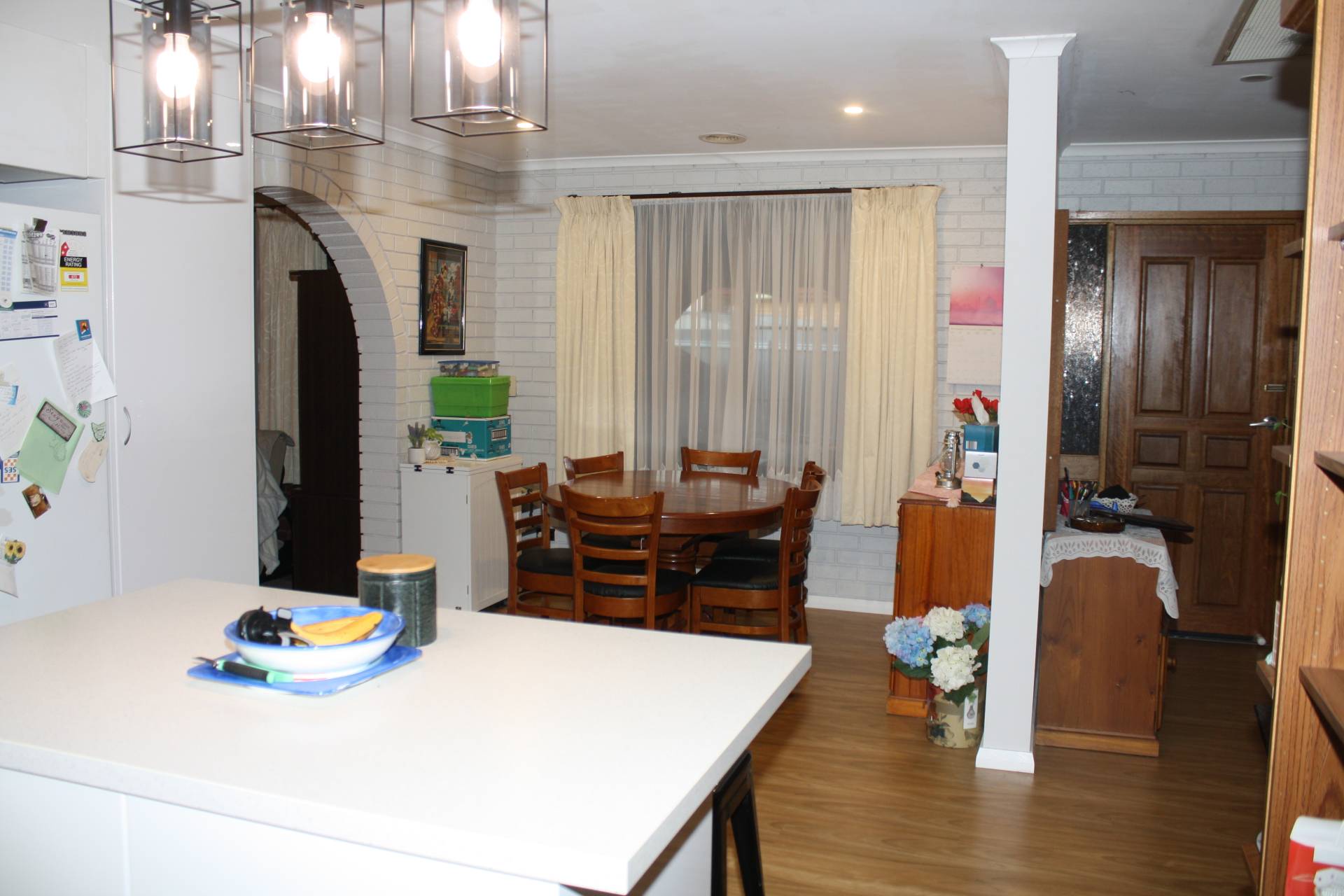 Renovated kitchen with under bench electric oven, easy to clean ceramic cooktop, double stainless steel sink, dishwasher, provision for a large fridge, pantry and island/breakfast bench with timber look vinyl flooring throughout. Separate dining area, large sunken lounge with exposed brick walls and feature brick hearth/mantle with gas heater.