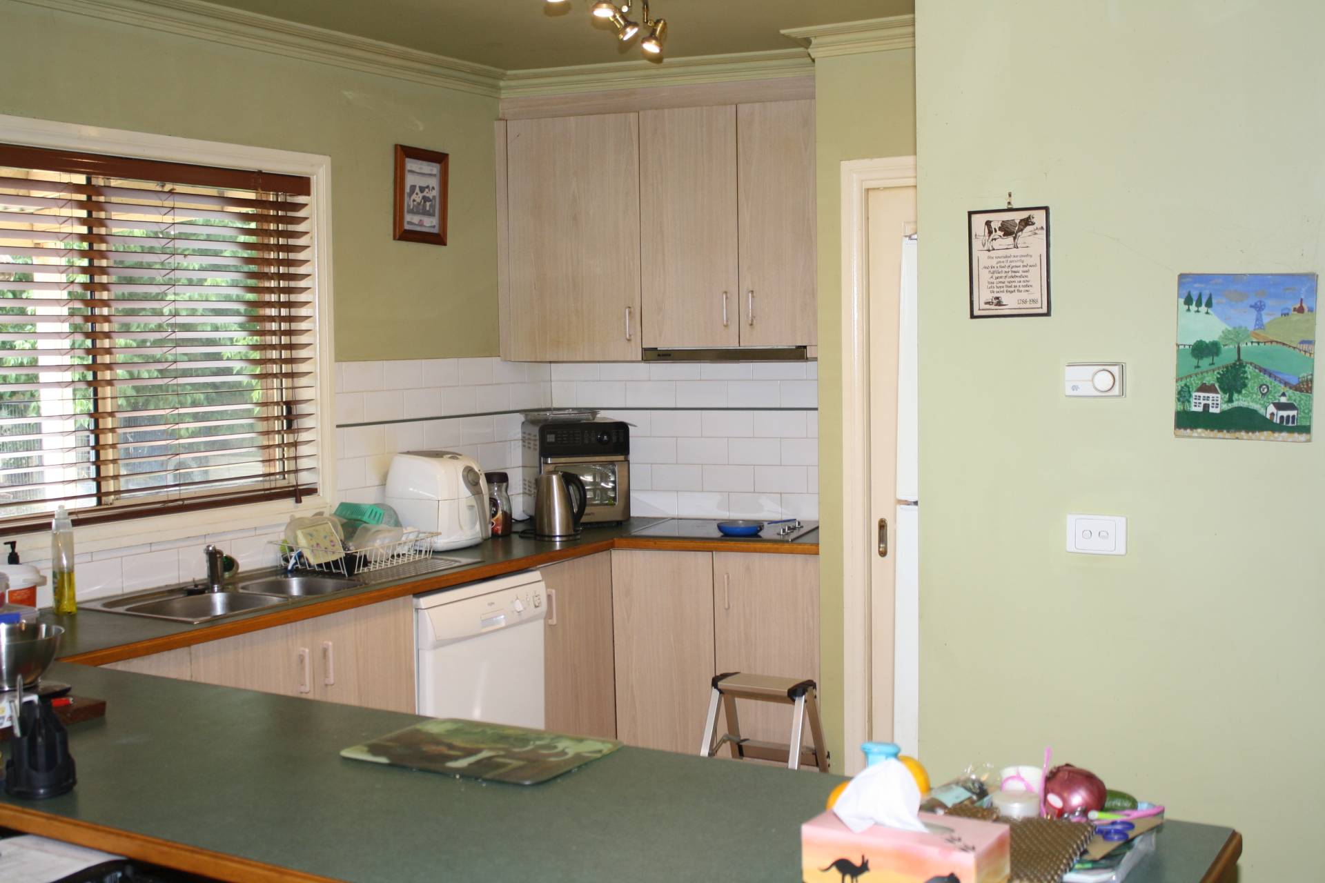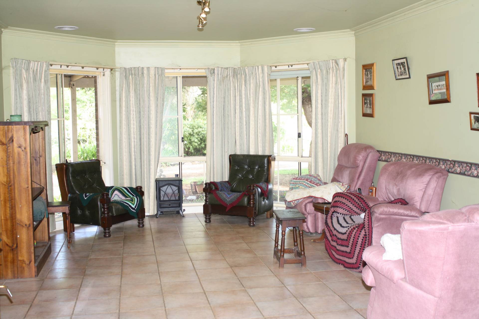 The residence offers two expansive living areas, a generous double garage with house access, good size kitchen  with walk-in pantry, and the comfort of ducted heating and cooling; complemented by a wood heater. The interior is tiled throughout. Large verandah across the front of the home and a concreted alfresco area perfect for enjoying the surrounding tranquility. Outside there's a 3m x 5.5m shed for additional storage, two paddocks for animals—all without any nearby neighbours.