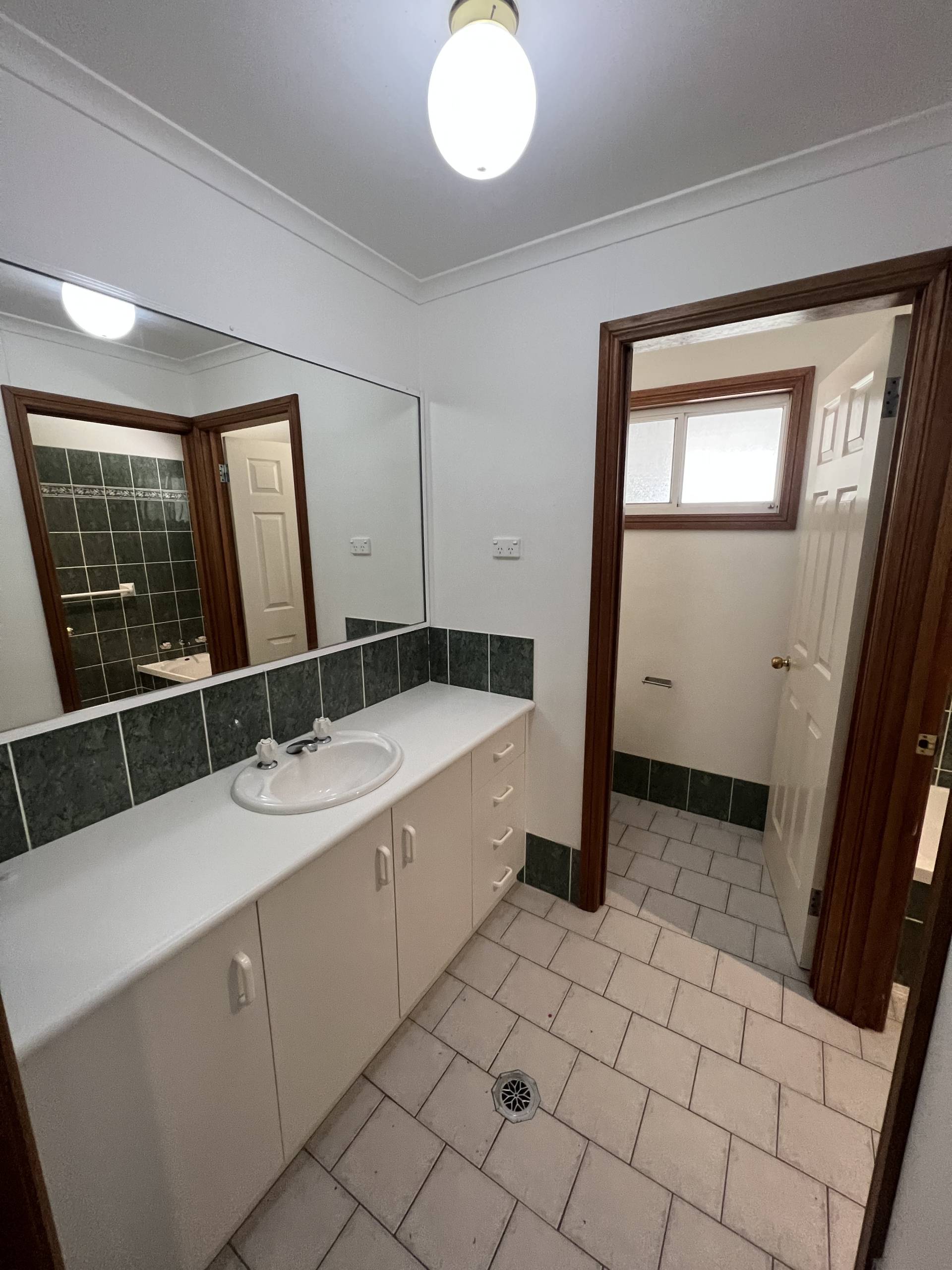 ~Main bathroom with powder room vanity, shower and bathroom room, separate toilet.