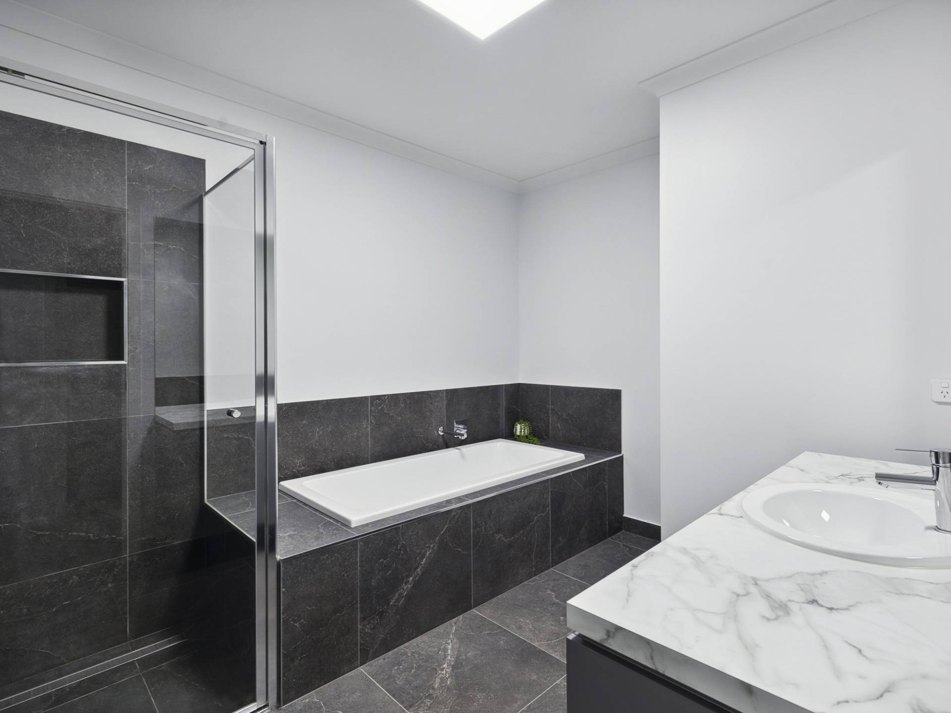 The heart of the home is the open-plan living and dining area, featuring a stunning kitchen with a 900mm gas cooktop and oven, an impressive butler's pantry complete with dishwasher and additional sink. A separate family room, which can be enclosed for a home theatre or kids’ playroom. The main bathroom is brightened by a skylight, and includes a shower, large bath, and vanity, with an additional powder room offering a second toilet and sink.