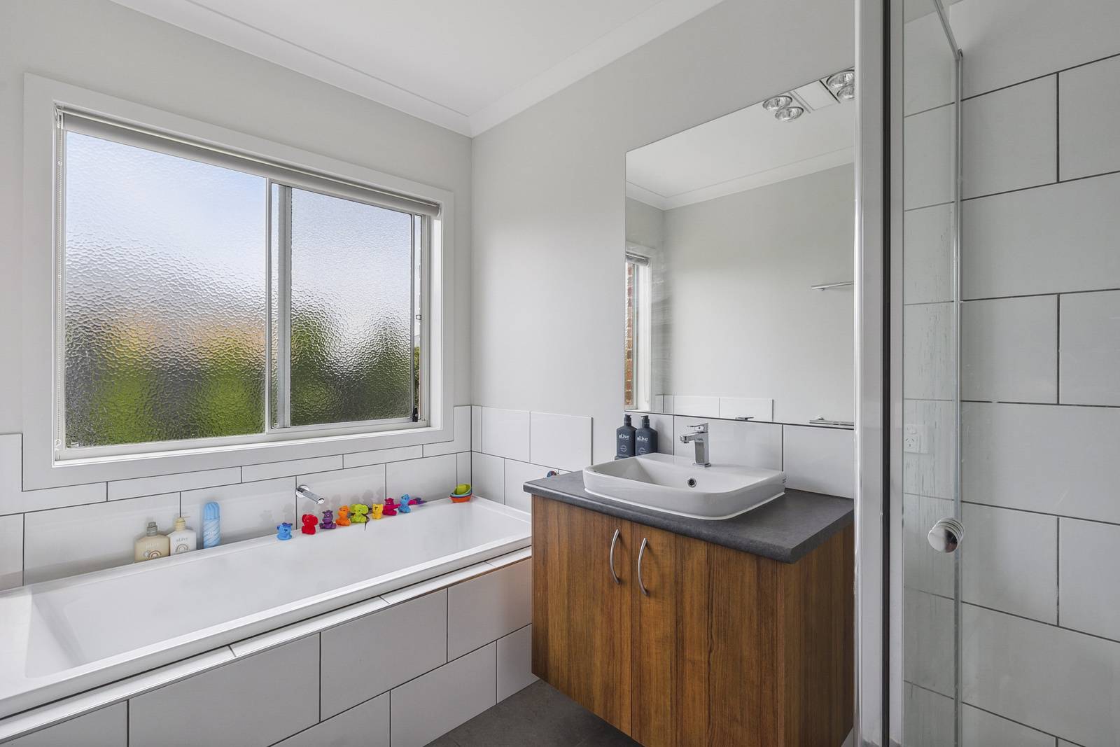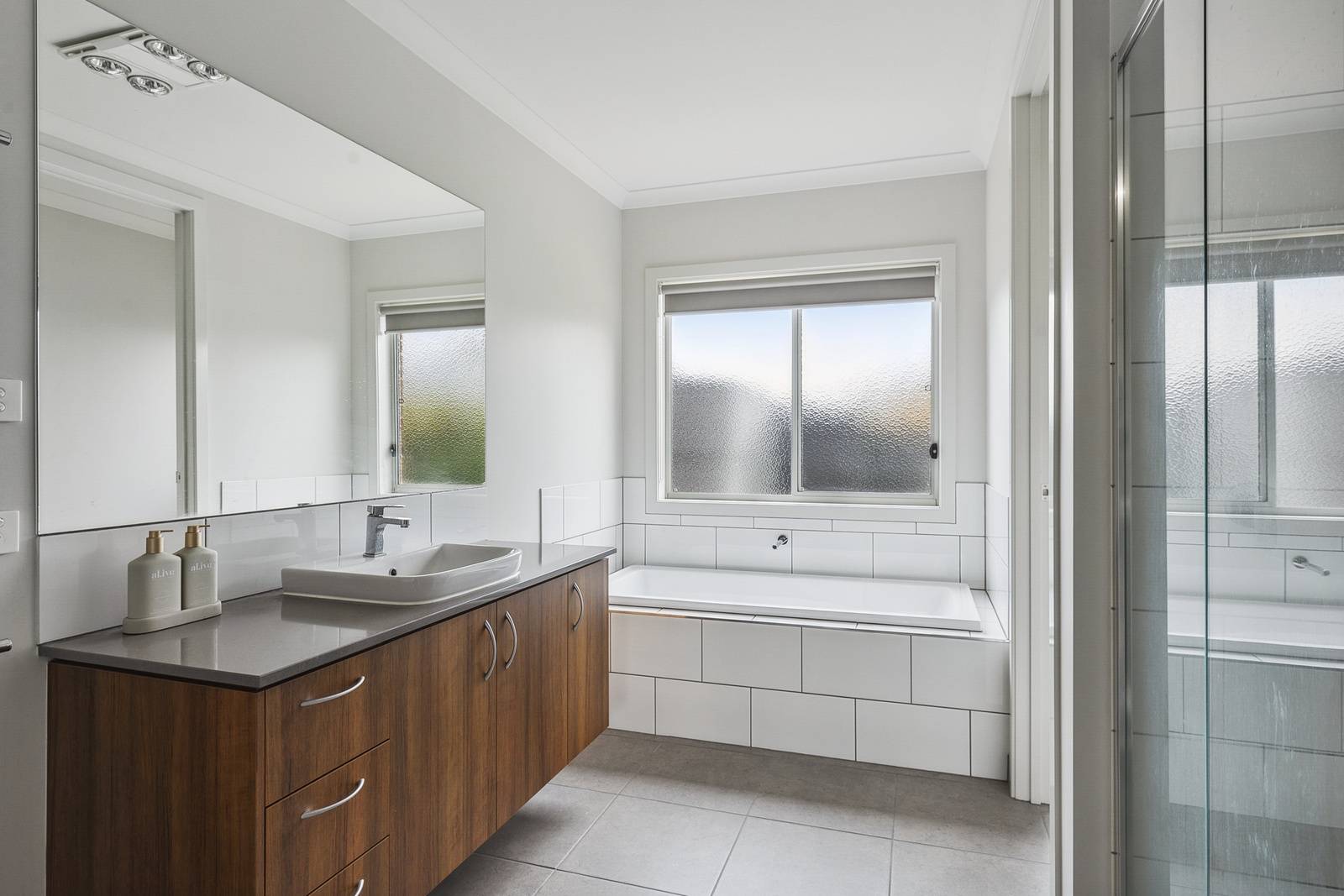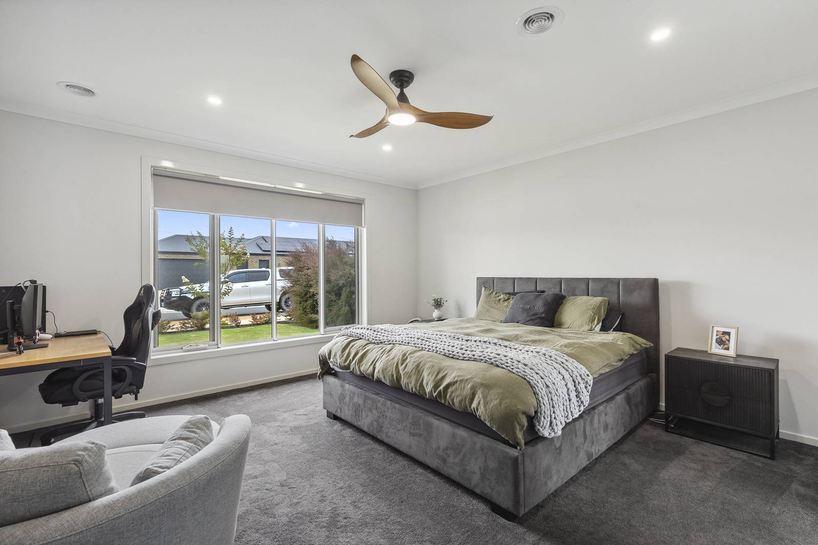 The main bedroom is a true retreat, with a walk-in robe and a generous ensuite complete with stone benchtops, a large shower, a second bath, and a separate toilet. All bedrooms are fitted with upgraded walk-in robes, ceiling fans, and the home is comfortably serviced by ducted gas heating and ducted evaporative cooling.