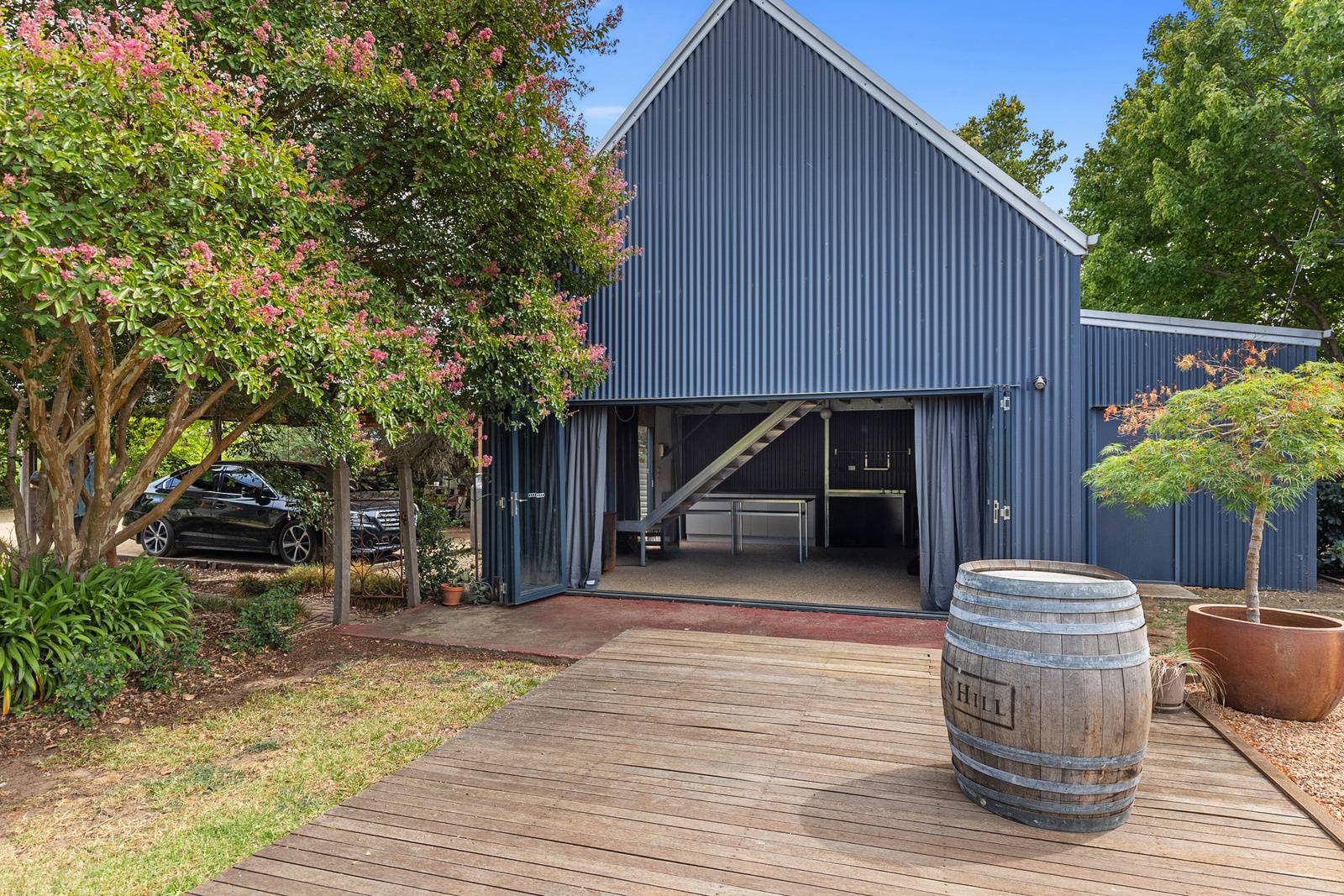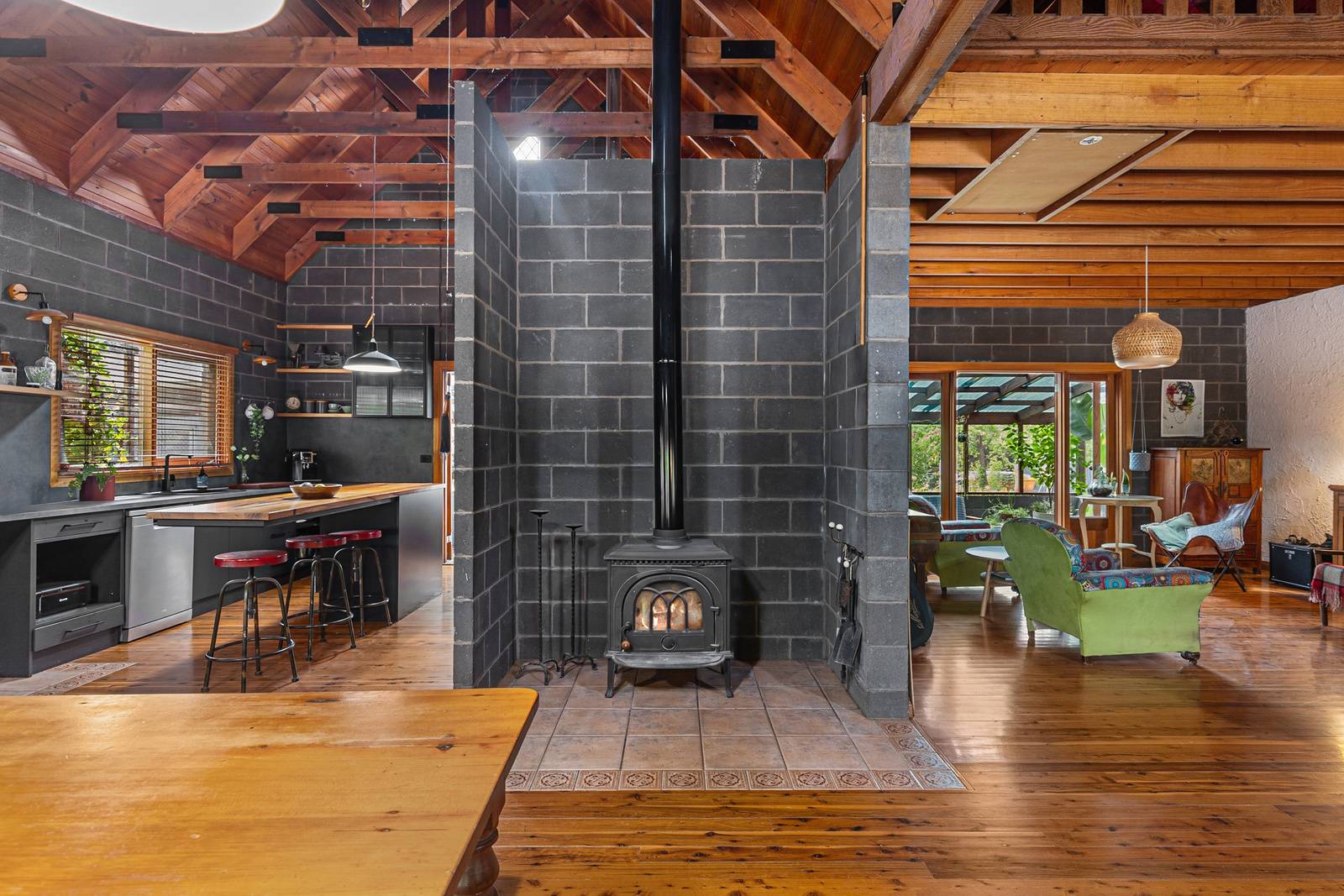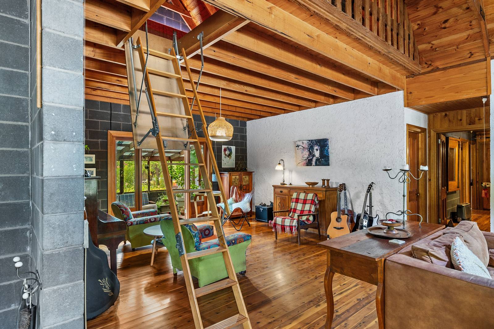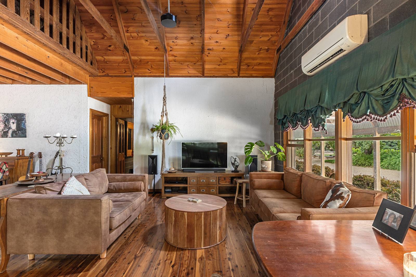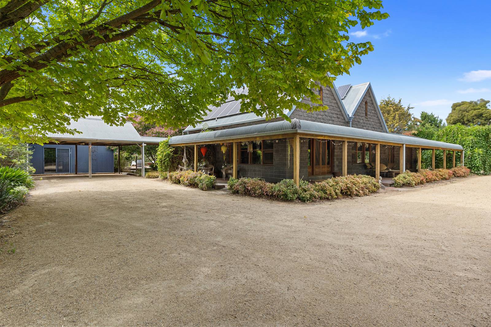 As you drive down the tree-lined driveway, the towering Elm trees create a serene, secluded atmosphere that welcomes you home. This home combines timeless craftsmanship with modern comforts. A 2.5m-wide bull nose veranda invites you to relax and take in the surroundings, while inside, soaring vaulted pine ceilings, exposed Oregon beams, and double hung gothic windows provide views of your private oasis.