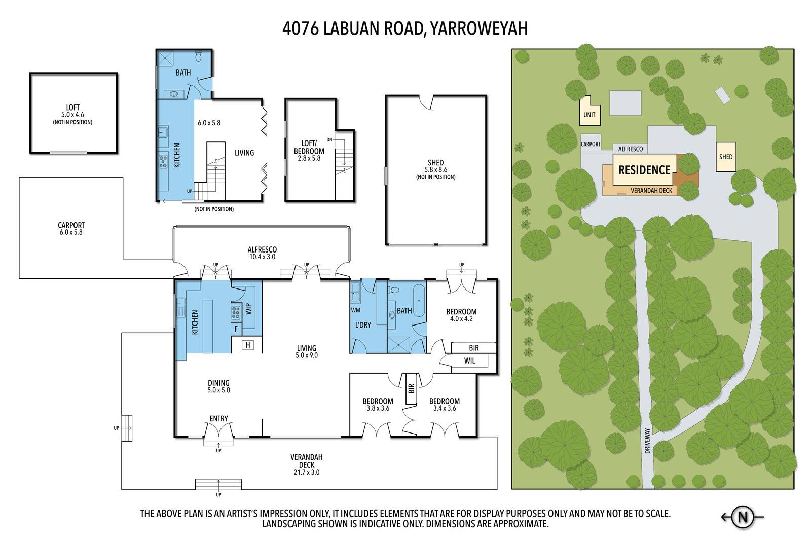 • A large 5x8.5m lock-up shed with a concrete floor for all your storage needs.