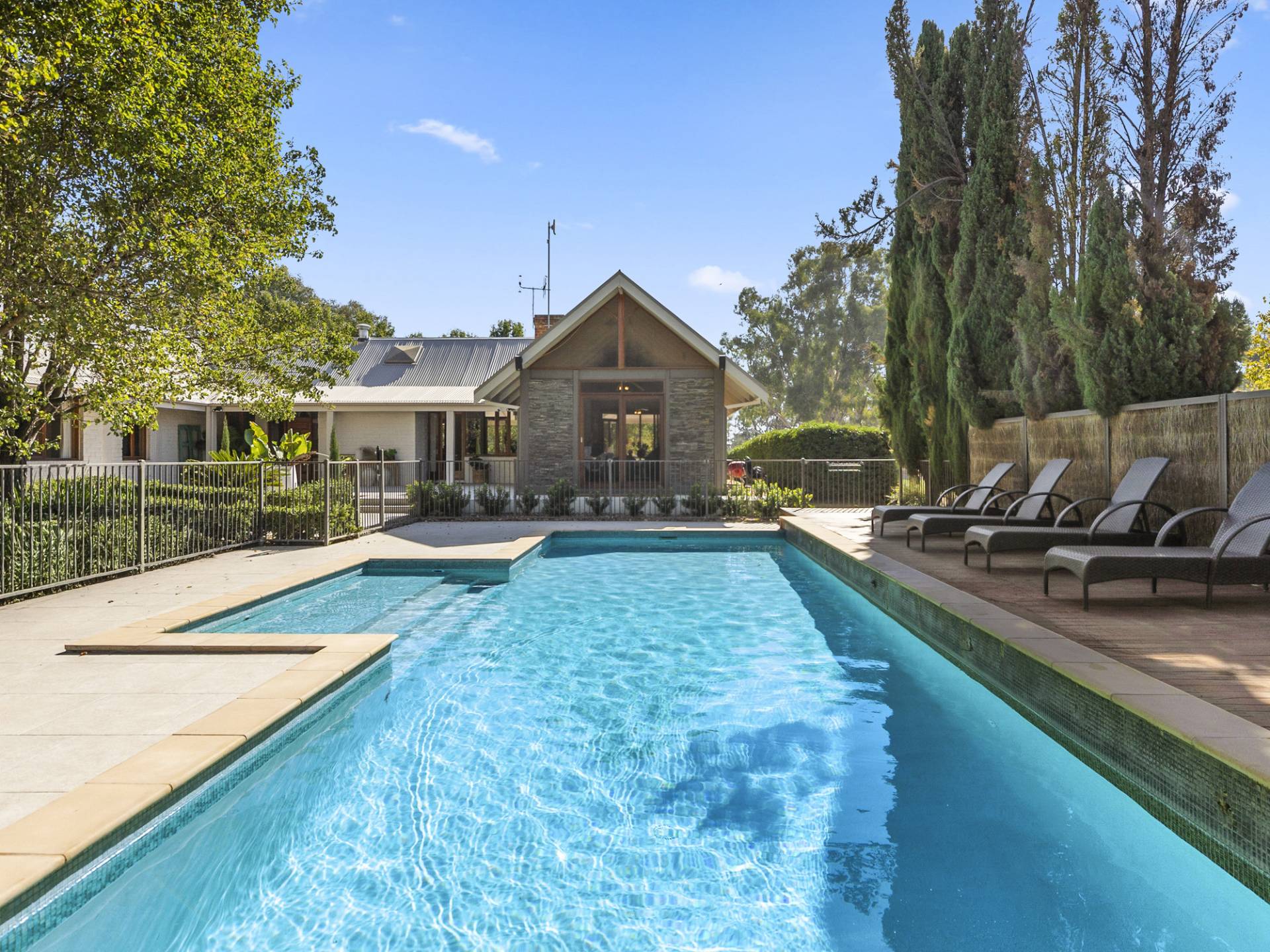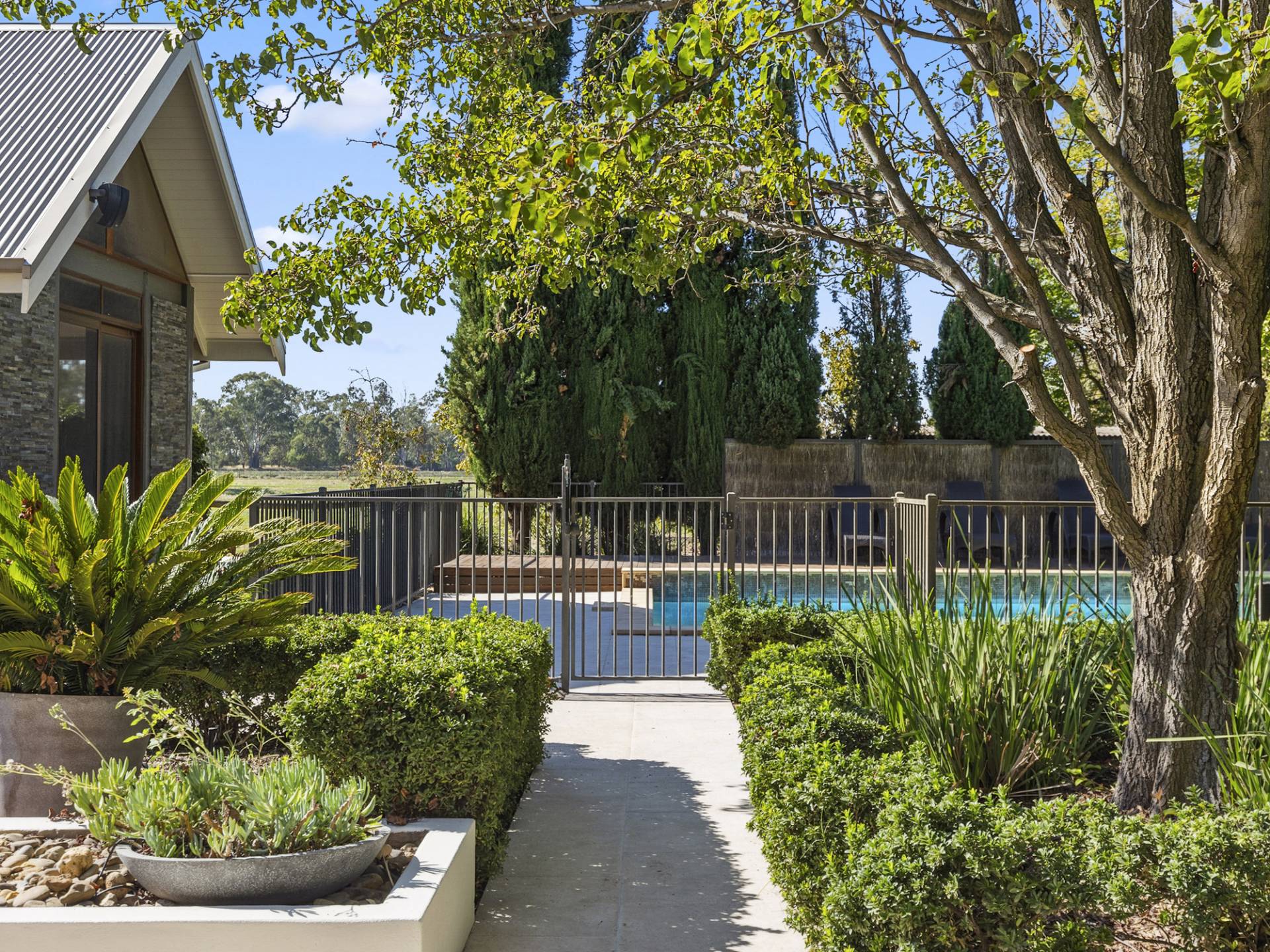 The front garden is smartly designed, separated by a hedge, creating a private oasis that screens off the rural surrounds. Manicured gardens, established trees, makes it the perfect place to relax and unwind.