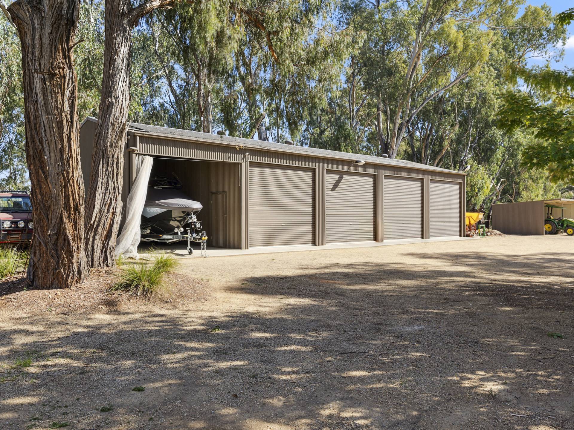 Shedding is generous, with a 20m x 7m shed complete with four high roller doors, concrete floor, power, and an insulated section. Perfect size for Caravans, Malibu’s and much more.  An additional 6m x 8.5m open shed provides a great space for stables or machinery. The paddocks are all well-fenced and with Murray River Red Gums, feature dam and one paddock set up for flood irrigation (approx. 2.05 hectares).
