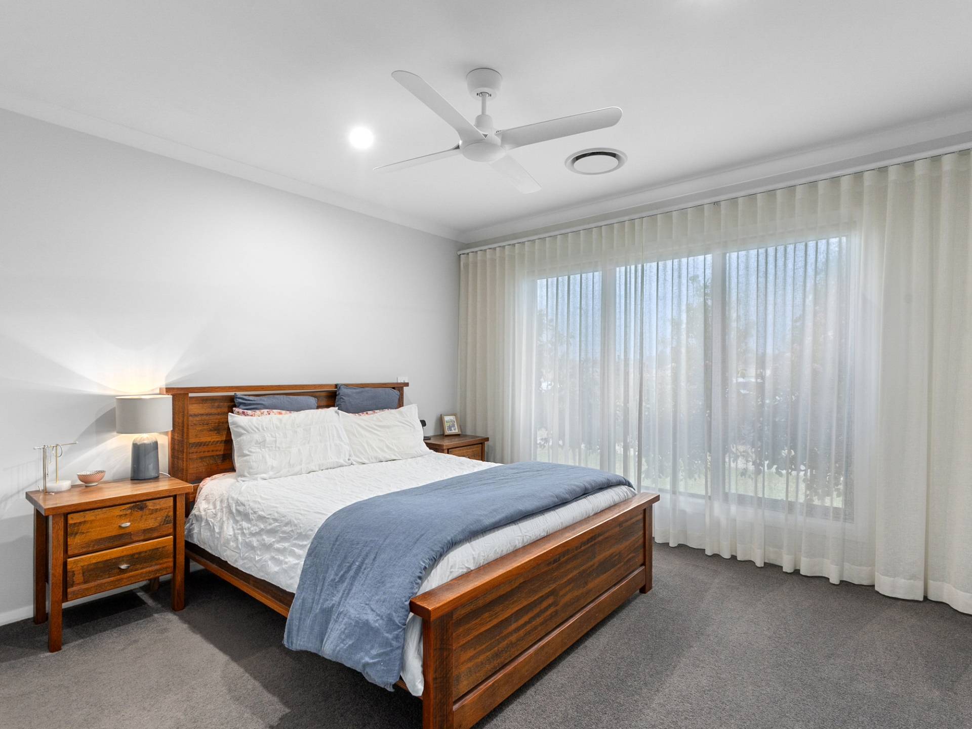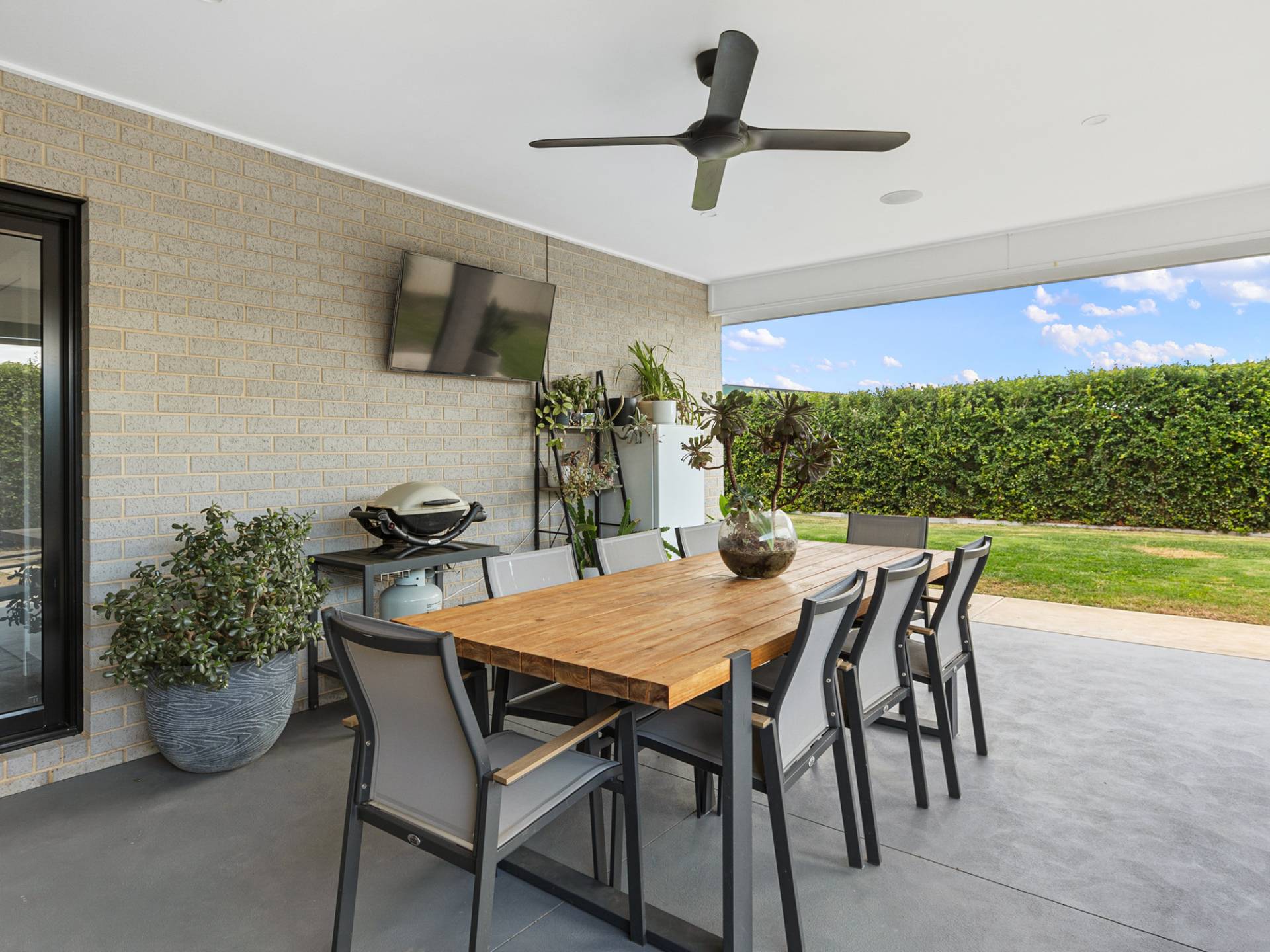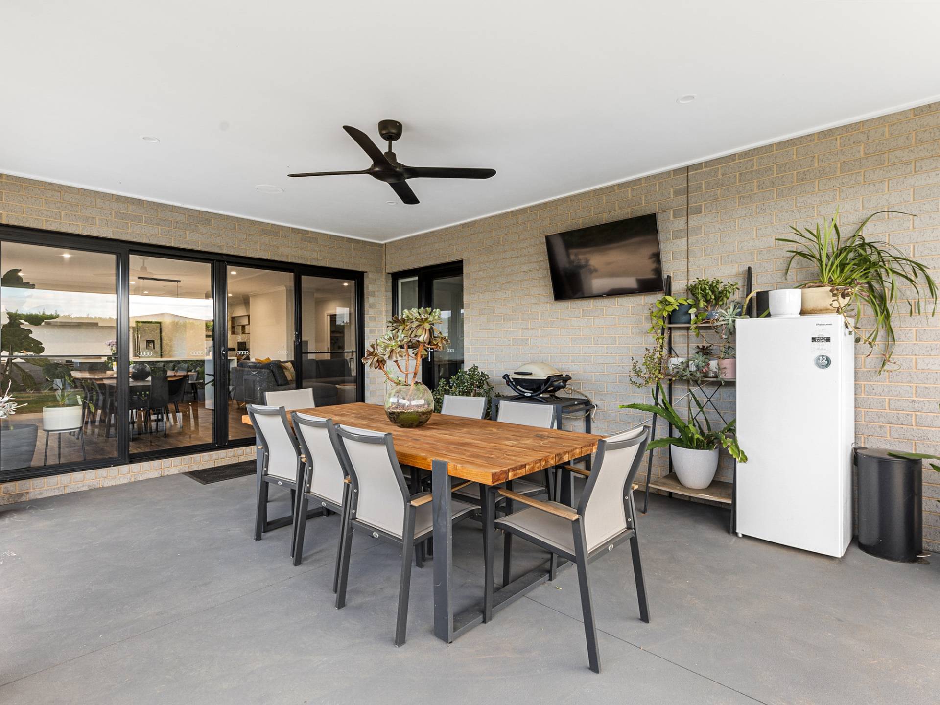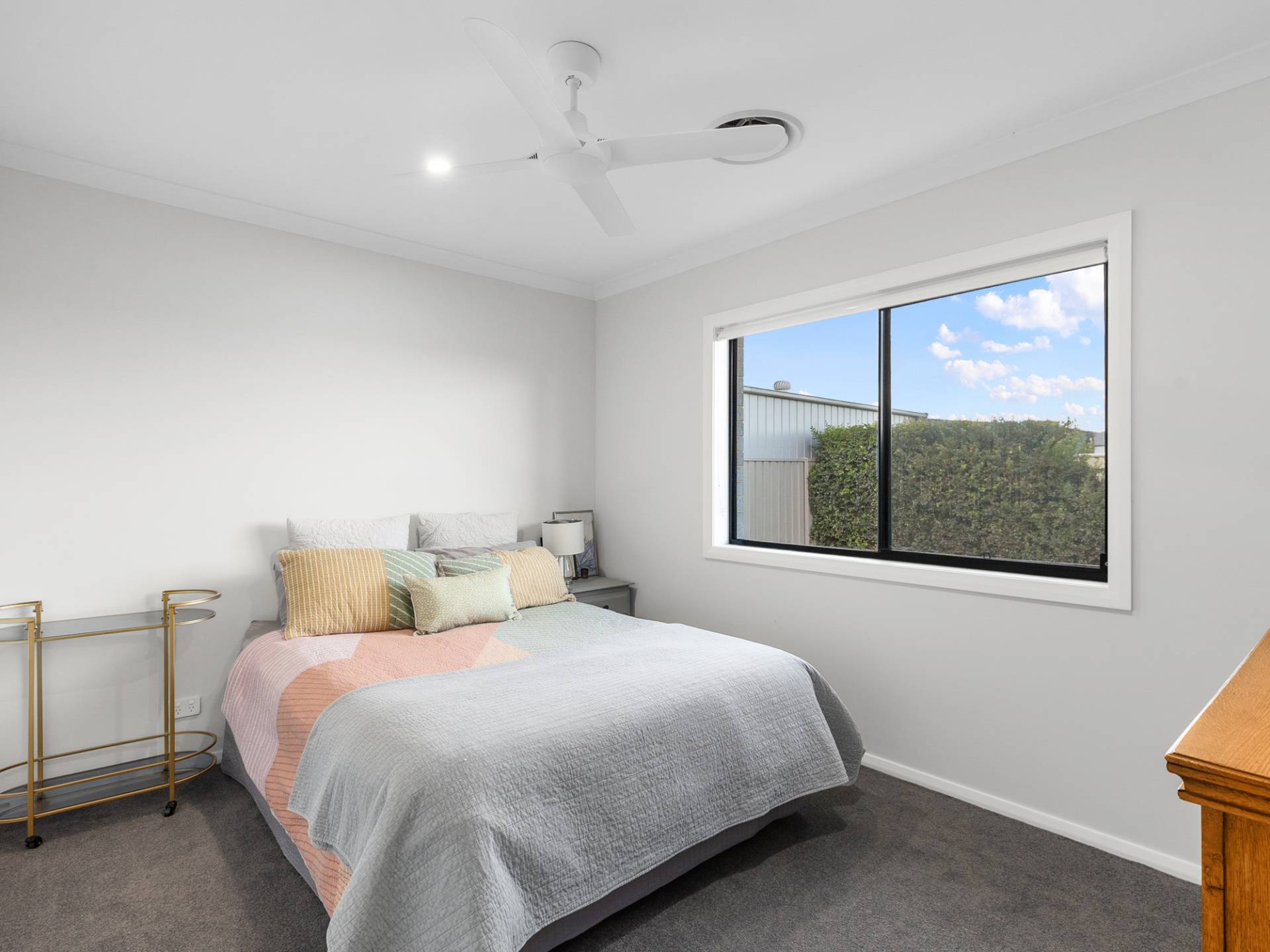 Step outside to the large alfresco area, fully fitted with ceiling fan, built in Bluetooth speakers, TV points, and electric blinds for year-round use. The fully secure yard includes side access for caravans or boats, and is maintained effortlessly with an automatic sprinkler system. Sustainable features such as solar panels and a 2,000-litre rainwater tank add value and peace of mind.