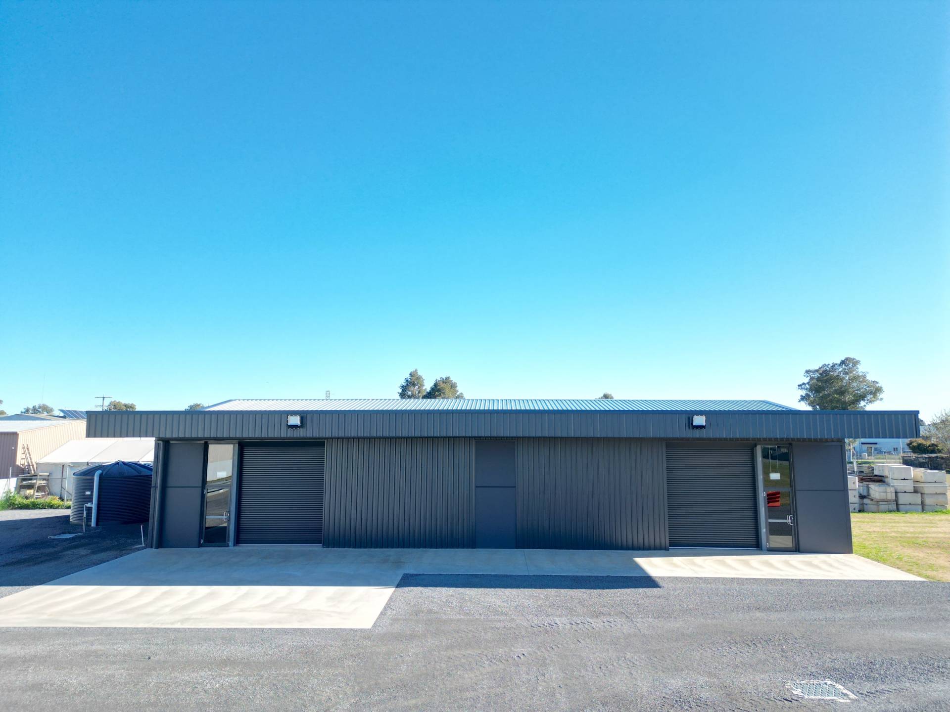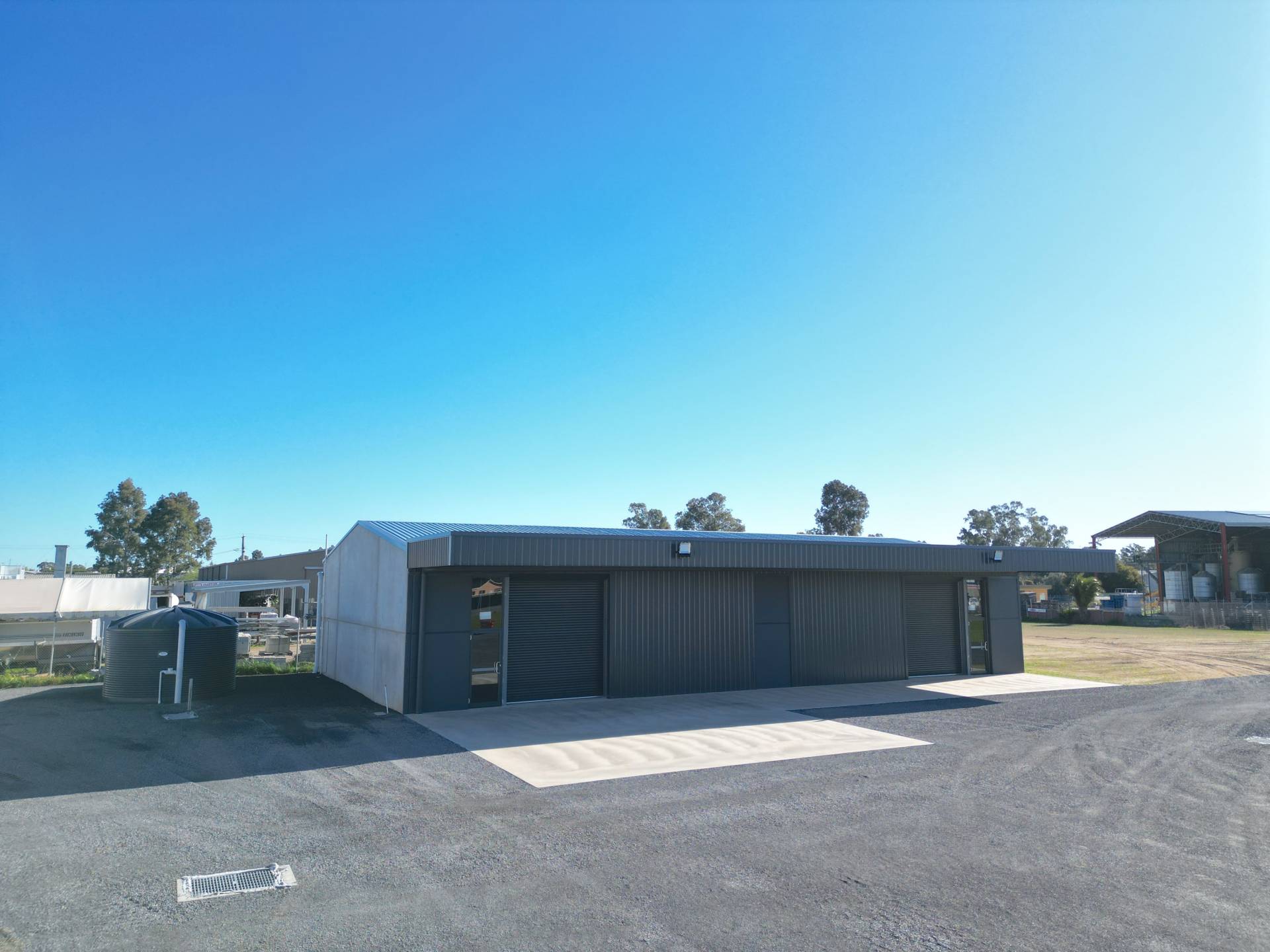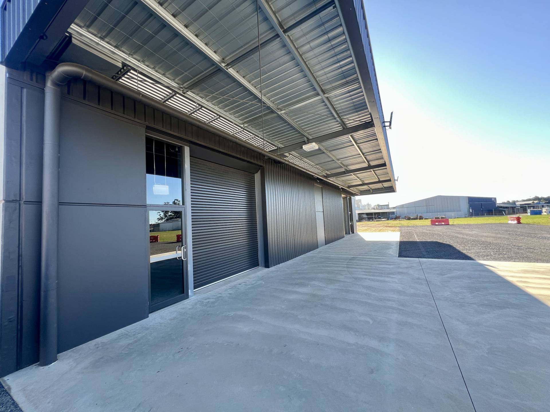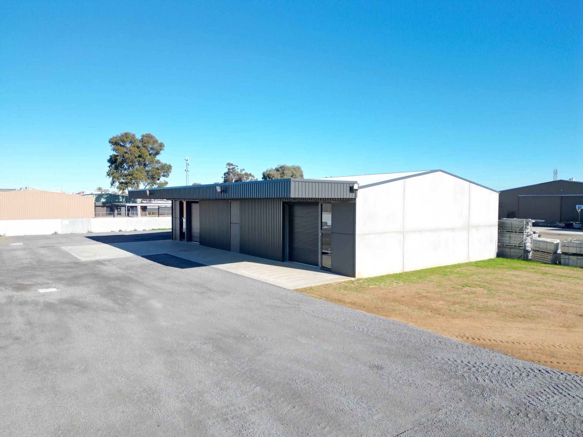 The site includes a brand-new high-clearance tilt panel warehouse spanning 312m² (approx. 24m x 13m), featuring two automatic roller doors and a disabled toilet, offering modern infrastructure ready for immediate use. New automatic security gates further enhance access and site security.