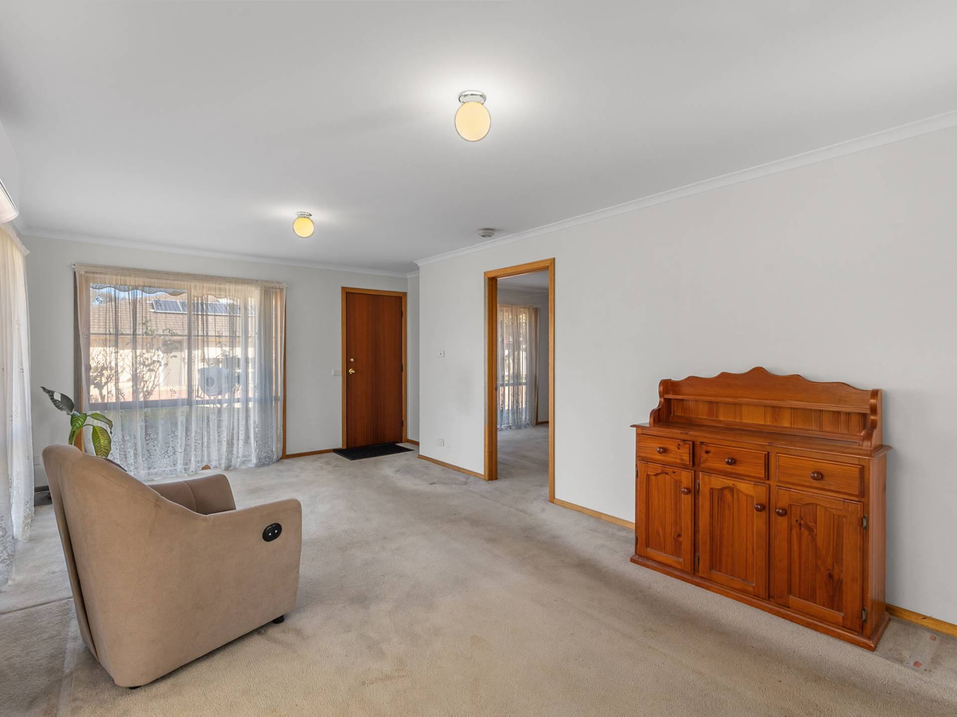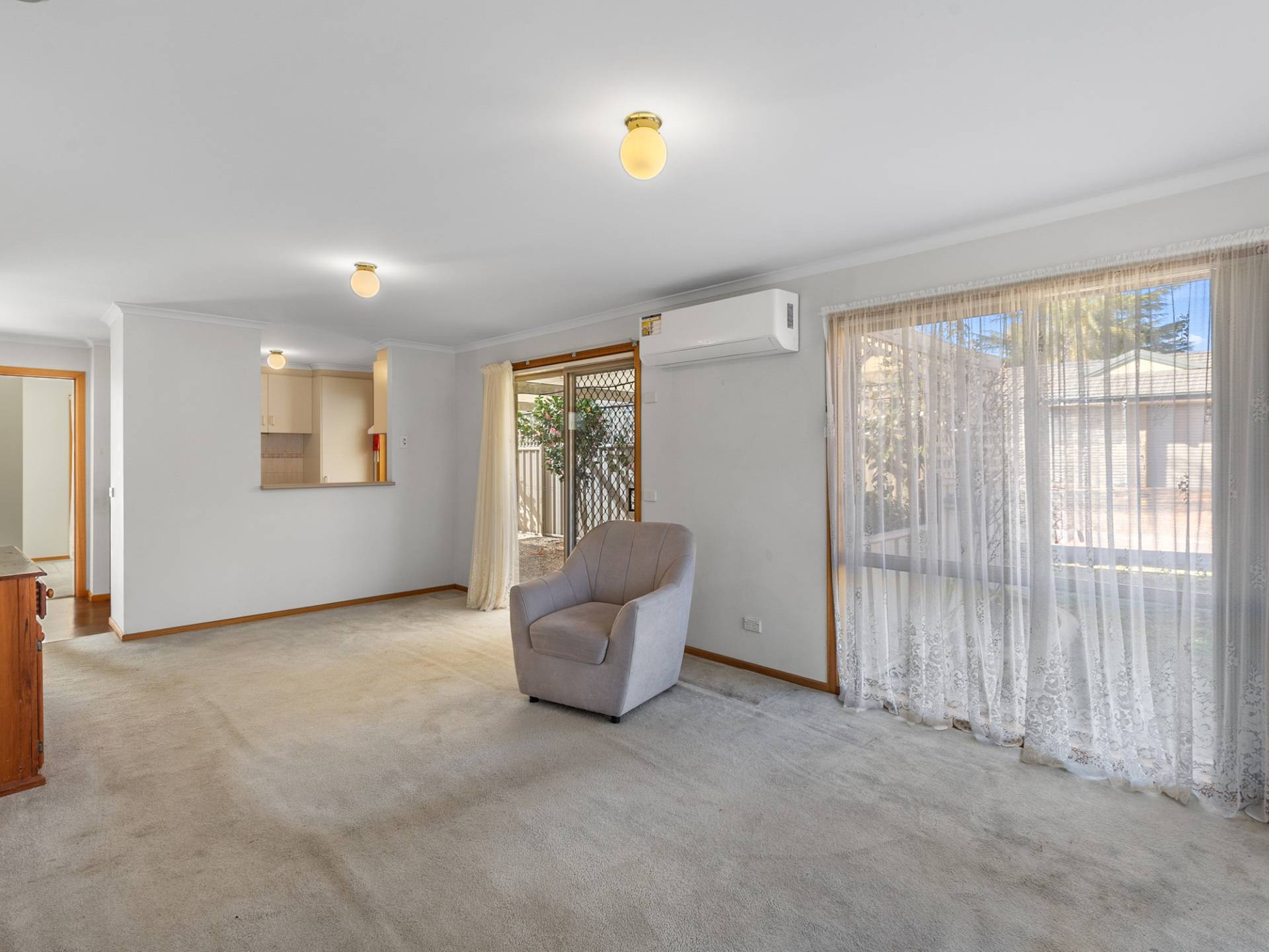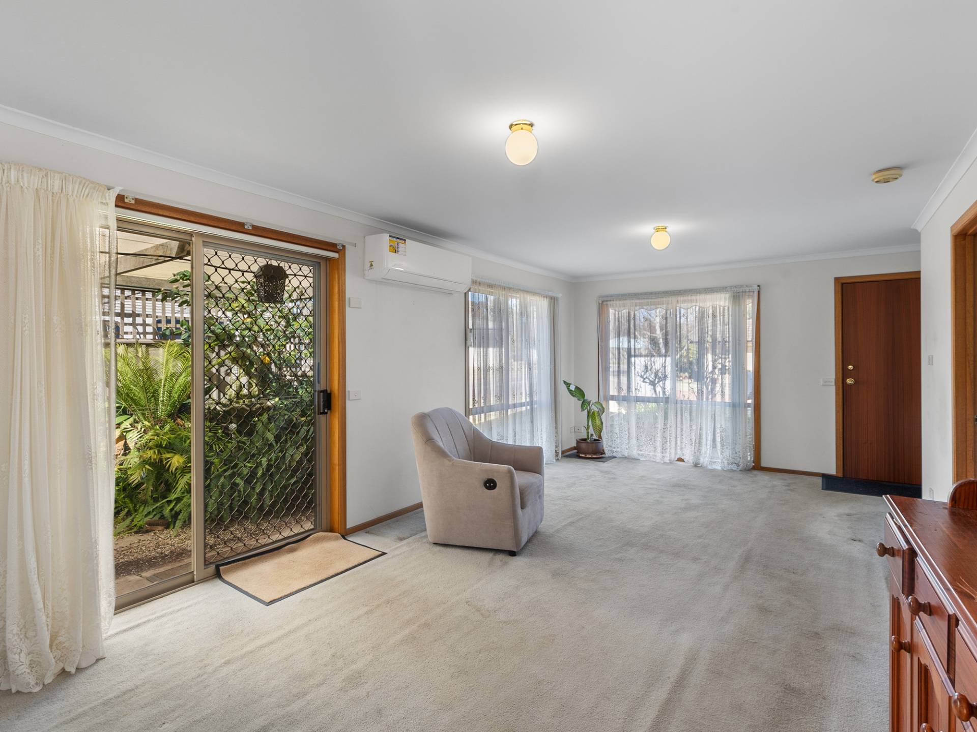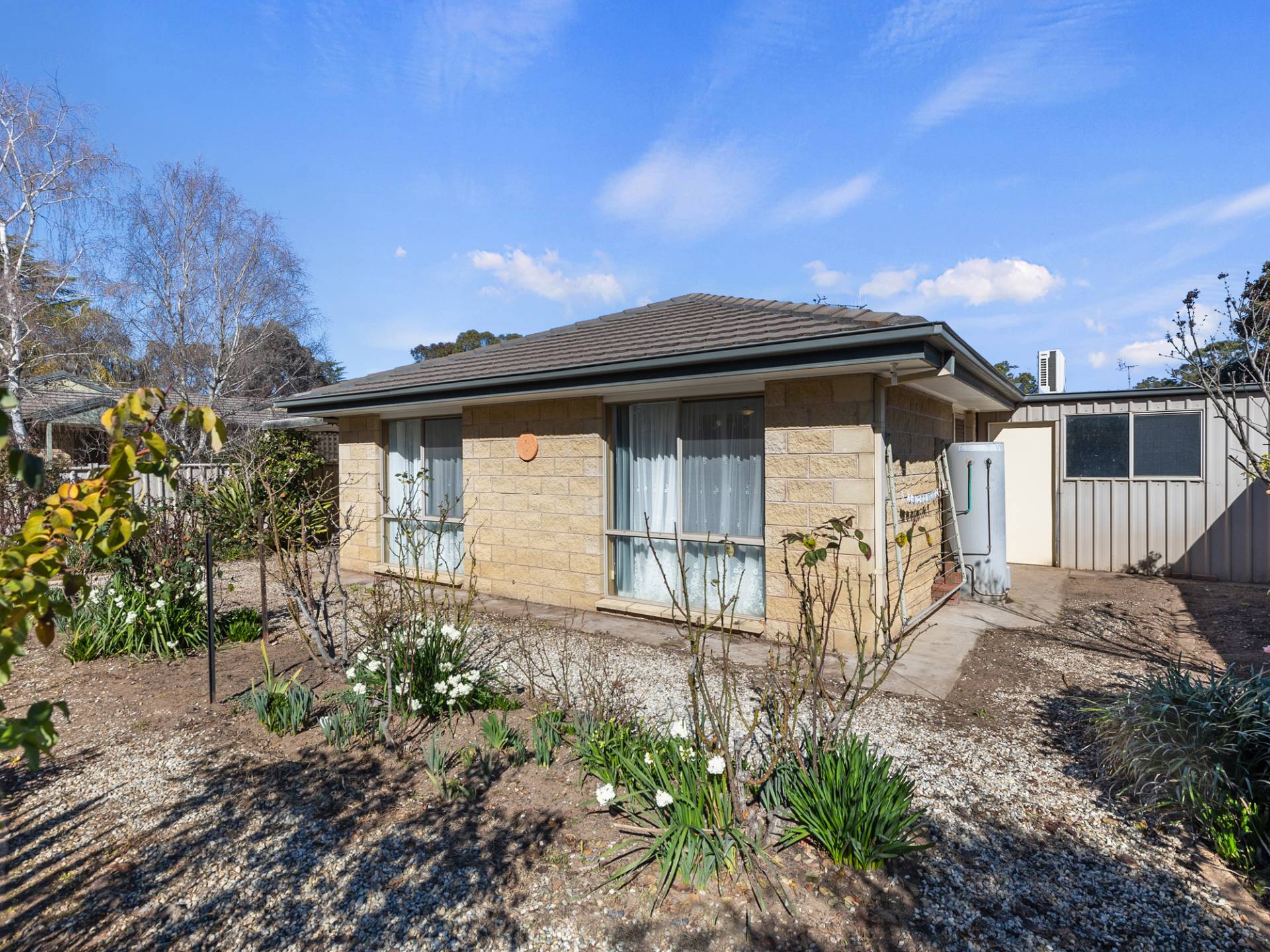 Inside, you’ll find a well-appointed kitchen and a light-filled lounge with a split system air conditioner, creating a comfortable space to relax year-round. The master bedroom features built-in robes and direct access to the main bathroom, complete with bath, shower and separate toilet. The remaining bedrooms are generously sized, with one also fitted with built-in robes.