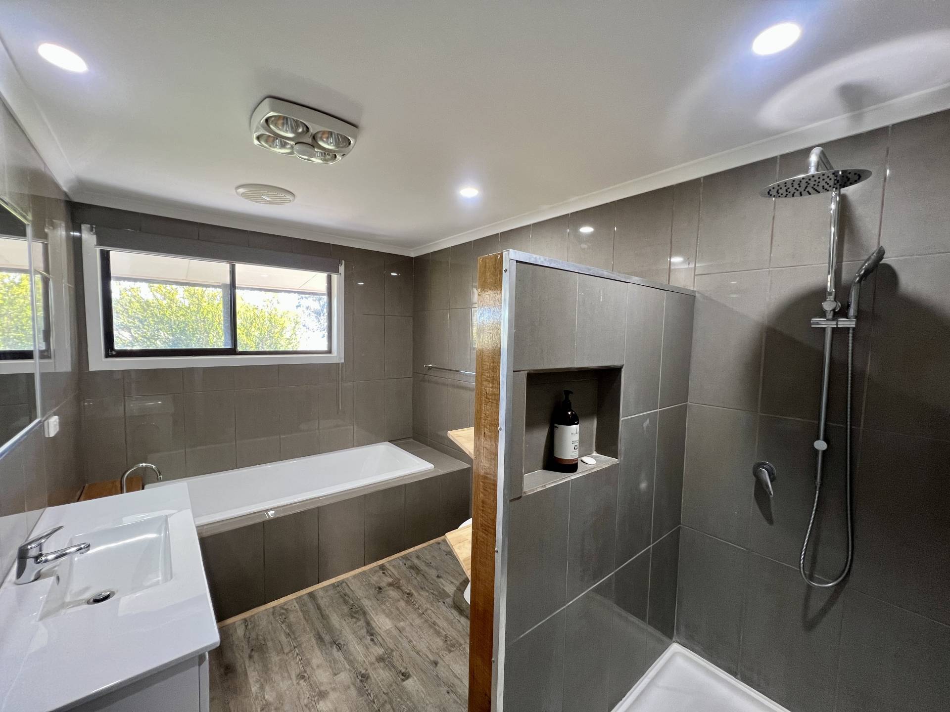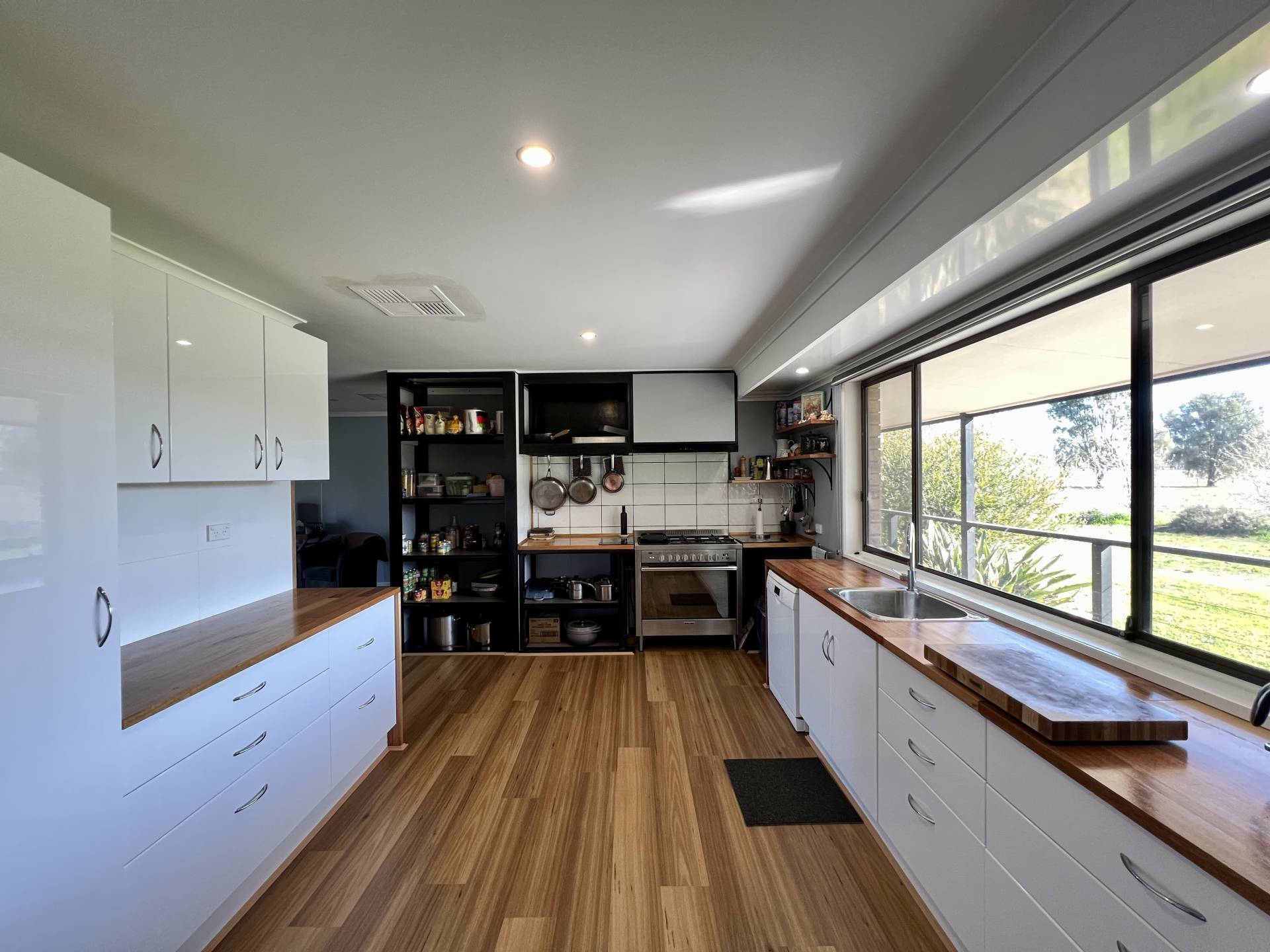 The home features a fully renovated kitchen with timber benchtops, a 900mm stove, ample storage and windows capturing sweeping rural views. The adjoining meals area flows into a cosy lounge with a solid-fuel heater, creating an inviting space for family living. The large master bedroom includes a walk-in robe and ensuite, while the remaining three bedrooms are generously sized, two with built-in robes. A renovated main bathroom offers floor-to-ceiling tiles, walk-in shower and separate bath. Additional features include a separate laundry, full wrap-around verandah and large front deck.