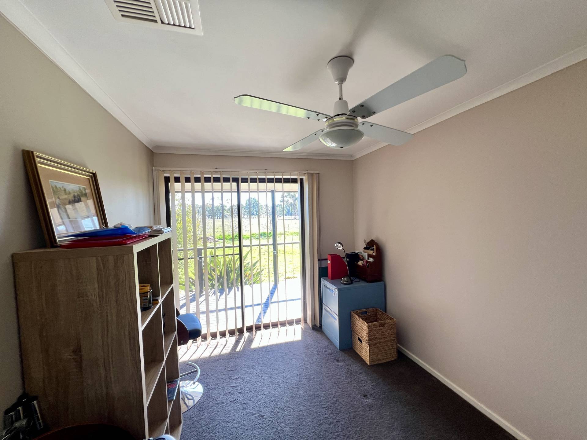 Outside, the property is well set up for both convenience and productivity. A three-vehicle carport, 7m x 12m lock-up self-contained shed with toilet and shower, with adjoining three bays ideal for horse float or caravan storage. Domestic bore with sprinkler system, 5kW solar power system and 8kVA backup diesel generator provide excellent support. Well-fenced paddocks, a productive veggie garden and established landscaping complete this impressive package.