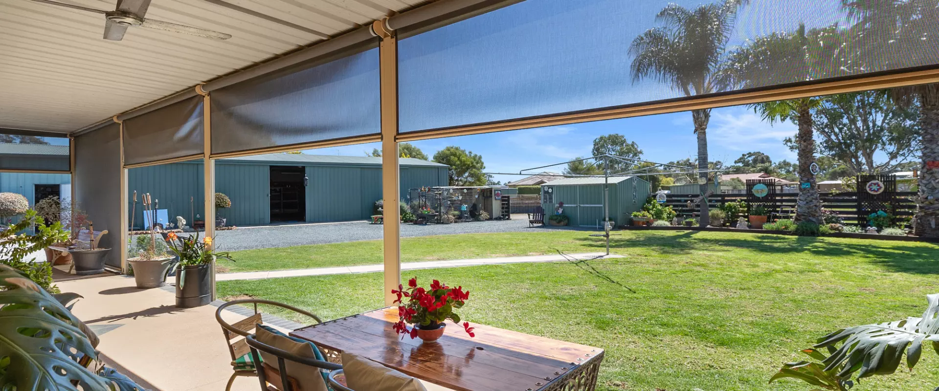 Step outside and the lifestyle appeal really comes alive. A huge covered alfresco is perfect for entertaining, complemented by a double garage under the roofline. For those needing serious shedding, the 9x21m Colourbond shed with insulation, concrete floor, power and even a solid fuel heater is a standout, along with an additional garden and sundry shedding.