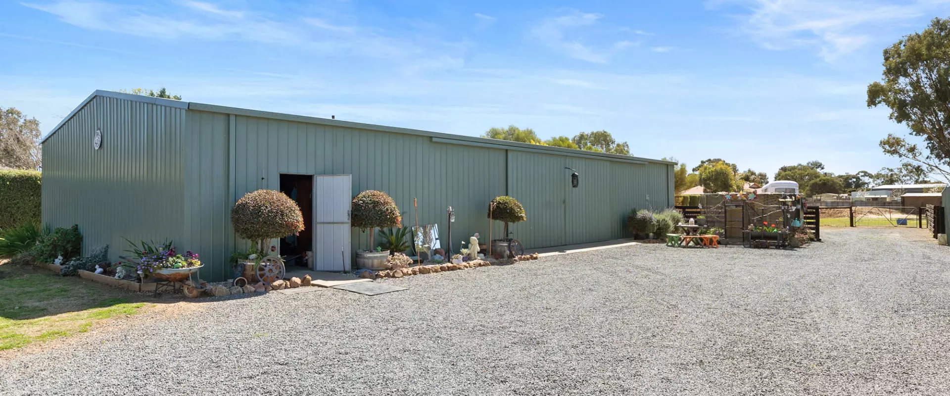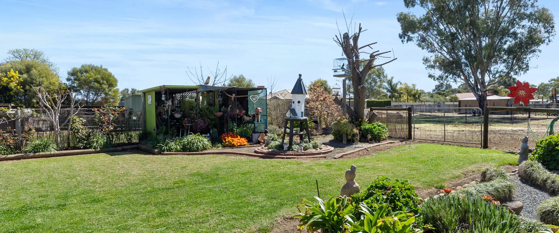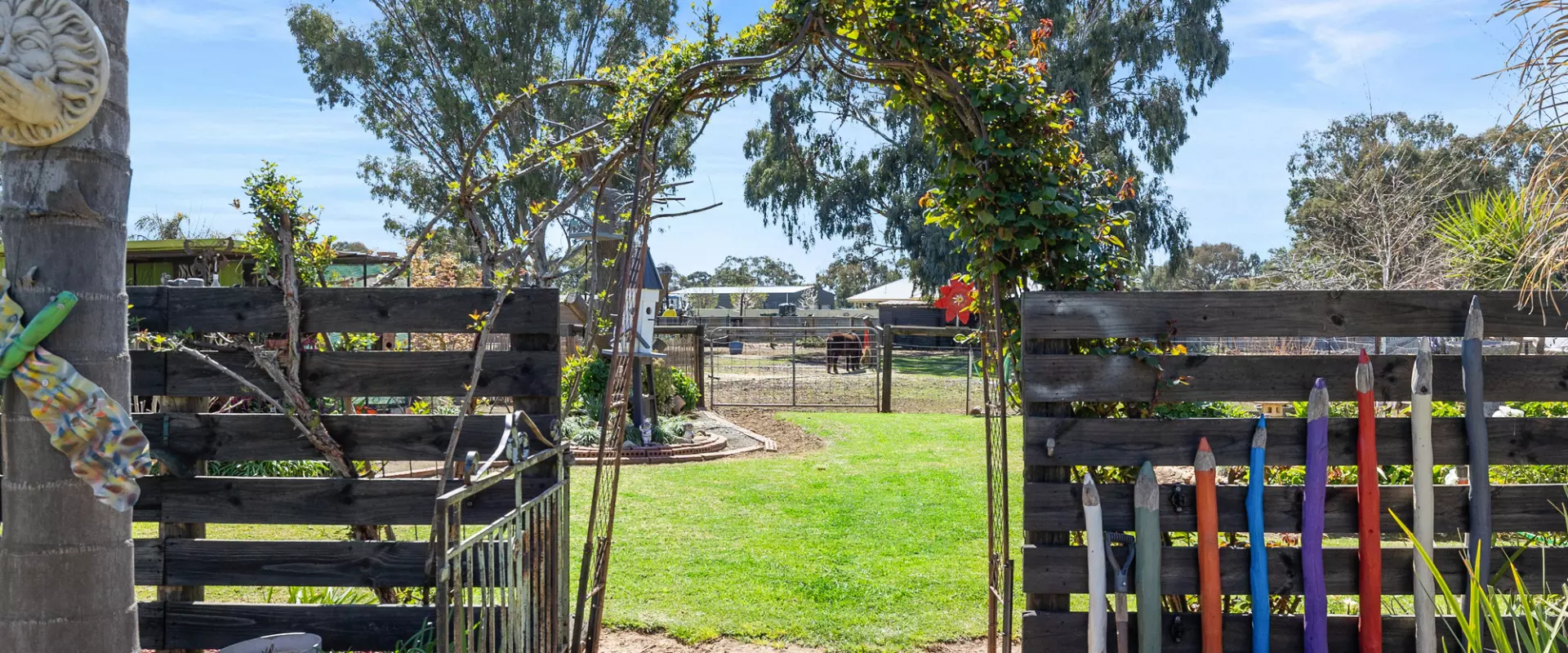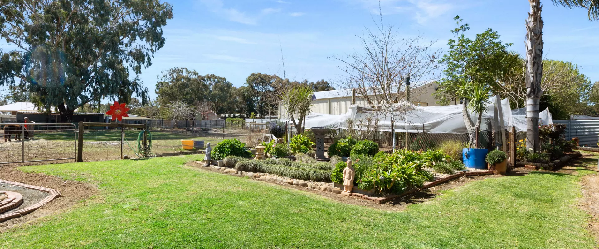 Animal lovers will be right at home here, with established paddocks, pony infrastructure including a round yard, chook pen and bird aviary all in place. A domestic bore with sprinkler system keeps the grounds green and thriving year-round.