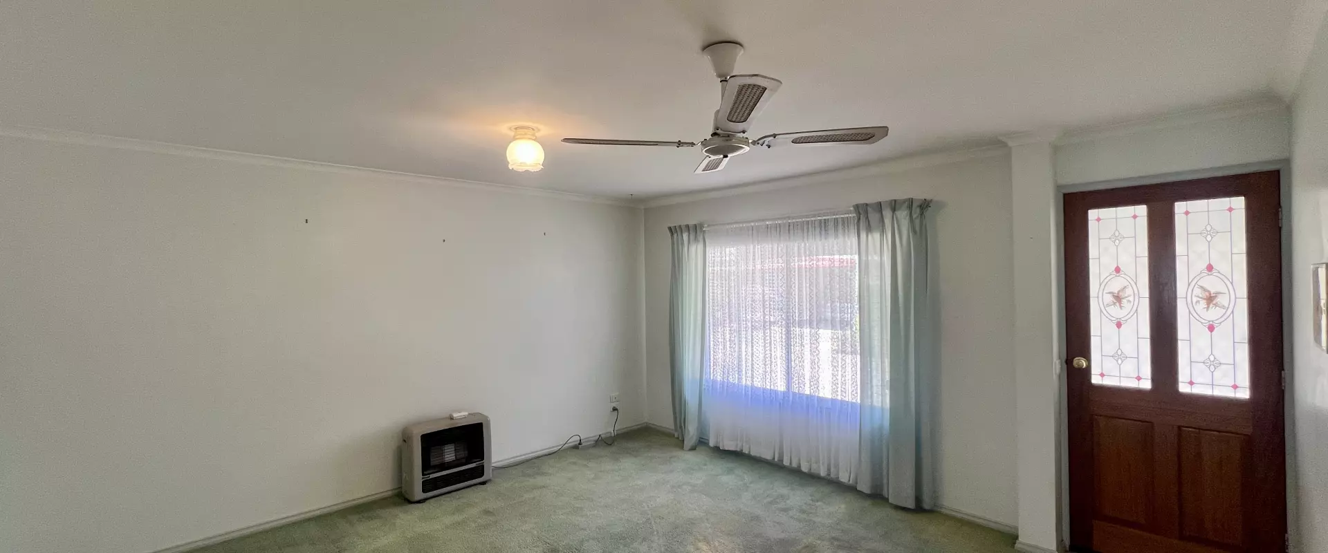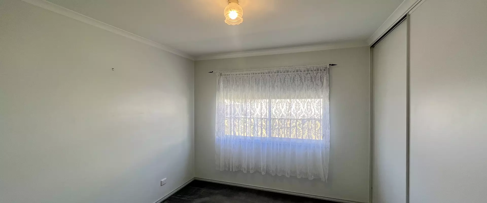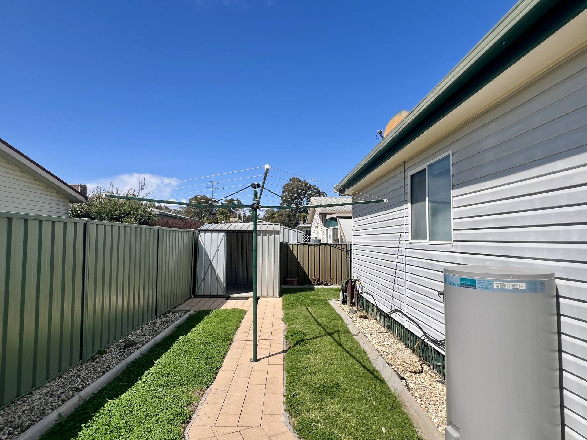 The well-appointed kitchen features electric cooking and ample storage, flowing through to the light-filled living spaces. Two bedrooms come complete with built-in robes, while the third room is perfectly suited as a guest room, study or hobby space. The main bathroom includes a shower, and the laundry is thoughtfully designed with a separate toilet and built-in linen press for added convenience.