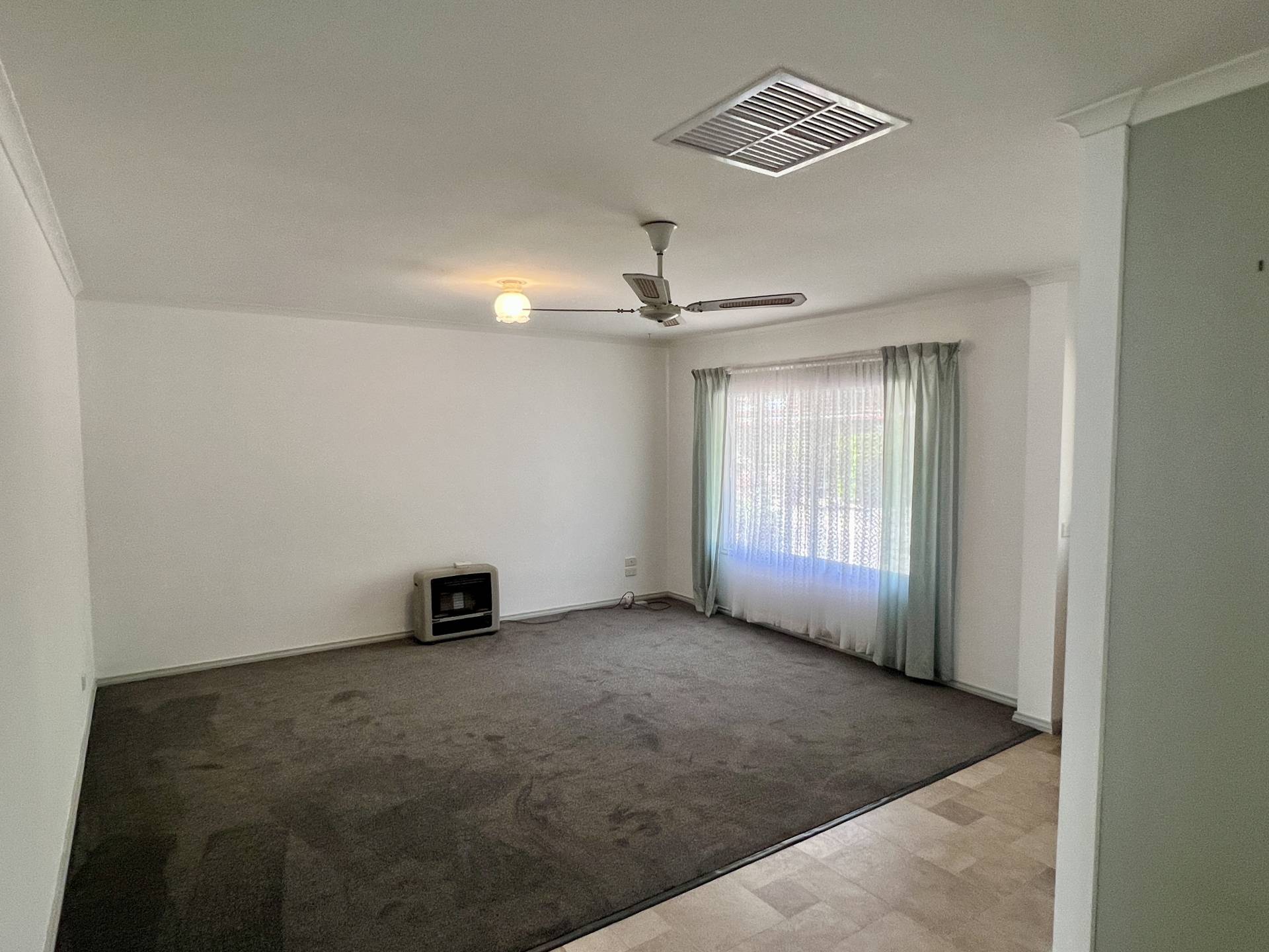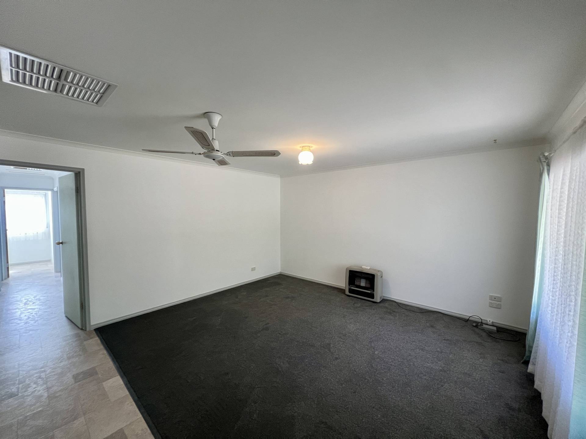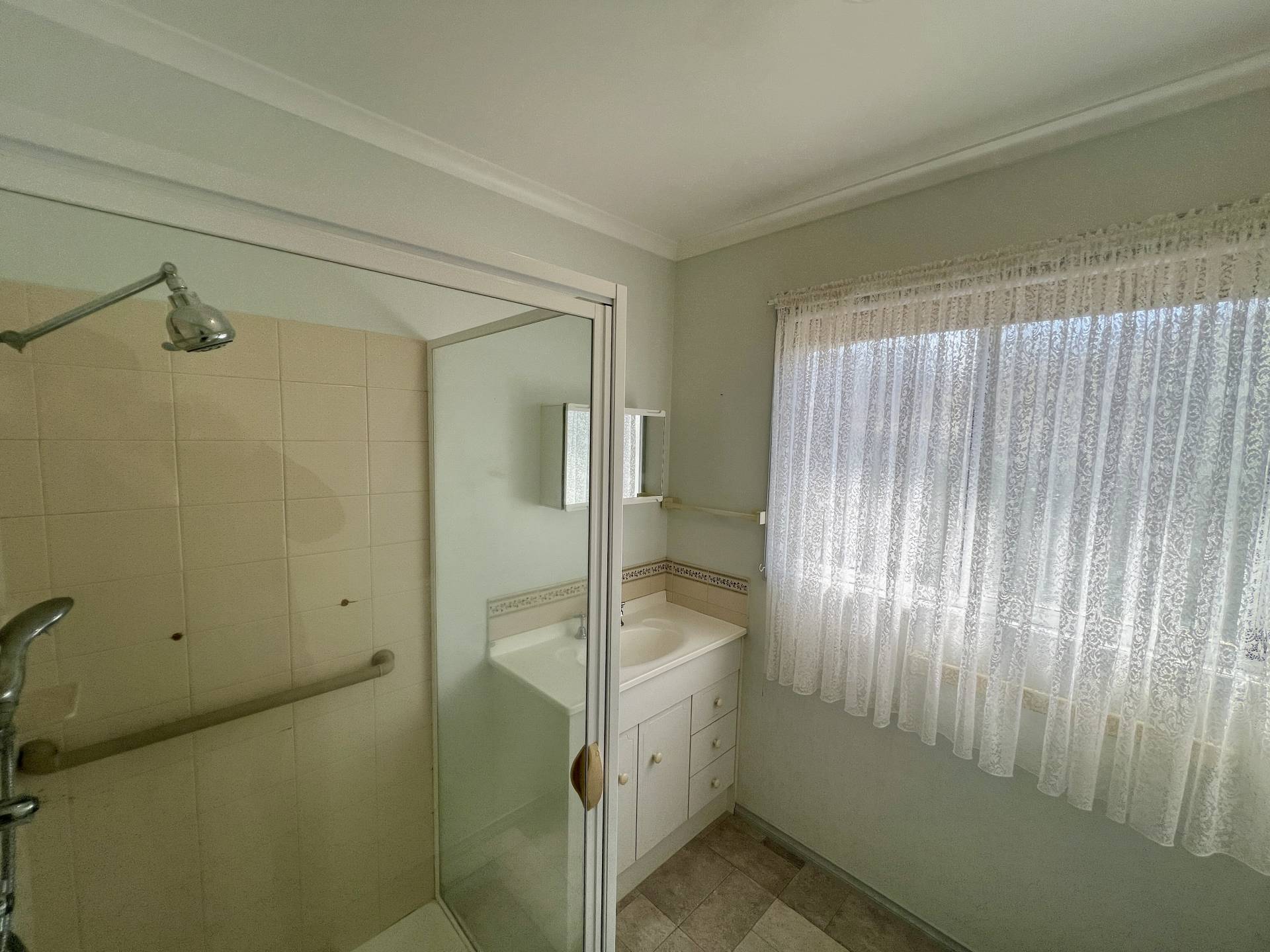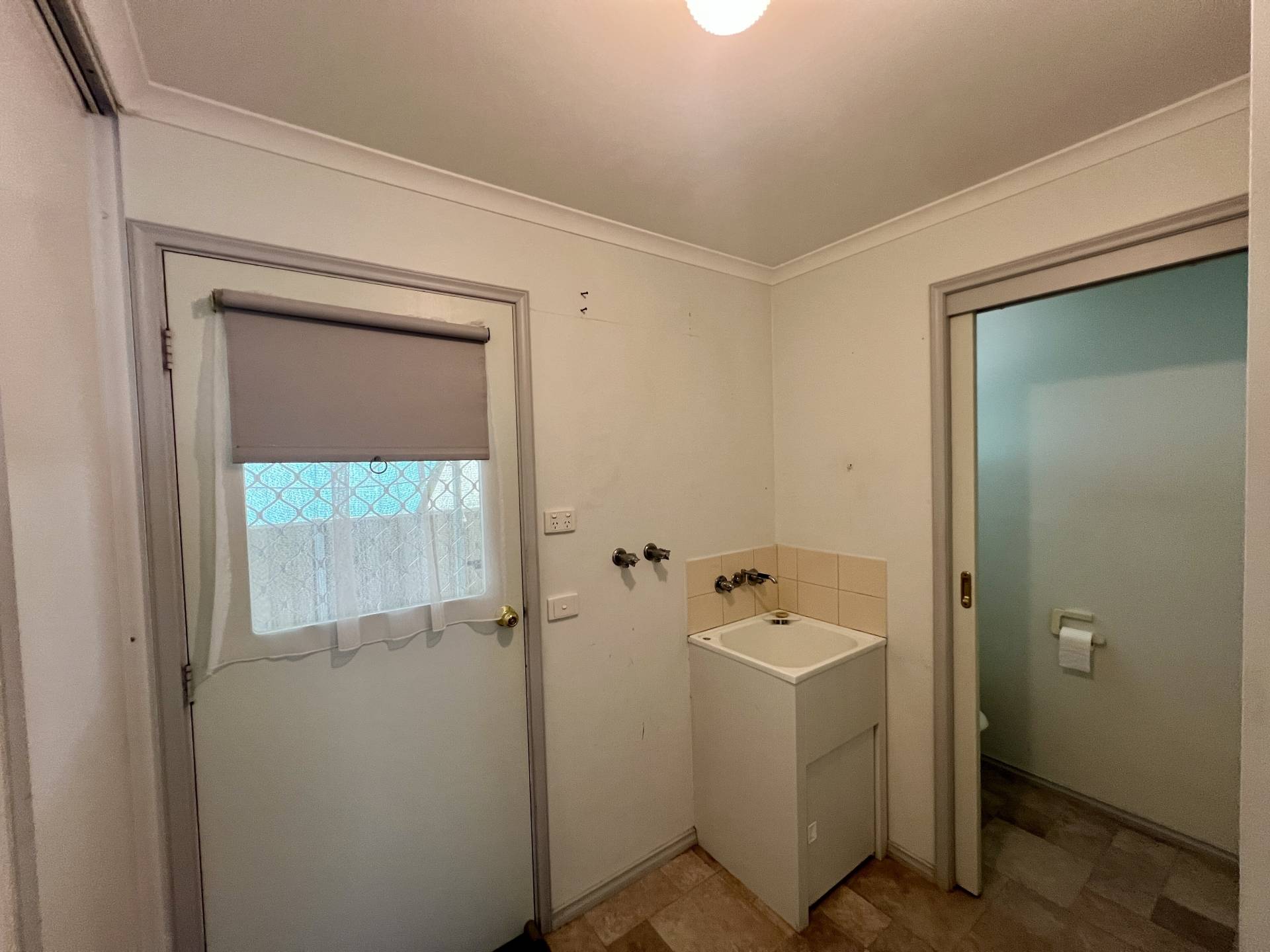 The well-appointed kitchen features electric cooking and ample storage, flowing through to the light-filled living spaces. Two bedrooms come complete with built-in robes, while the third room is perfectly suited as a guest room, study or hobby space. The main bathroom includes a shower, and the laundry is thoughtfully designed with a separate toilet and built-in linen press for added convenience.