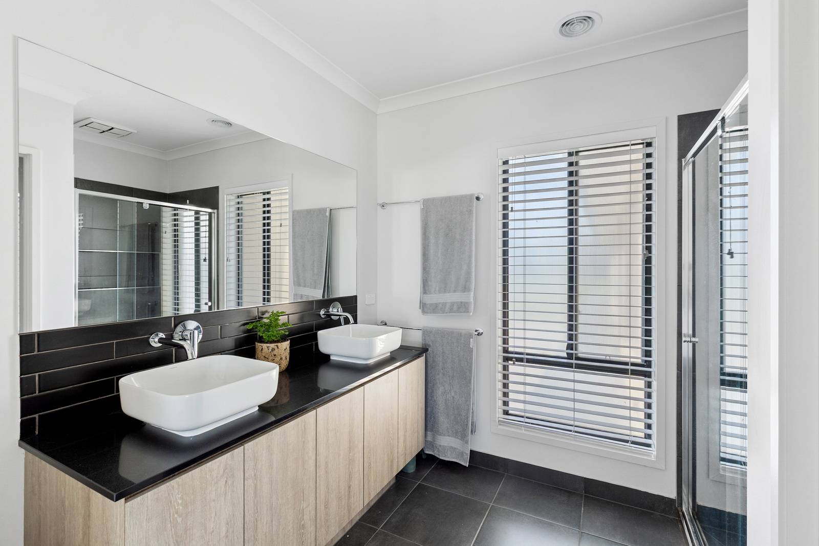 The master suite is a private retreat with a walk-in robe and a stylish ensuite complete with double vanity, shower and toilet. The remaining three bedrooms are generously sized, each with built-in robes, and are serviced by the main bathroom with bath, shower and separate toilet. A dedicated study and well-appointed laundry add to the convenience.